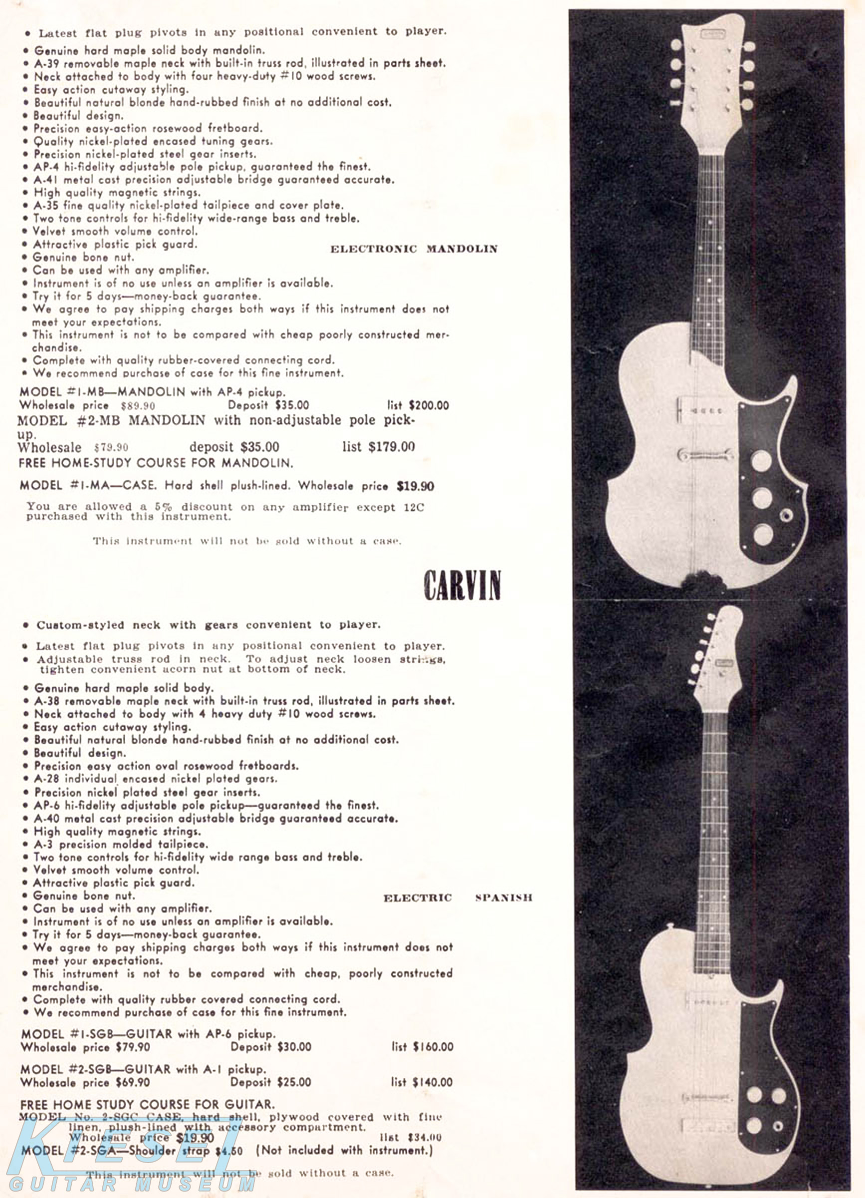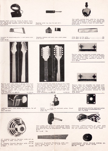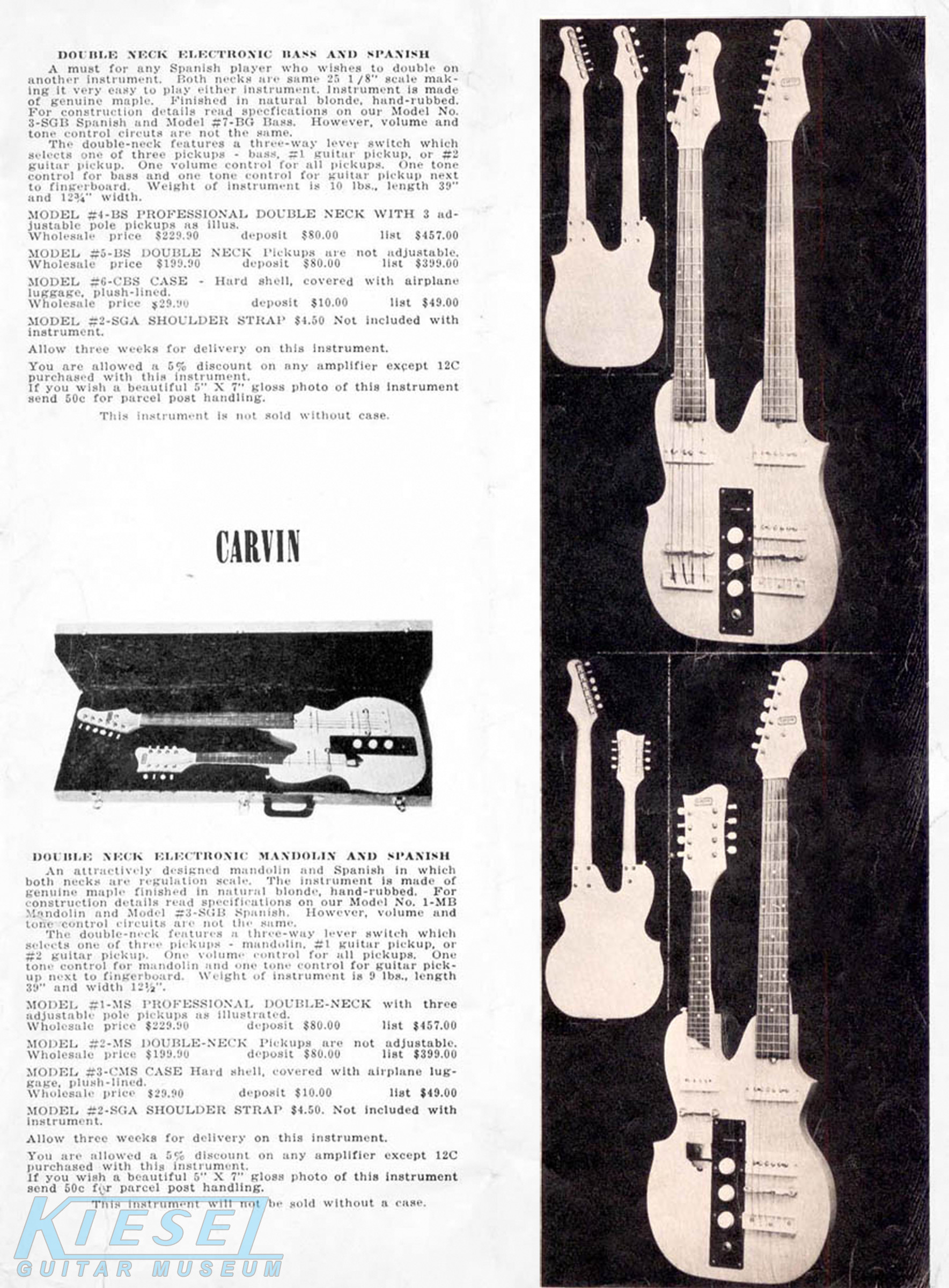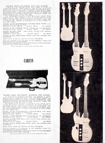 The Model #1-MS guitar/mandolin doubleneck and the Model #4-BS guitar/bass doubleneck were the same as 1959, including specifications, pricing and catalog photos. Non-adjustable pickup models were also still offered.