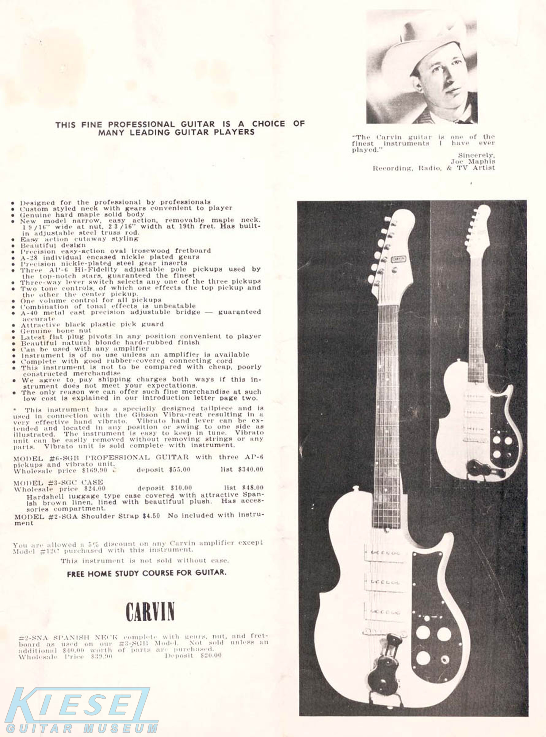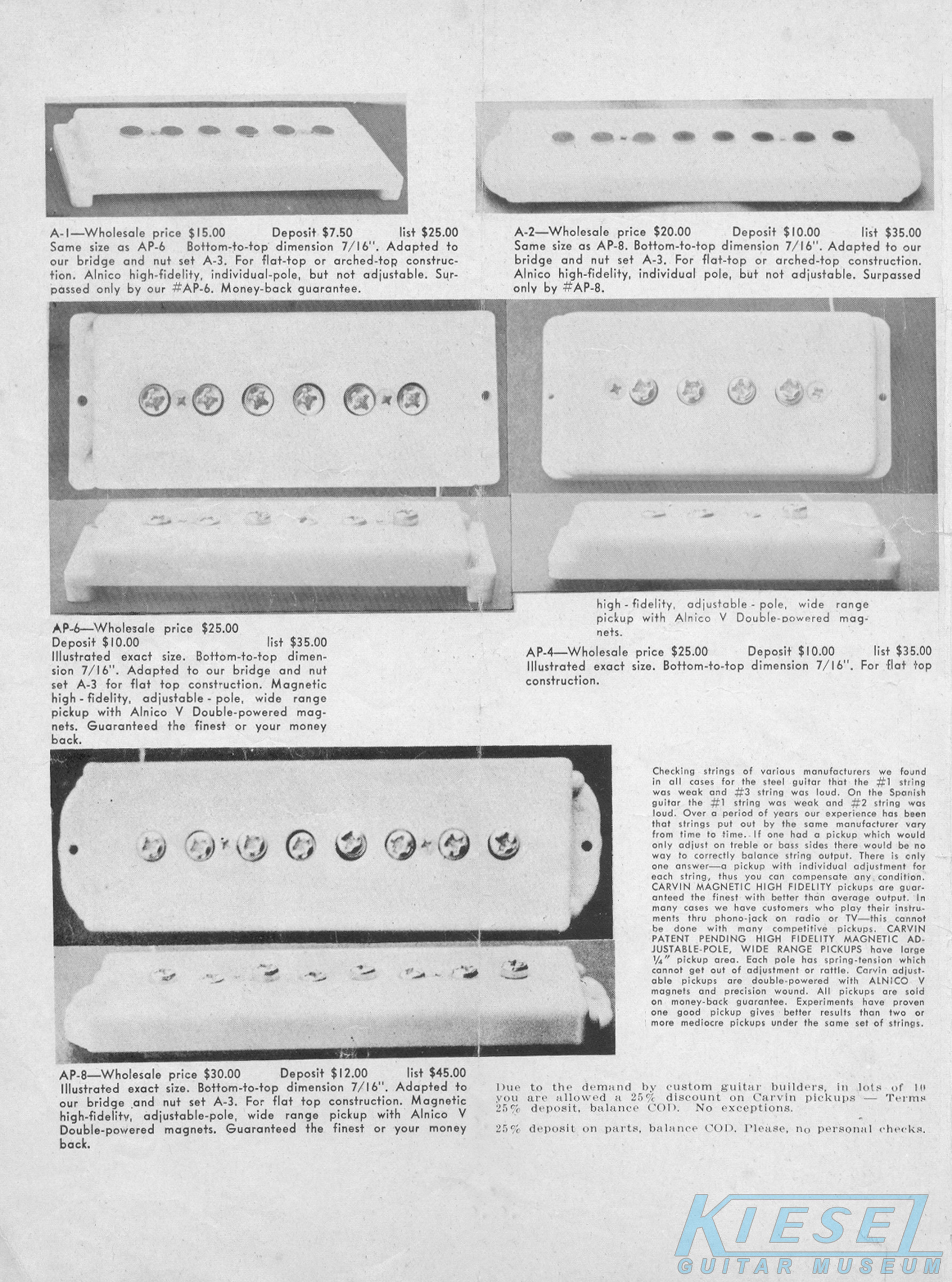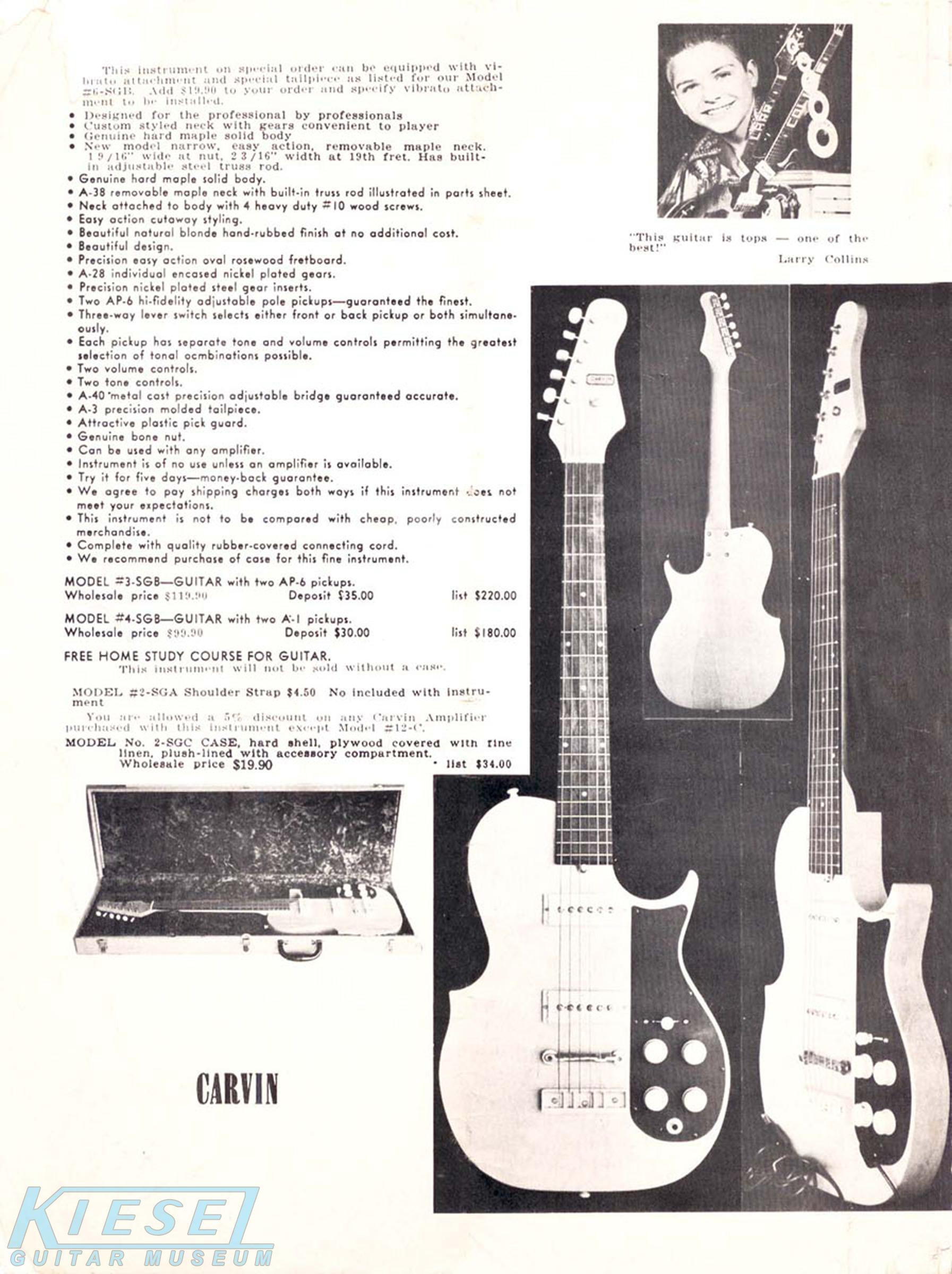 The Model #6-SGB, Model #3-SGB, and Model #1-SGB were all identical as their 1959 counterparts, down to the catalog representation and pricing. Additionally, the non-adjustable pickup models were also still offered, and were also unchanged from the previous year. For complete details on these models, see the 1959 page.