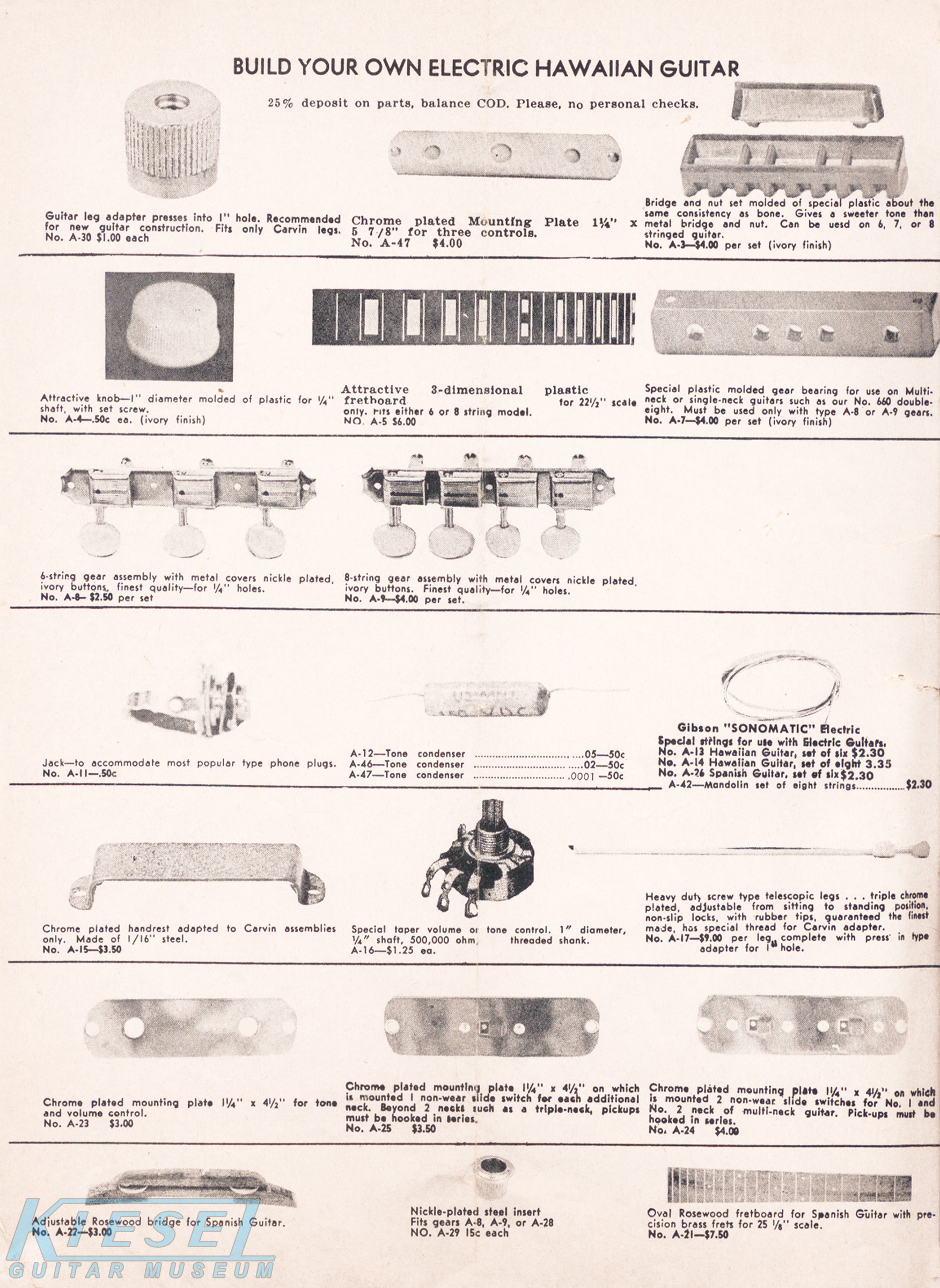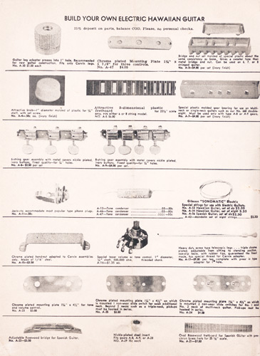 The Model #6-B Spanish guitar was unchanged as well, but had a new catalog layout. It was still offered in several configurations, both electric and acoustic.