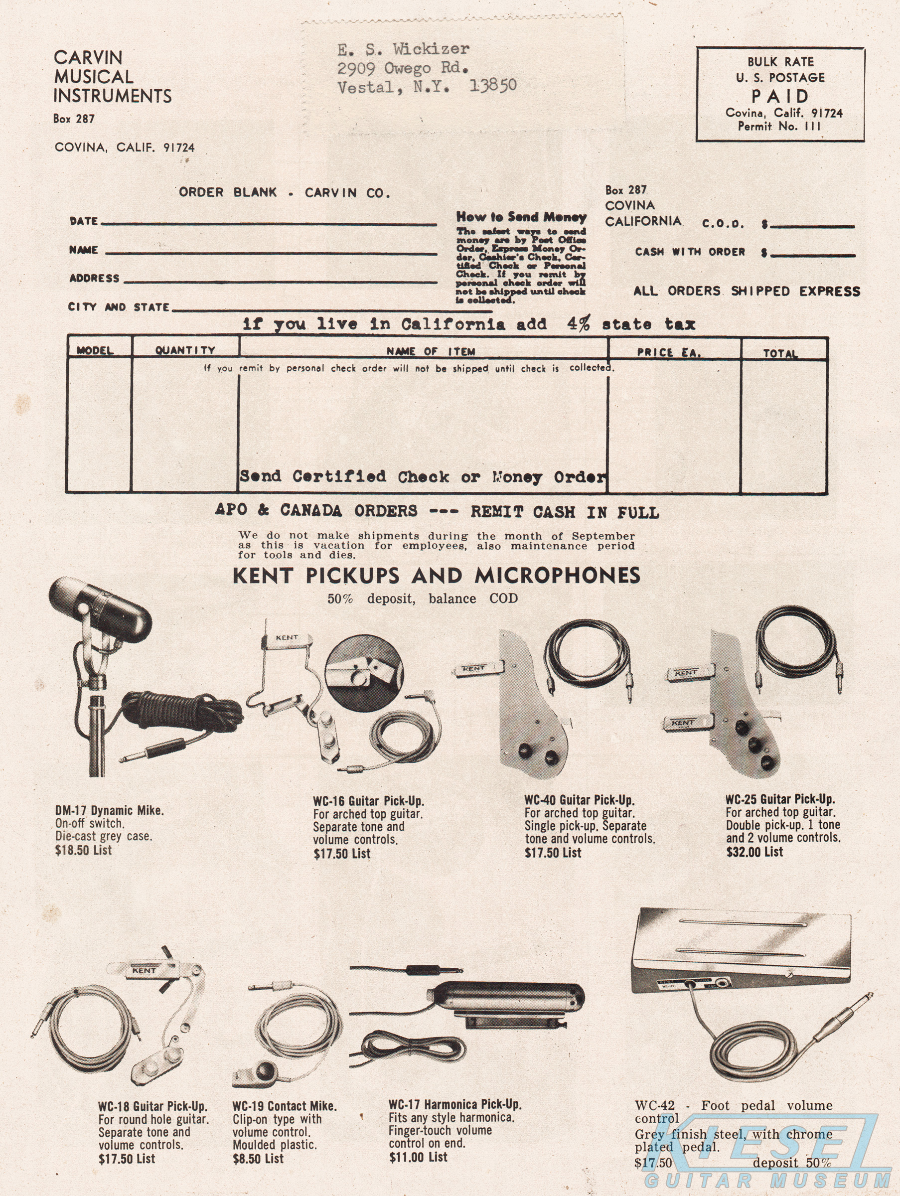 The Model #1-MB electric mandolin, redesigned for 1966, was built using the same materials and techniques of Carvin's other USA-made instruments. It