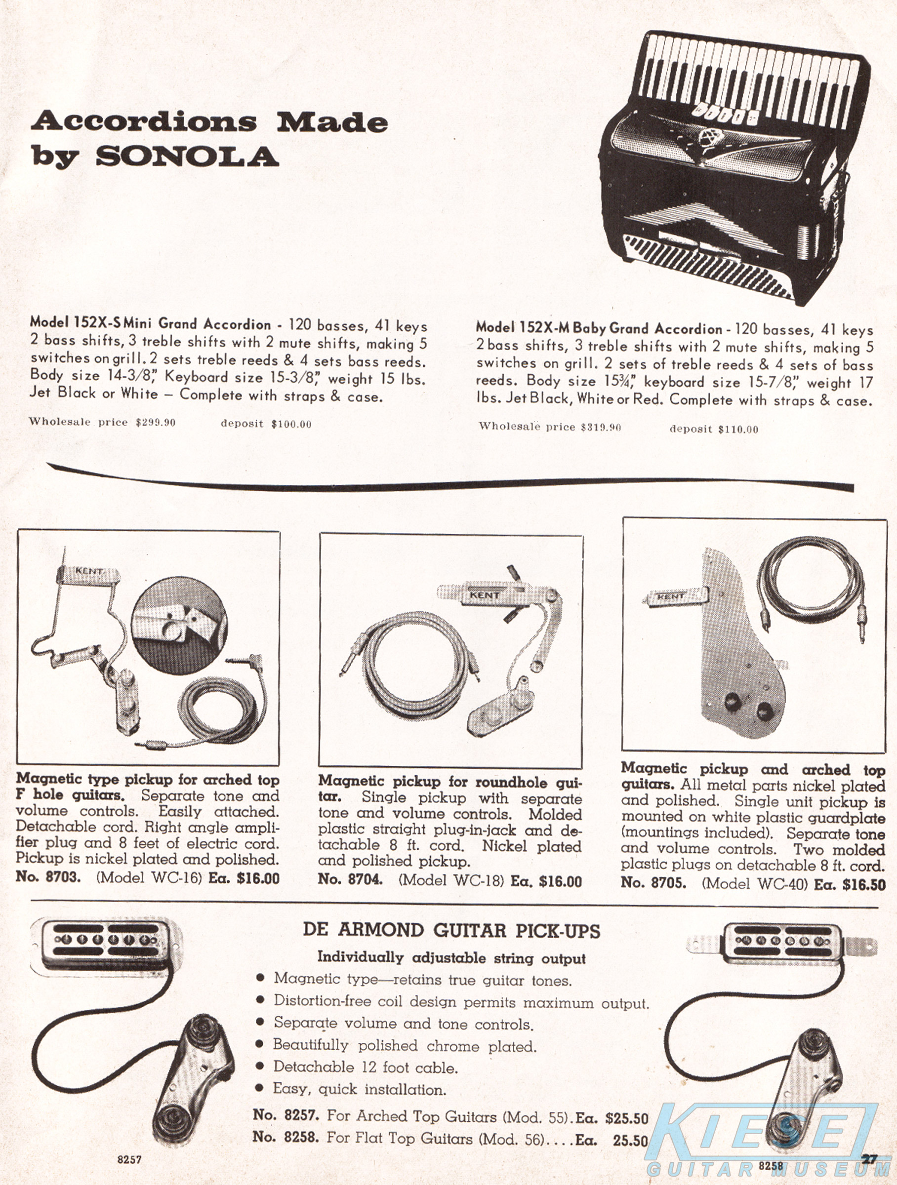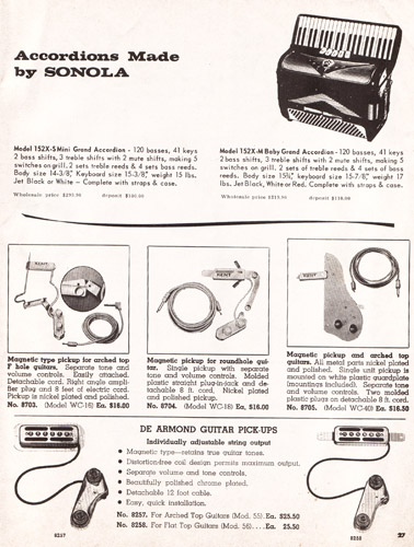 Accordions returned to the Carvin catalog in 1969, but for the last time. They offered two models, the Sonola 152X-S Mini Grand, which sold for $299.90, and the 152X-M Baby Grand which was $319.90.