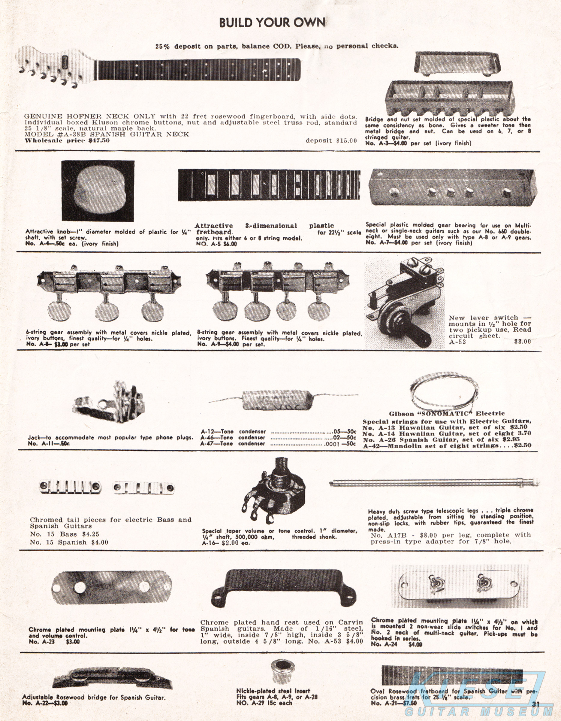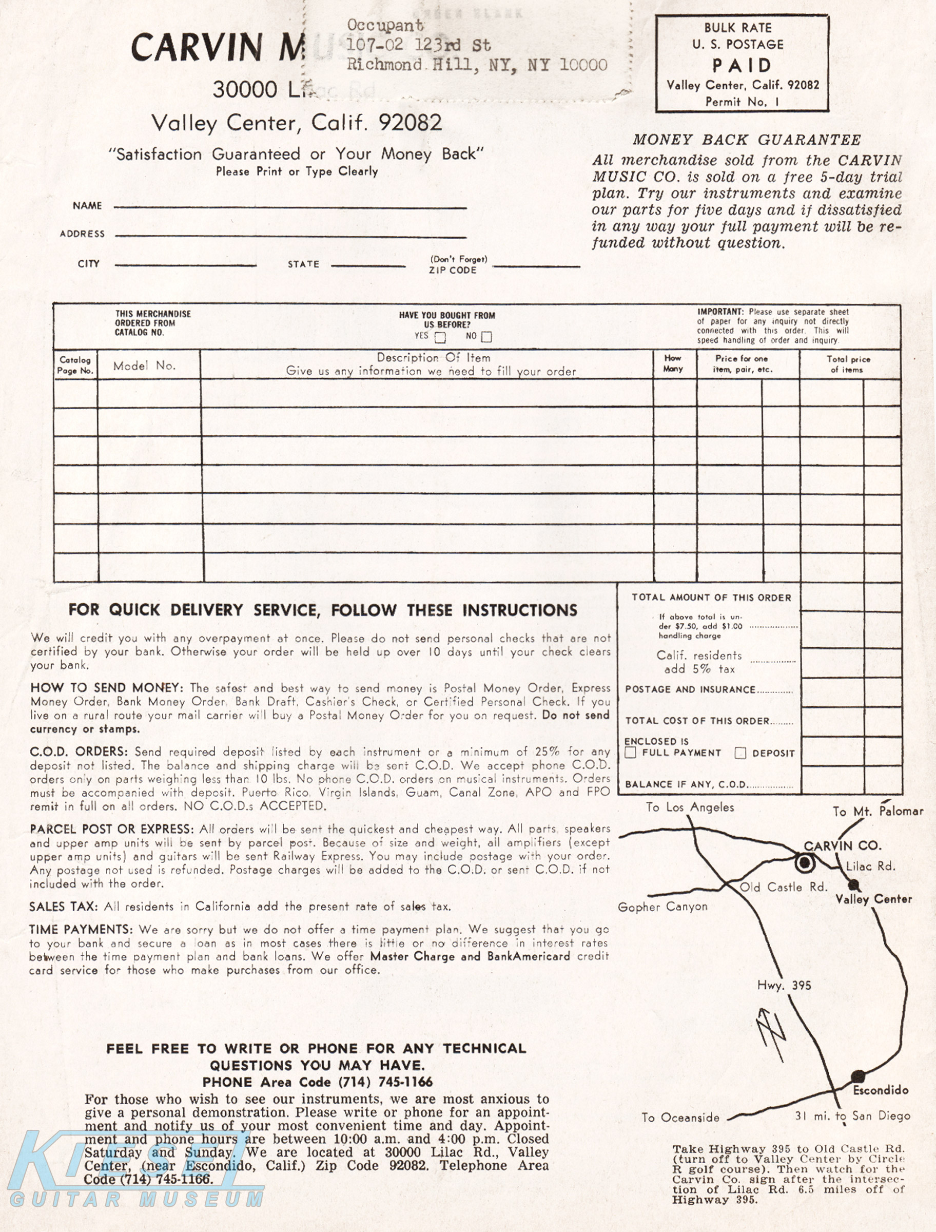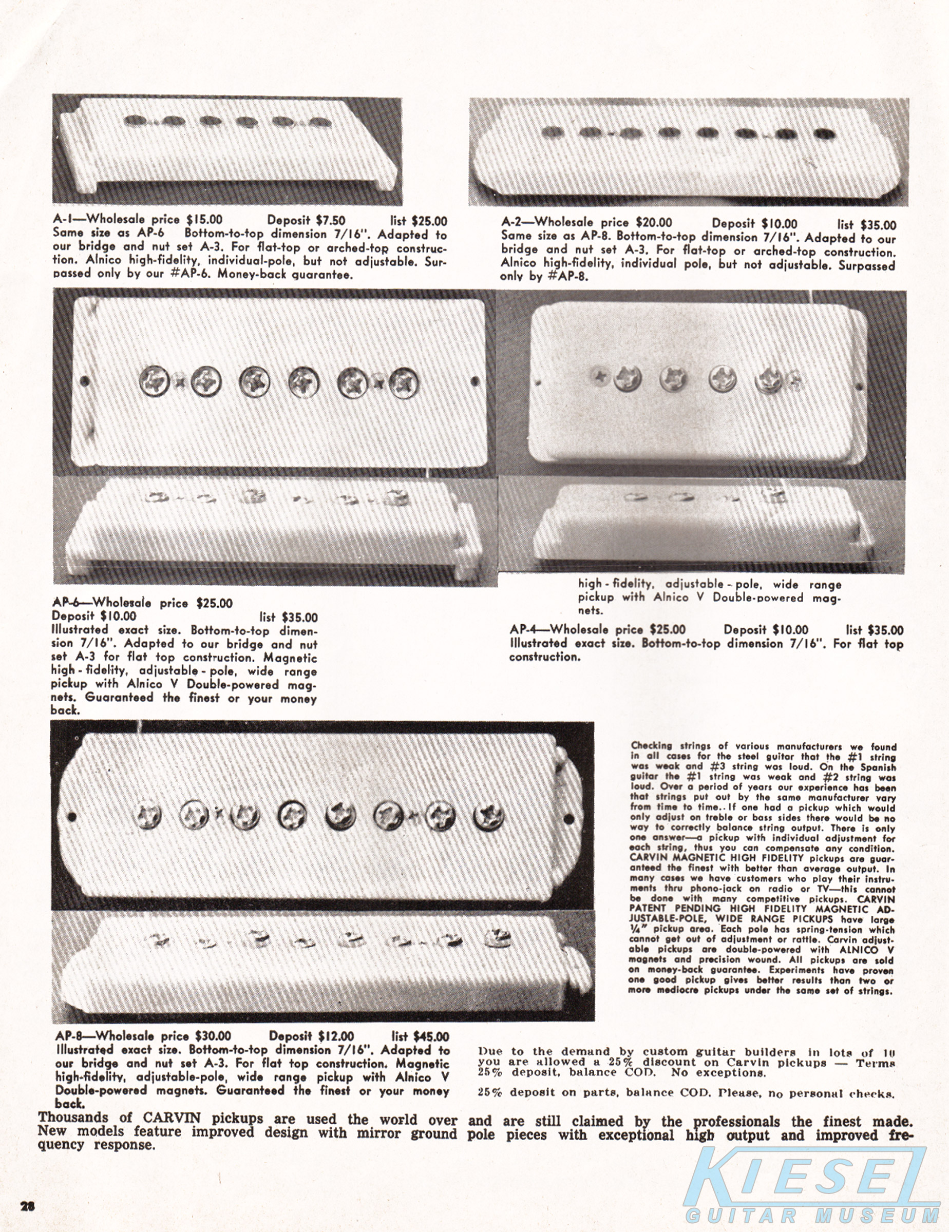 Interestingly, there were more instruments offered by Carvin than just guitars and basses in 1969. As they had done off and on throughout their history, Carvin was an authorized reseller of instruments made by other manufacturers. The catalog featured the Mark VII organ, which was made by Rheem (known now primarily for air conditioners!). Direct price on this item was $549.90.