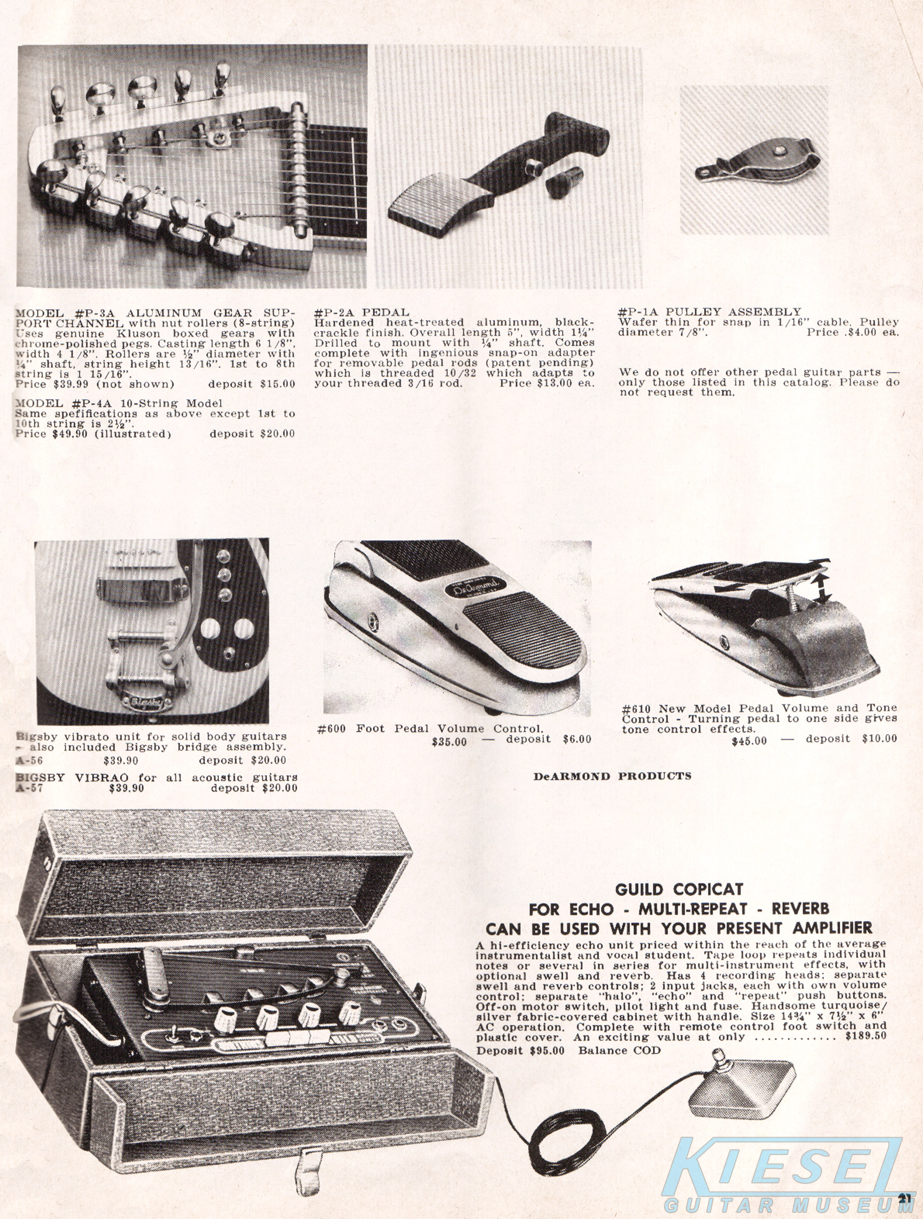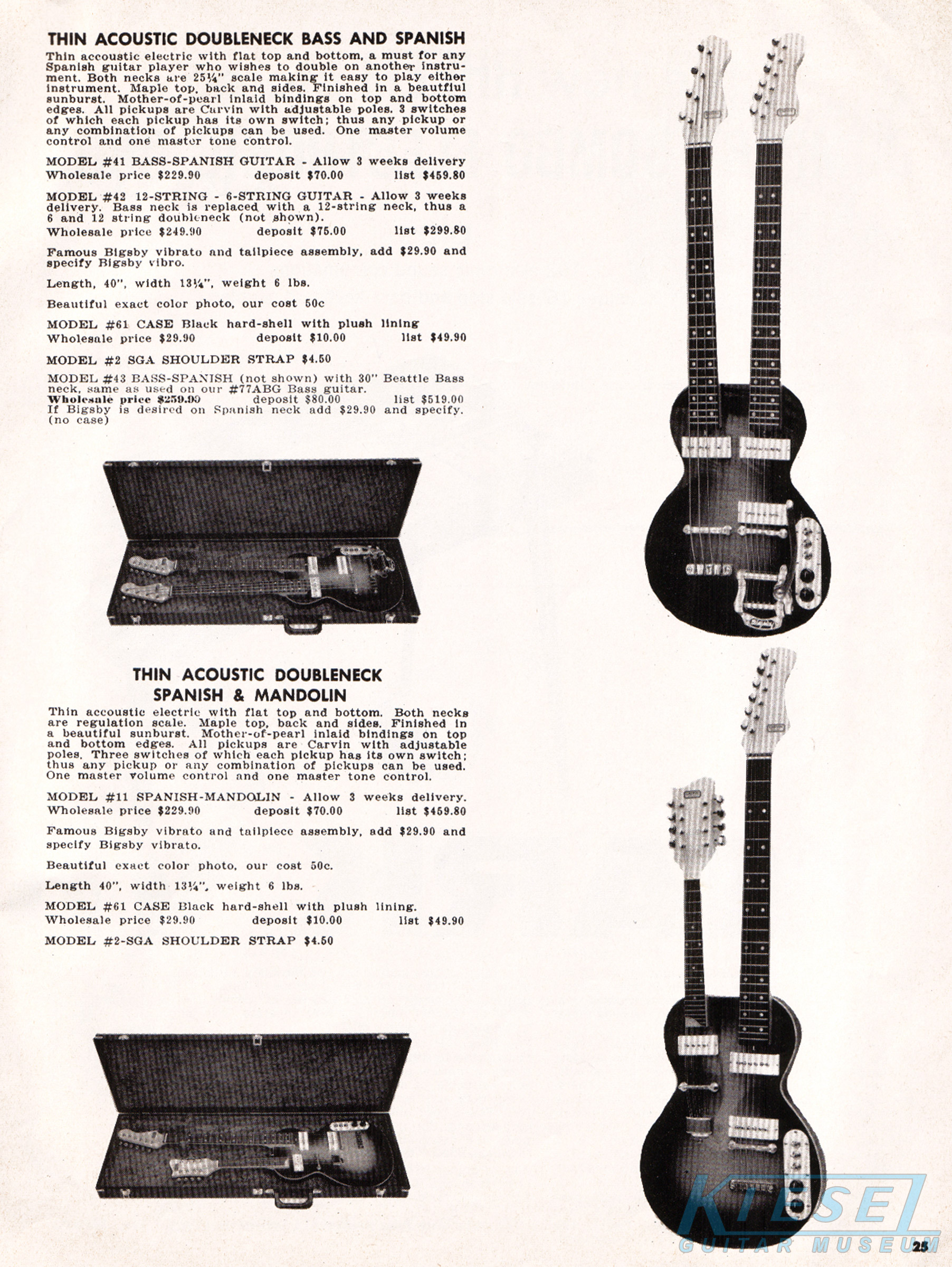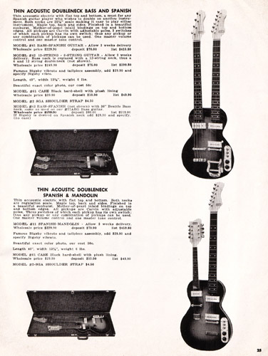 sold for $229.90, the model #42 6/12 string sold for $249.90, and the model #11 guitar/mandolin sold for $229.90. The Bigsby vibrato was available on the 6-string