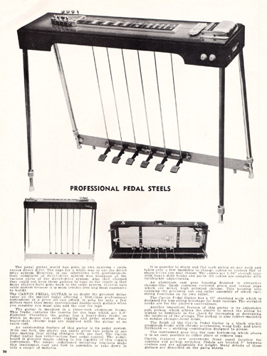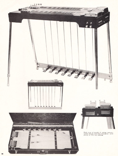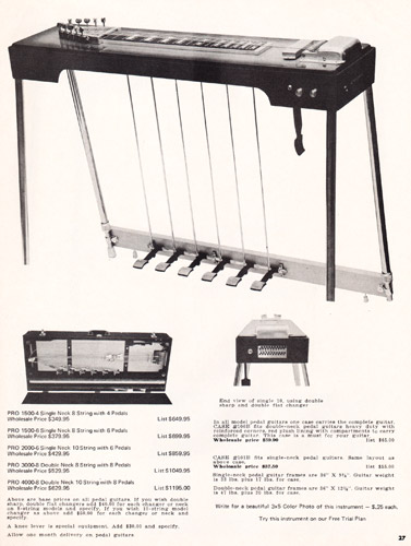 Carvin continued to offer an assortment of pedal steel guitars in 1972, in single and doubleneck versions, with 8 or 10 strings and with or without string changers, which were devices used to drop or raise the pitch of all strings (similar to the modern TransTrem by Steinberger). All Carvin pedal steel guitars had an aluminum frame with wood body, front-mounted controls and AP-Series adjustable pickups. 1972 would be the last year for pedal steel guitars, and 1976 would be the last year for steel guitars of any sort to be offered by Carvin.