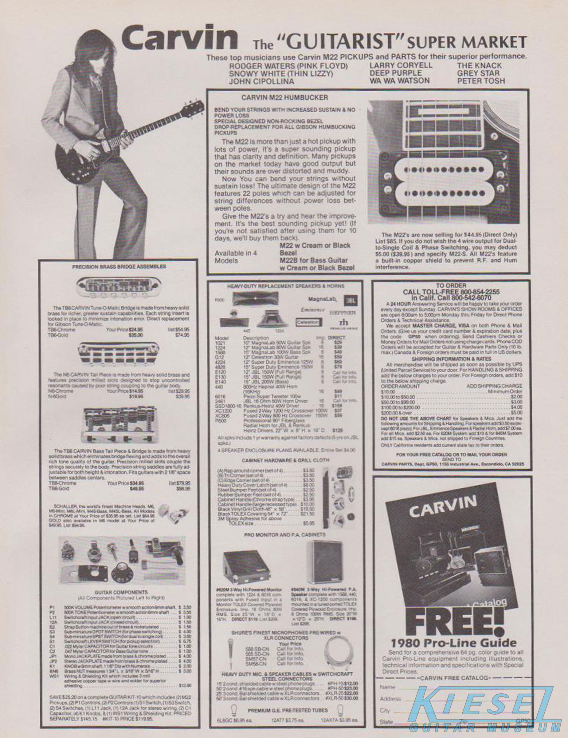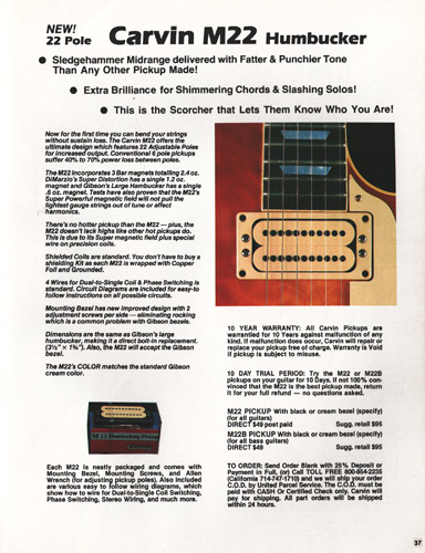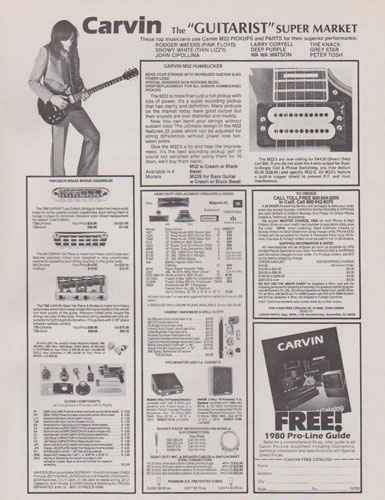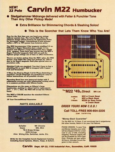 The ad in the catalog gallery at the top of this page is from a 1980 issue of Guitar Player. The M22 pickup ad is from the June 1980 issue of Guitar Player.