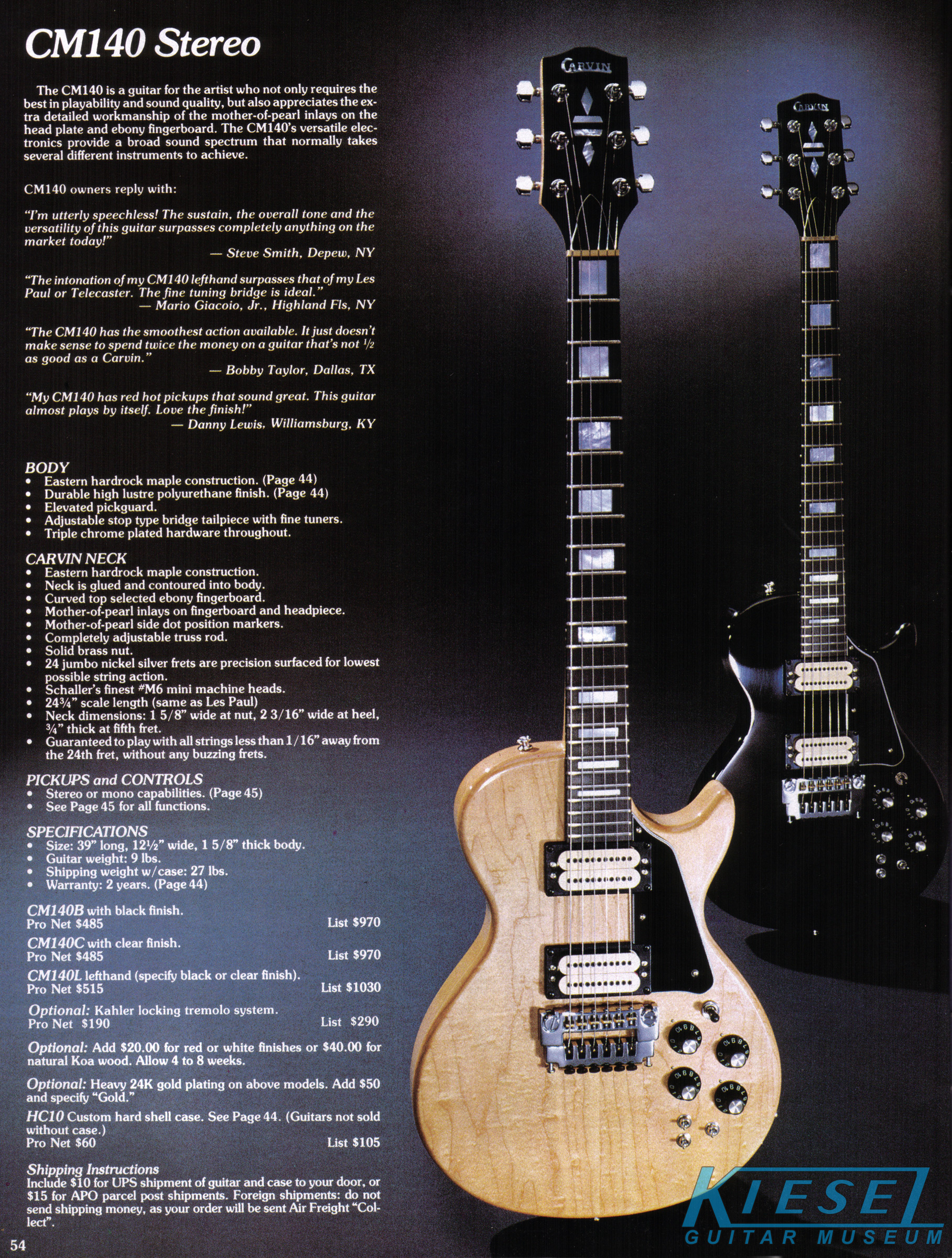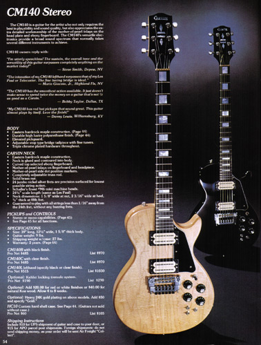 The CM140 was unchanged, and with the departure of the CM130, represented the only singlecut model offered in 1984. Prices remained the same at $485, and the Kahler Pro trem was offered for an additional $190. This was the penultimate year for the CM140; 1985 would be the last year it was offered.
