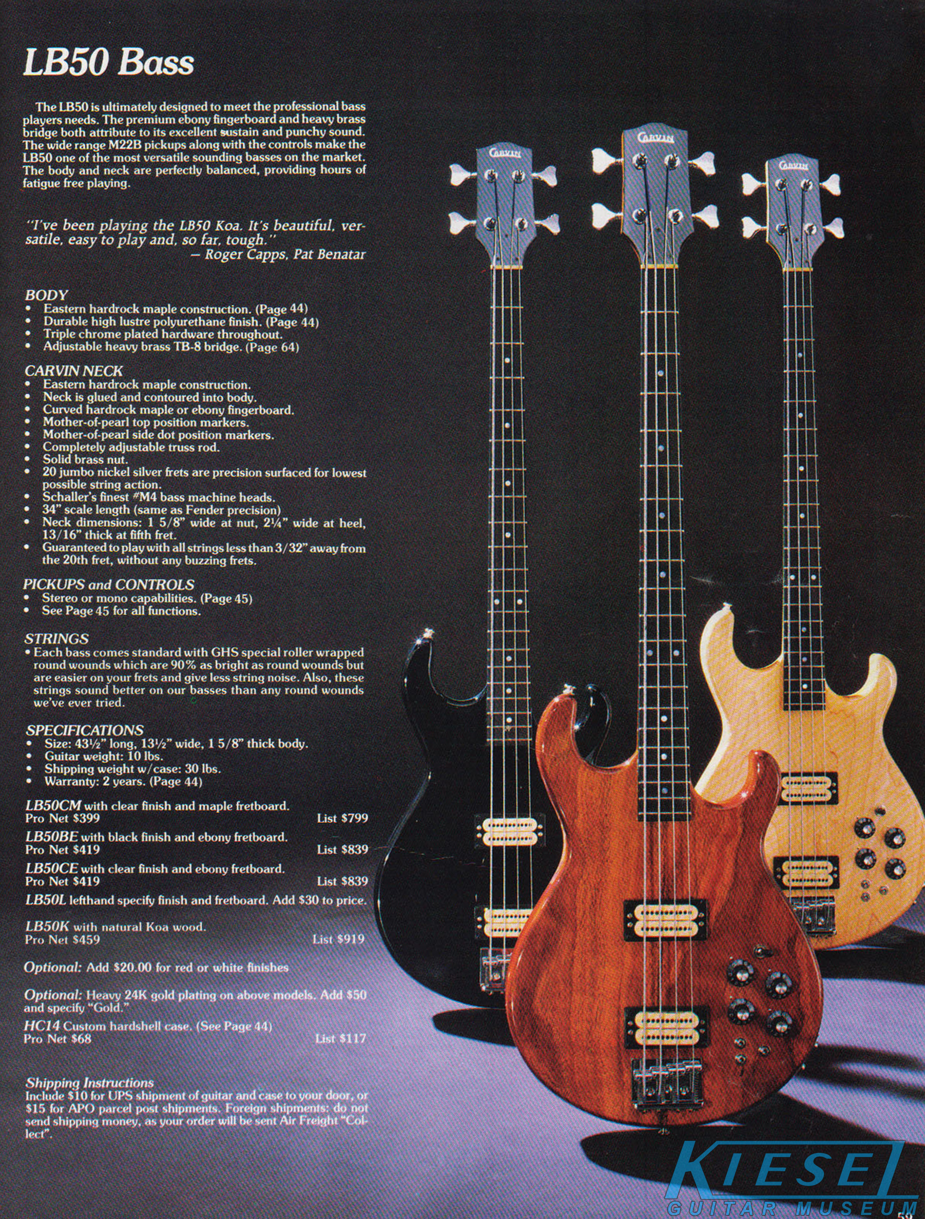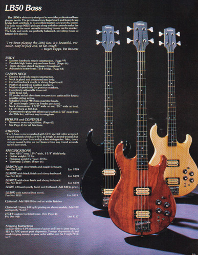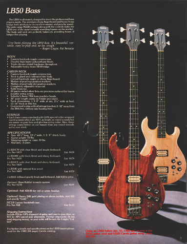 The LB50 did get a new catalog photo, to bring it up to spec with other photos in the catalog. Prices remained the same across the board, with the exception of the LB50K (Koa) which now had a standard price of $459, versus the base price + $40 that had been listed in earlier catalogs. Same with the LB40K, which was now sold for $409.