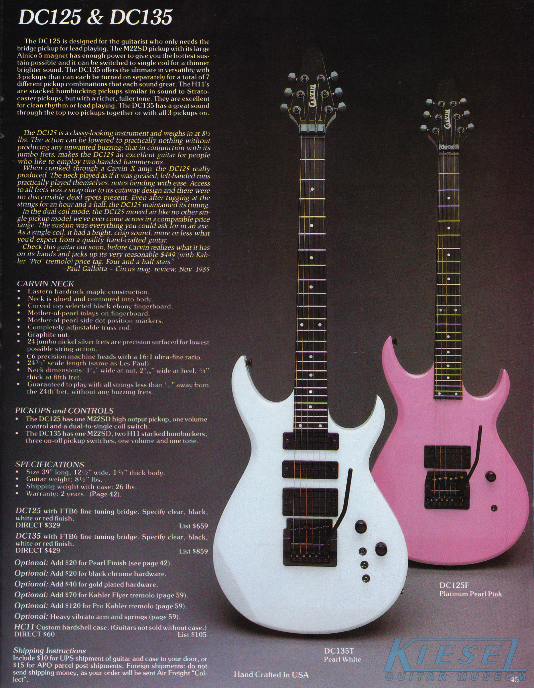 dot inlays and chrome hardware. The base price was $429. Shown with the DC135 was the DC125, which was in its 2nd year