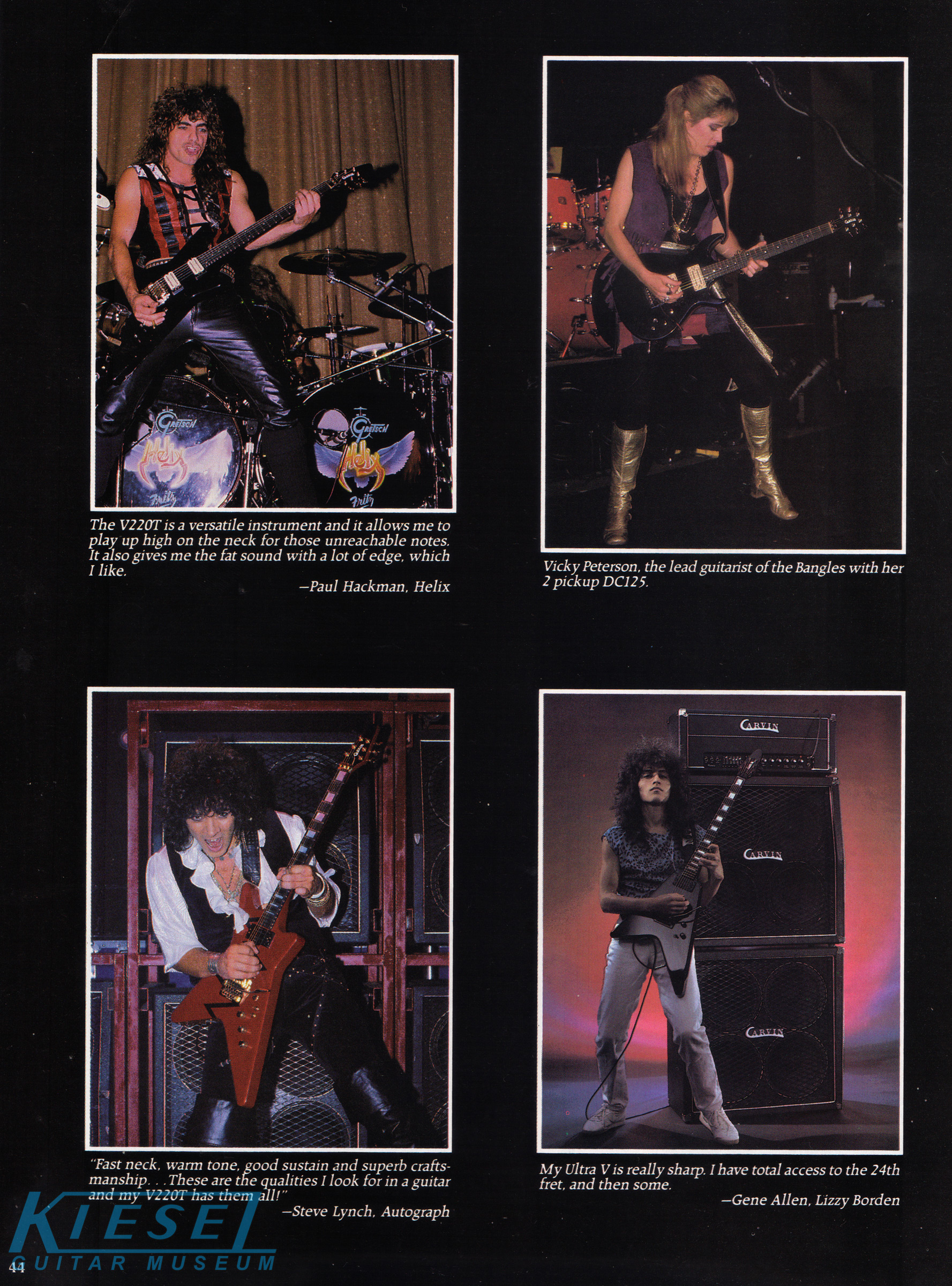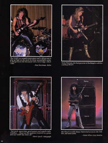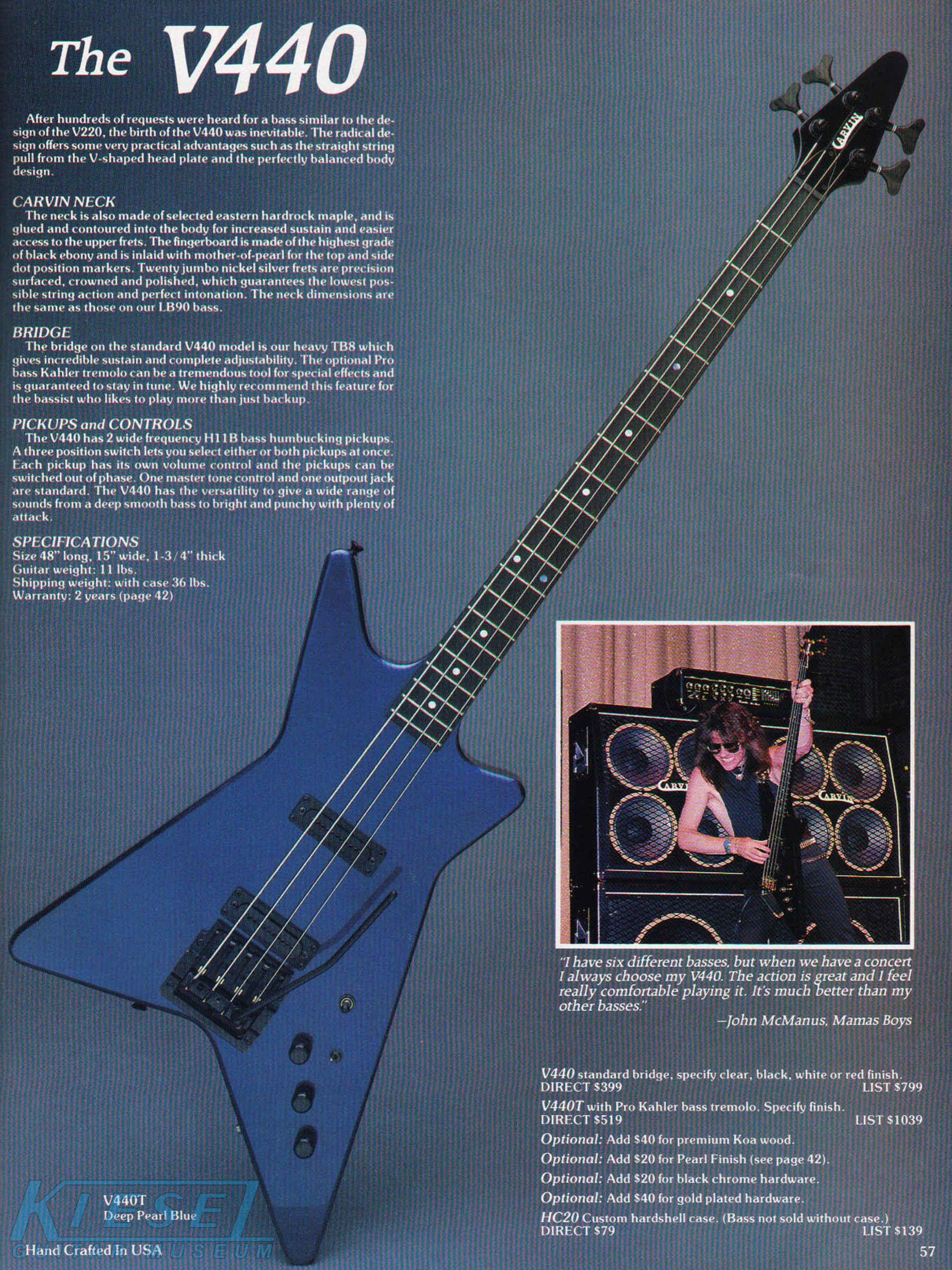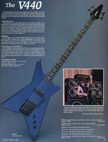 The V440 was also unchanged, with the same exceptions as the LB60, and it's representation in the catalog went from a two page spread to a one-pager. This would be the last year for the V440, with the switch to all neck-through construction in 1988.