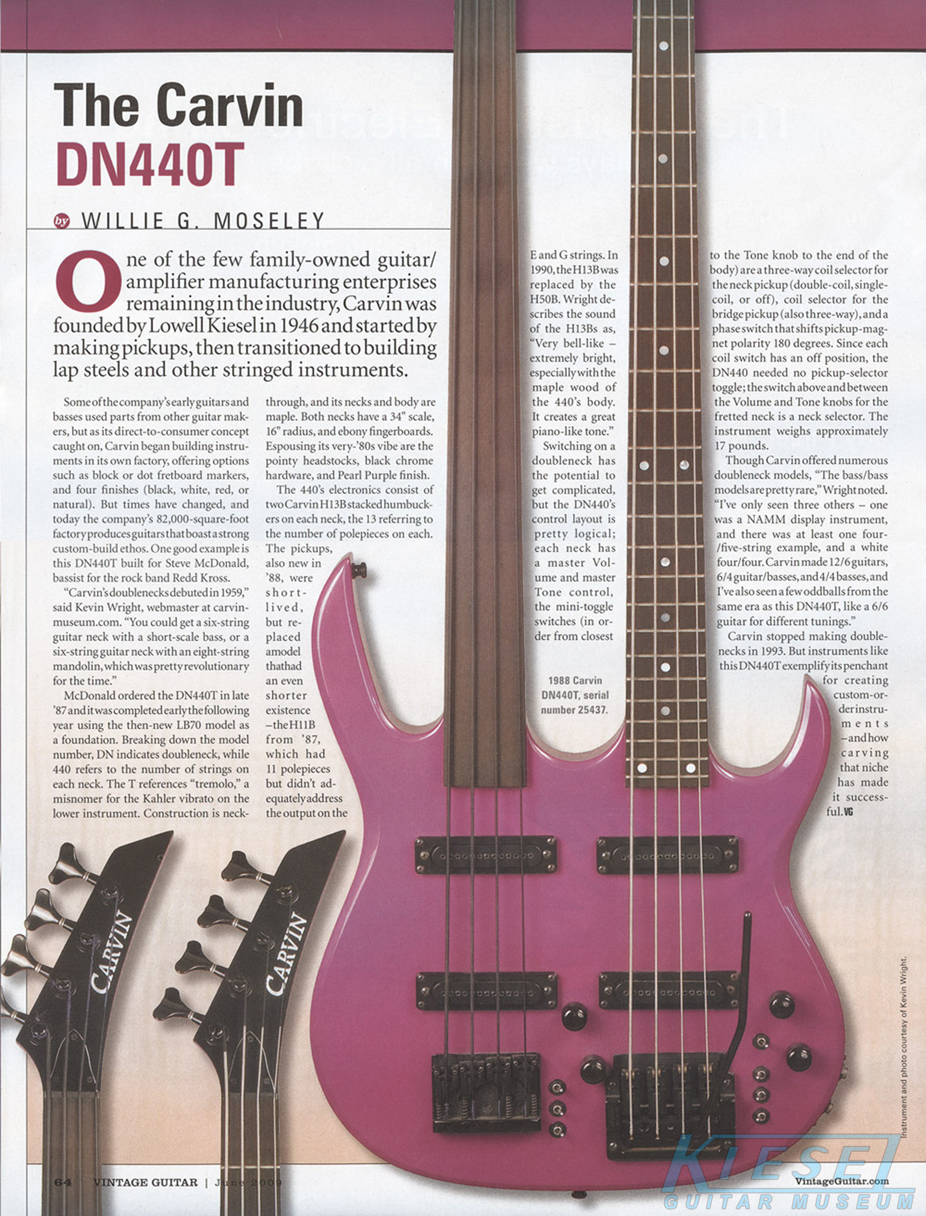 This DN440T is part of the Curator's collection. It was originally ordered by Steven McDonald, the bassist of Redd Kross, at the Carvin Hollywood store in November of 1987. It's finished in