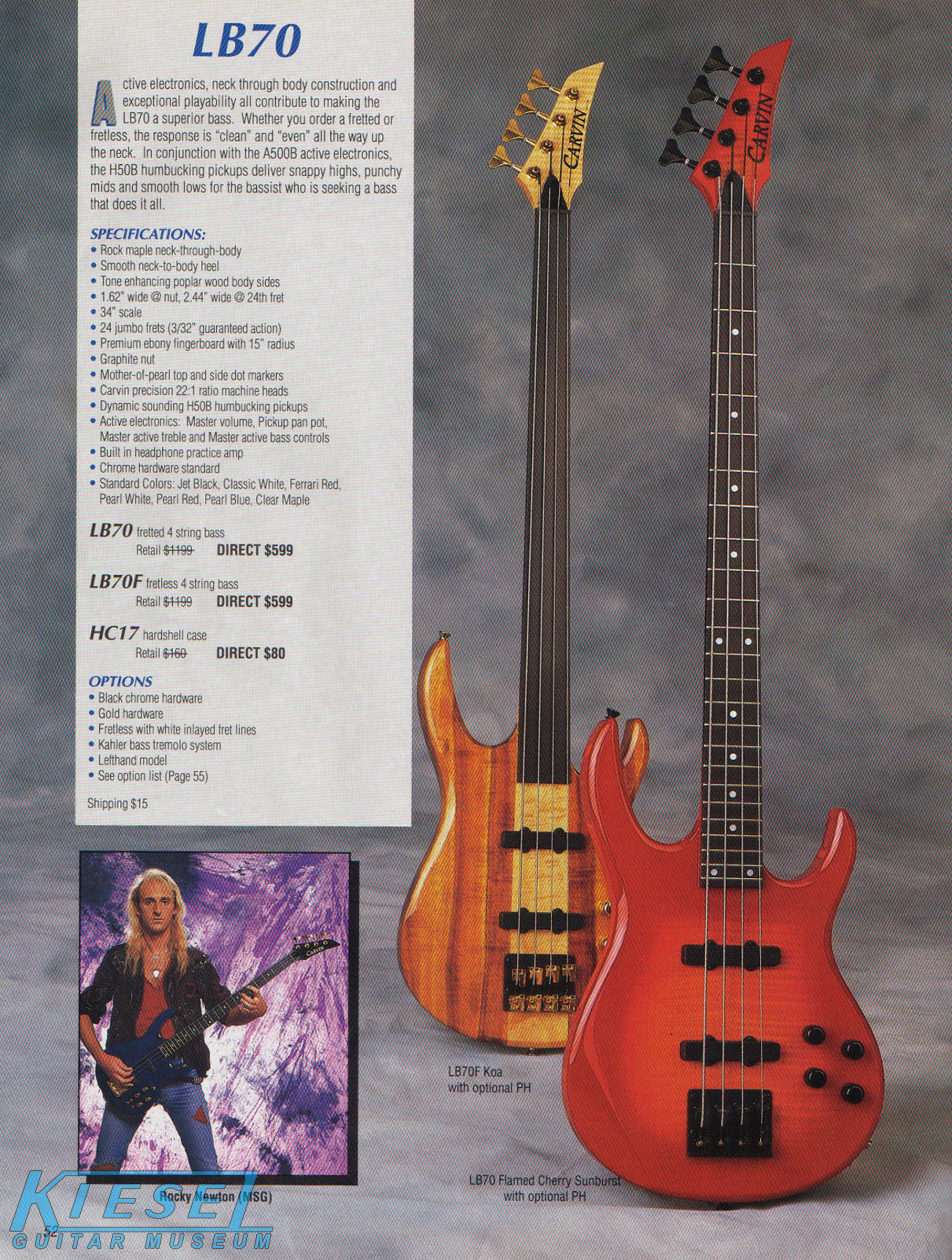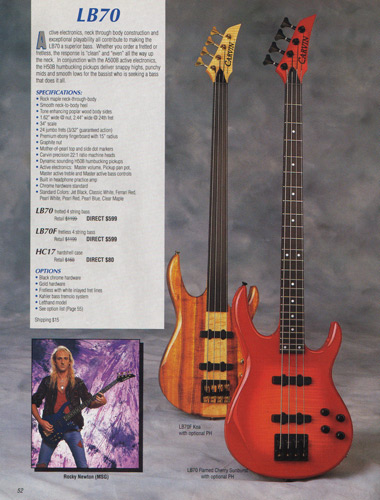simply used the volume controls for this function. These basses started at $599. Shown in the catalog was a fretless LB70F in koa,