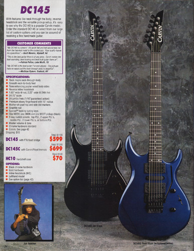 the DC145 was unchanged at $599, or $699 with tremolo. The catalog showed a DC145 in Jet Black with black hardware and tremolo, and in Pearl Blue