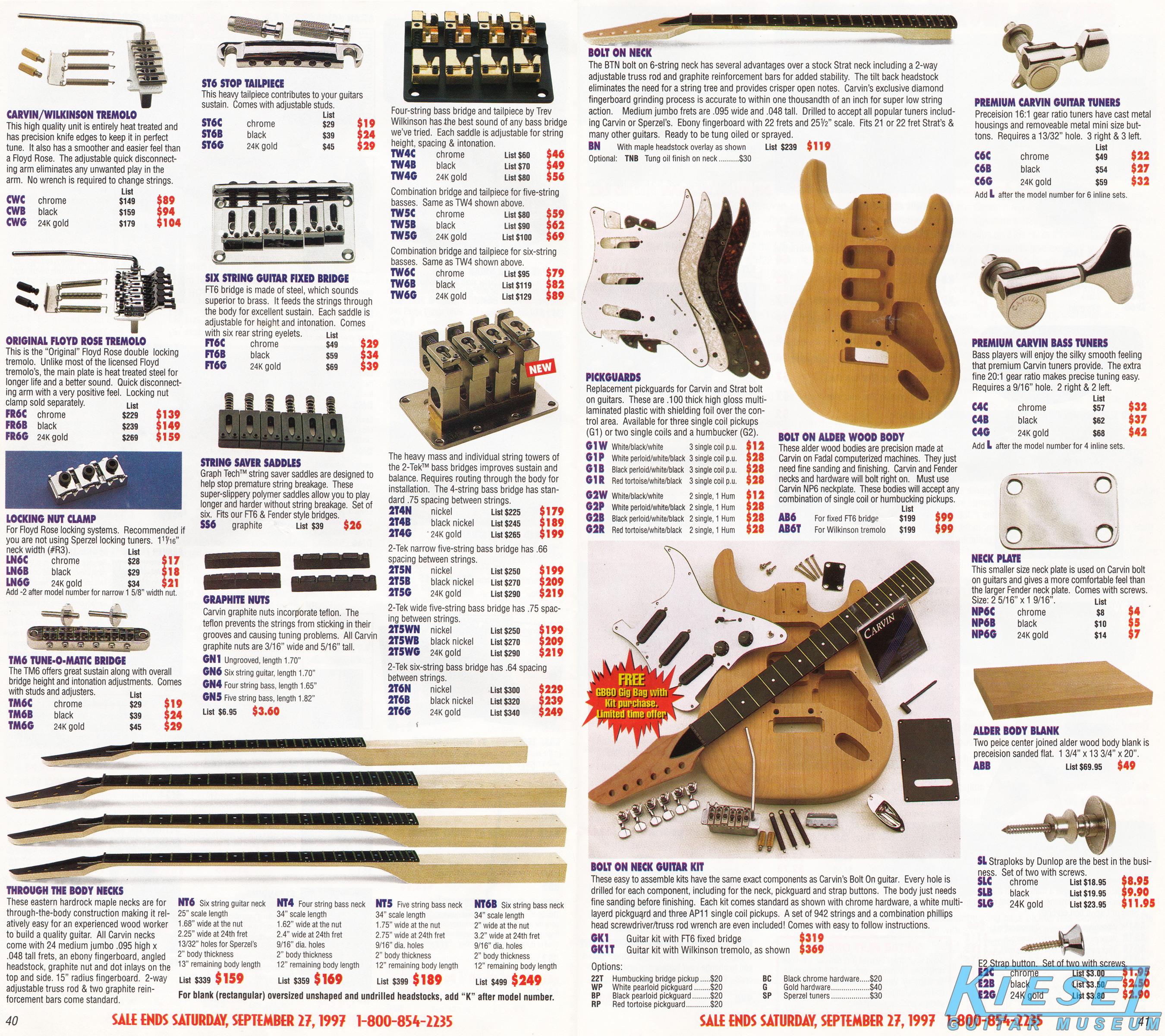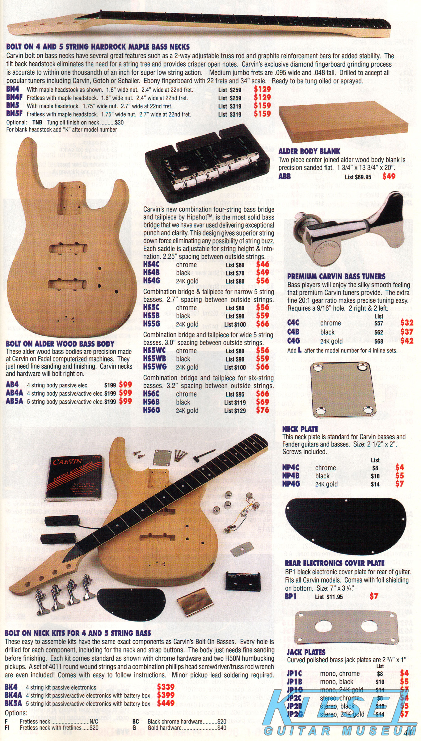 Although Carvin had offered bodies and necks off and on for a few years, as well as other parts, in 1997 the first full-fledged DIY