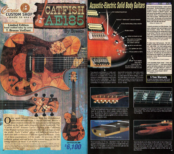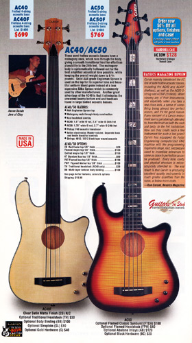 Carvin continued it's tradition of being one of very, very few mainstream bass manufacturers to offer a high quality, USA-made acoustic bass. Although most major bass manufacturers produce acoustic basses, these are generally imports, and lack the high quality and features of the AC40 and AC50, such as neck-through design, mahogany body and standard AAA Engleman spruce top. The AC40 was priced at $699, and the AC50 was priced at $769.