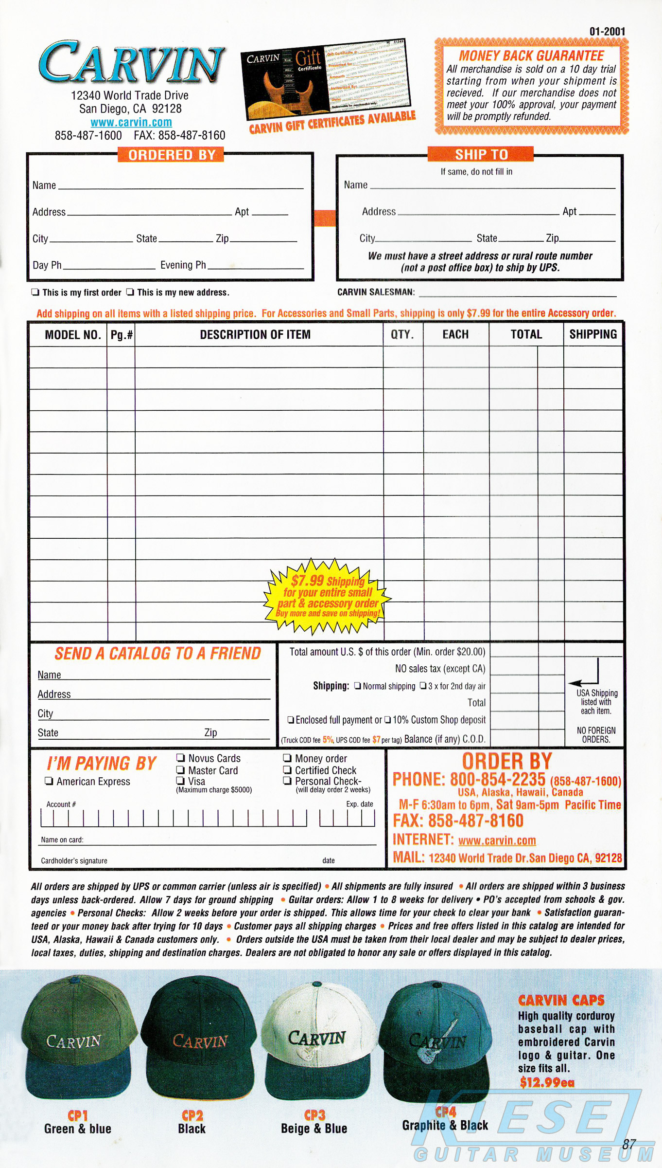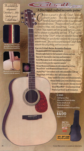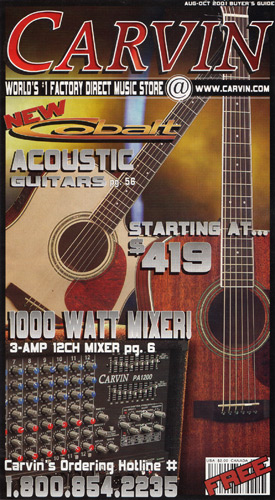 In 2001, Carvin tried something totally new, the Cobalt Series of acoustic guitars. Unlike Carvin's Custom Shop guitars and basses,