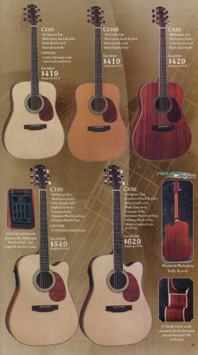 for $429. The C750 was an acoustic/electric single-cutaway model, with Fishman Matrix pickup and Fishman Prefix Plus electronics,