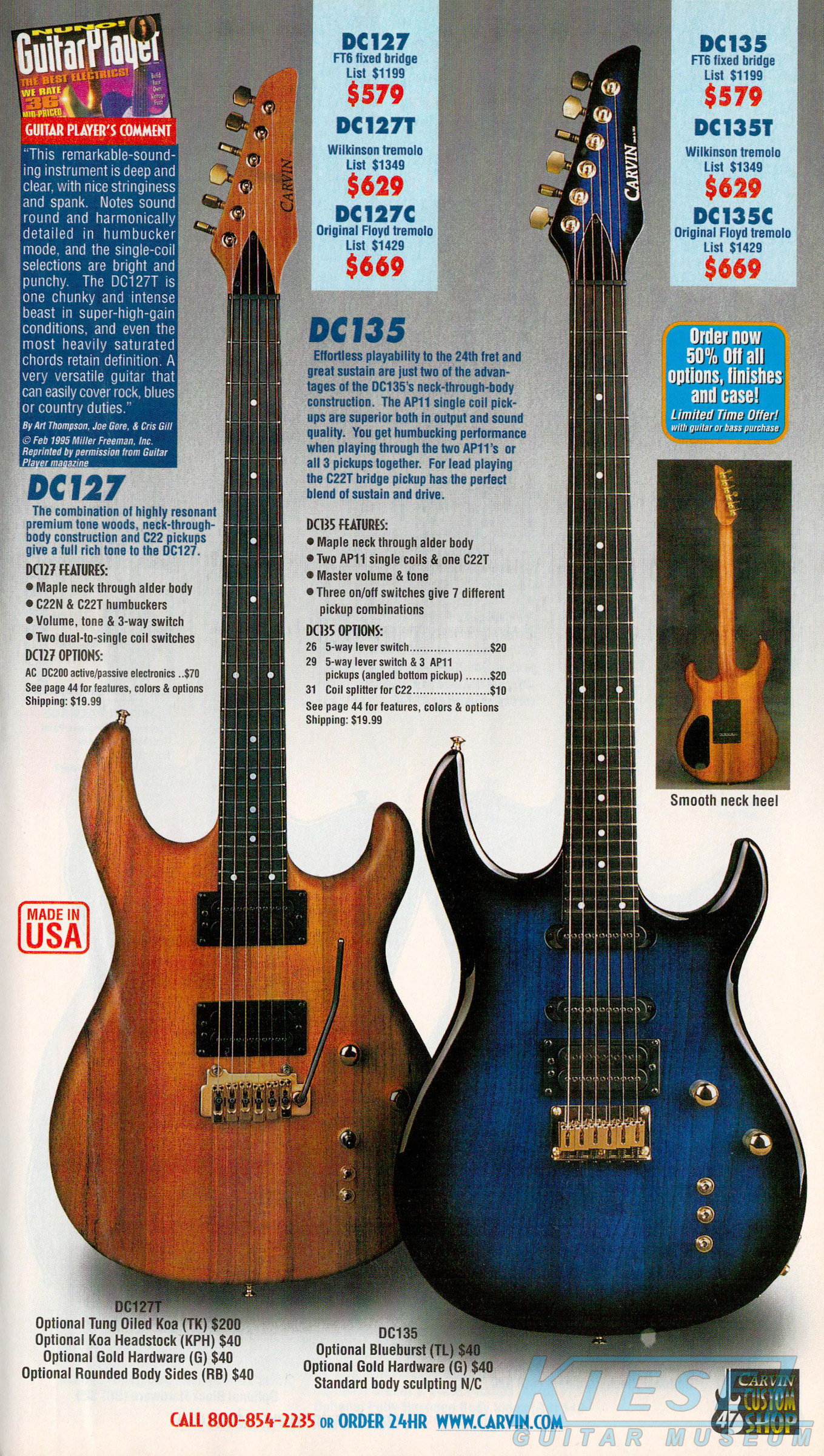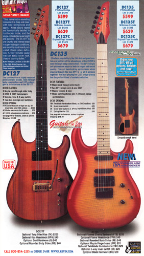 The DC127 and DC135 were unchanged for 2001, but benefited from the available twinblades and Fishman acoustic bridge. The prices achieved parity, with both models now selling for $599, or $639 with the Wilkinson tremolo, or $679 with the Floyd Rose tremolo.