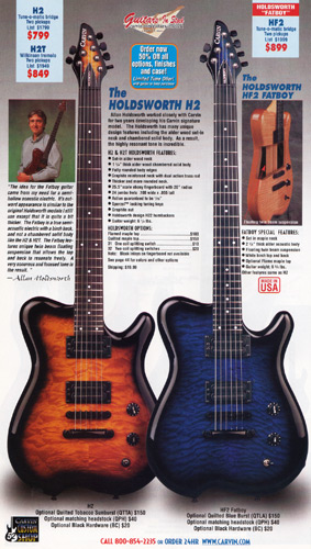 Allan Holdsworth's signature single-pickup H1 and HF1 were retired, leaving the dual pickup H2 and HF2 models (although the single pickup versions could be custom ordered). Base prices remained the same, at $799 for the H2, and $899 for the HF2.