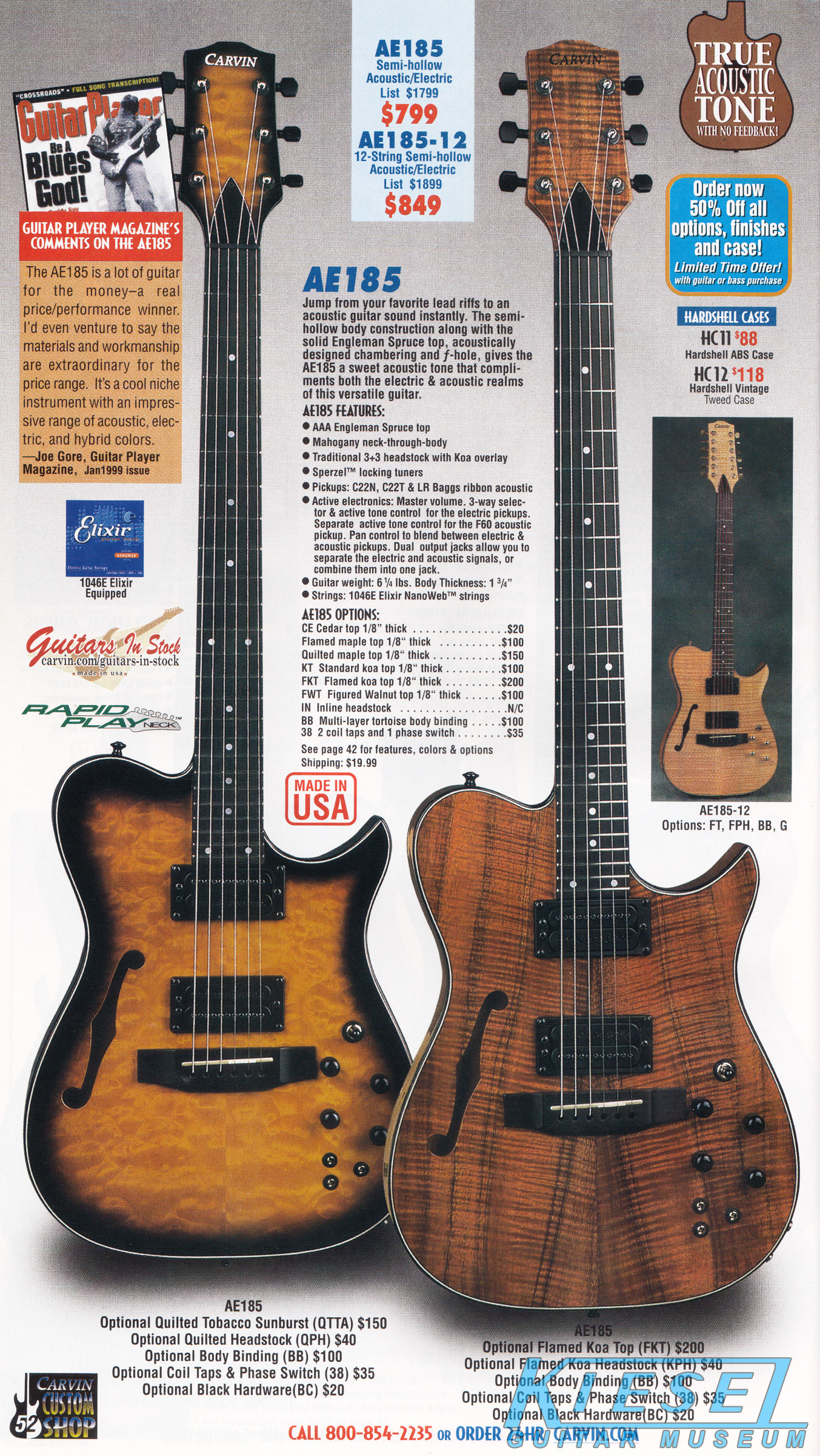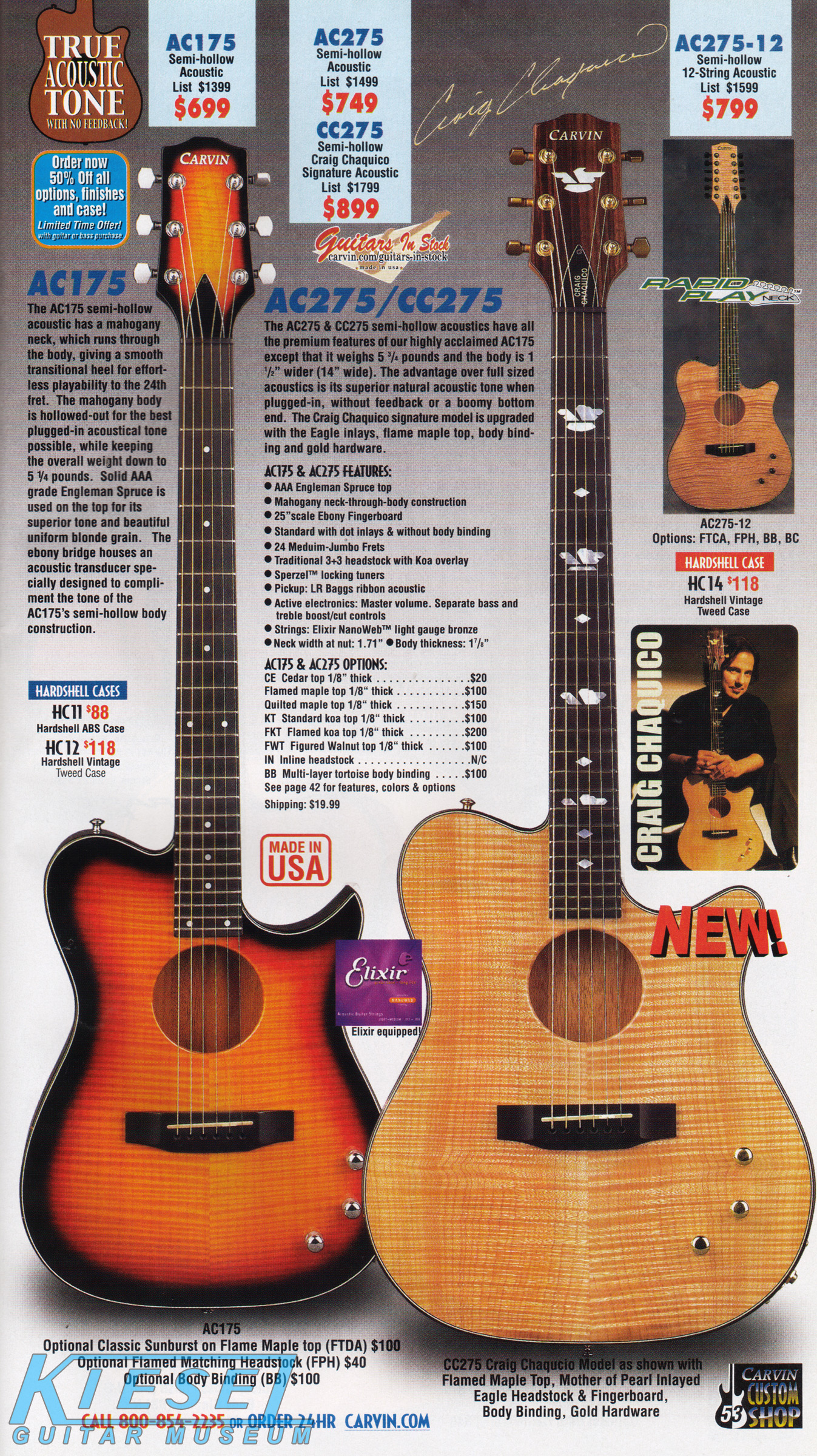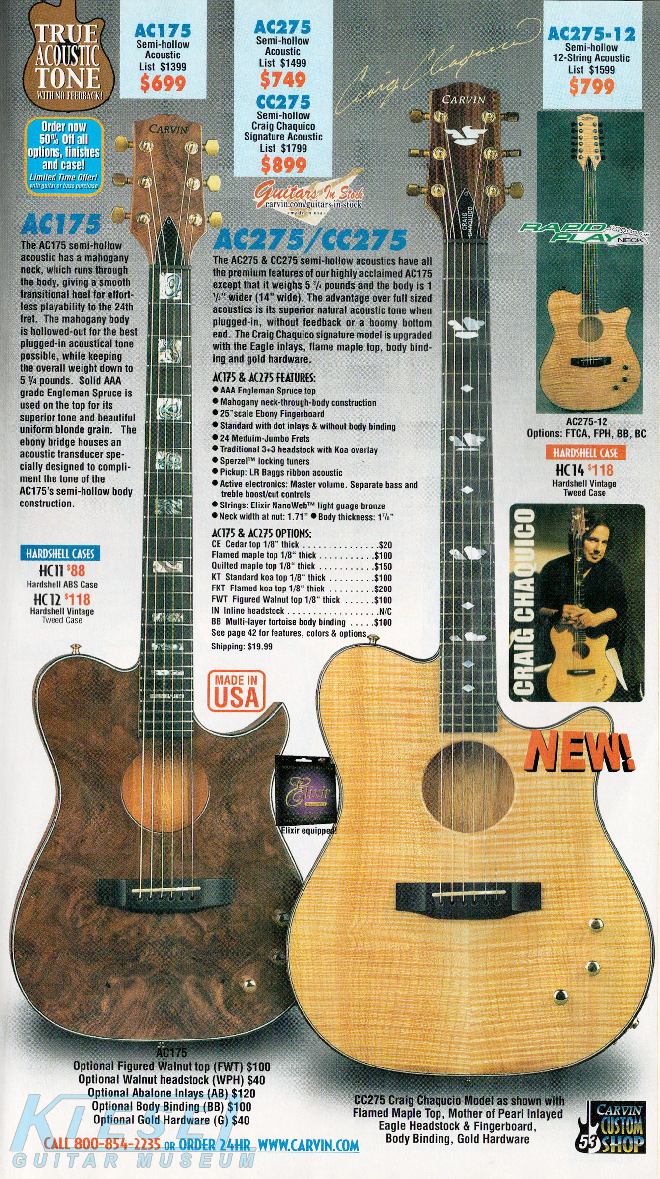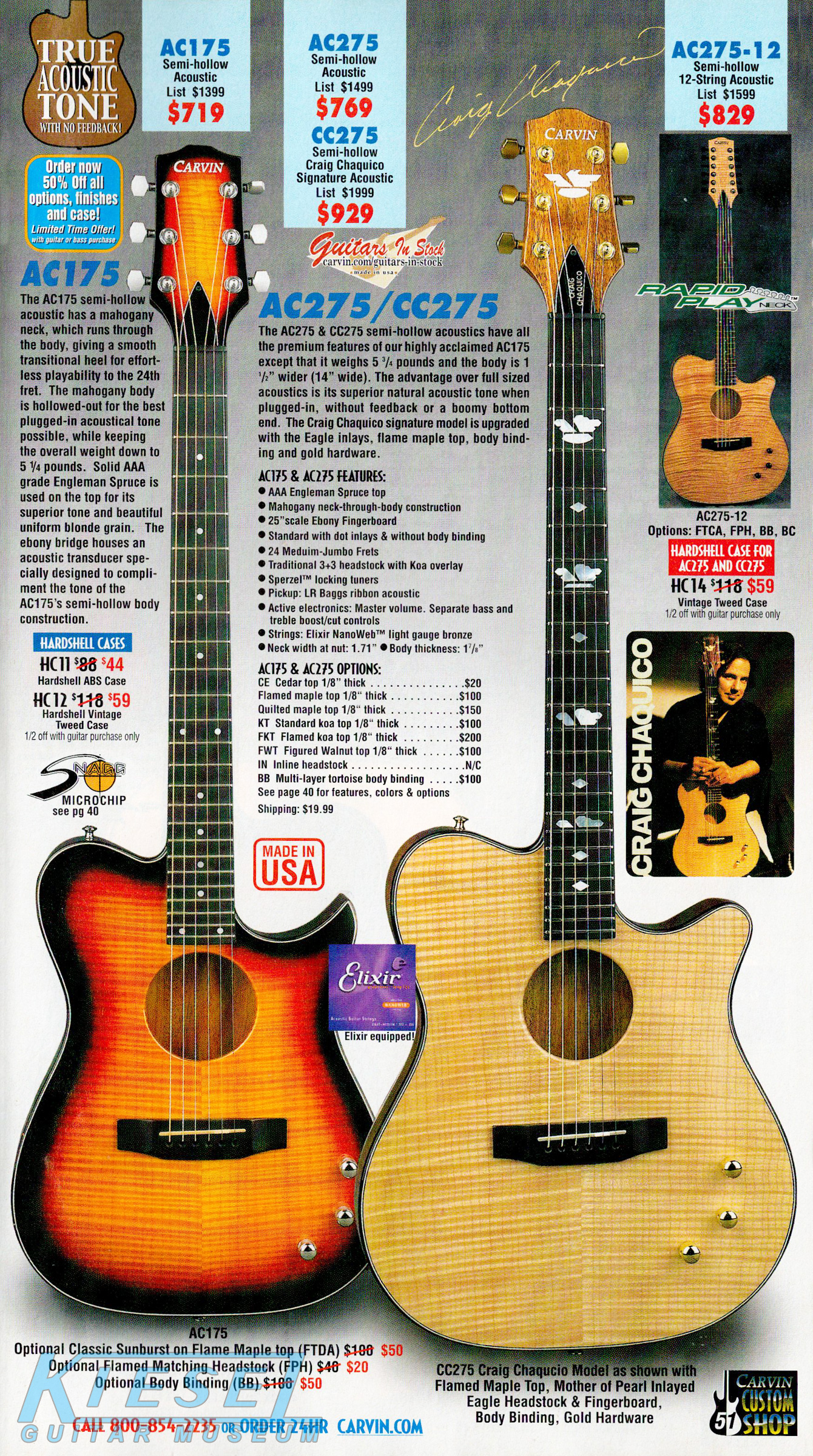 standard flamed maple top, Craig's signature MOP inlaid eagle headstock & fingerboard, body binding and gold hardware. The CC275 sold for $899.It was also available