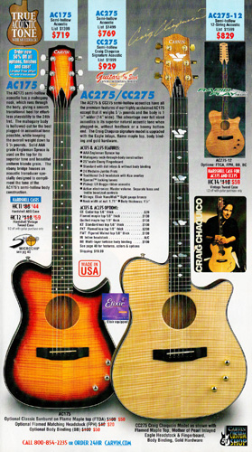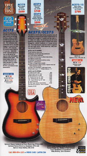 New for 2002 was the CC275 (below), which was designed for longtime Carvin endorser Craig Chaquico, who had been playing Carvin V220s and