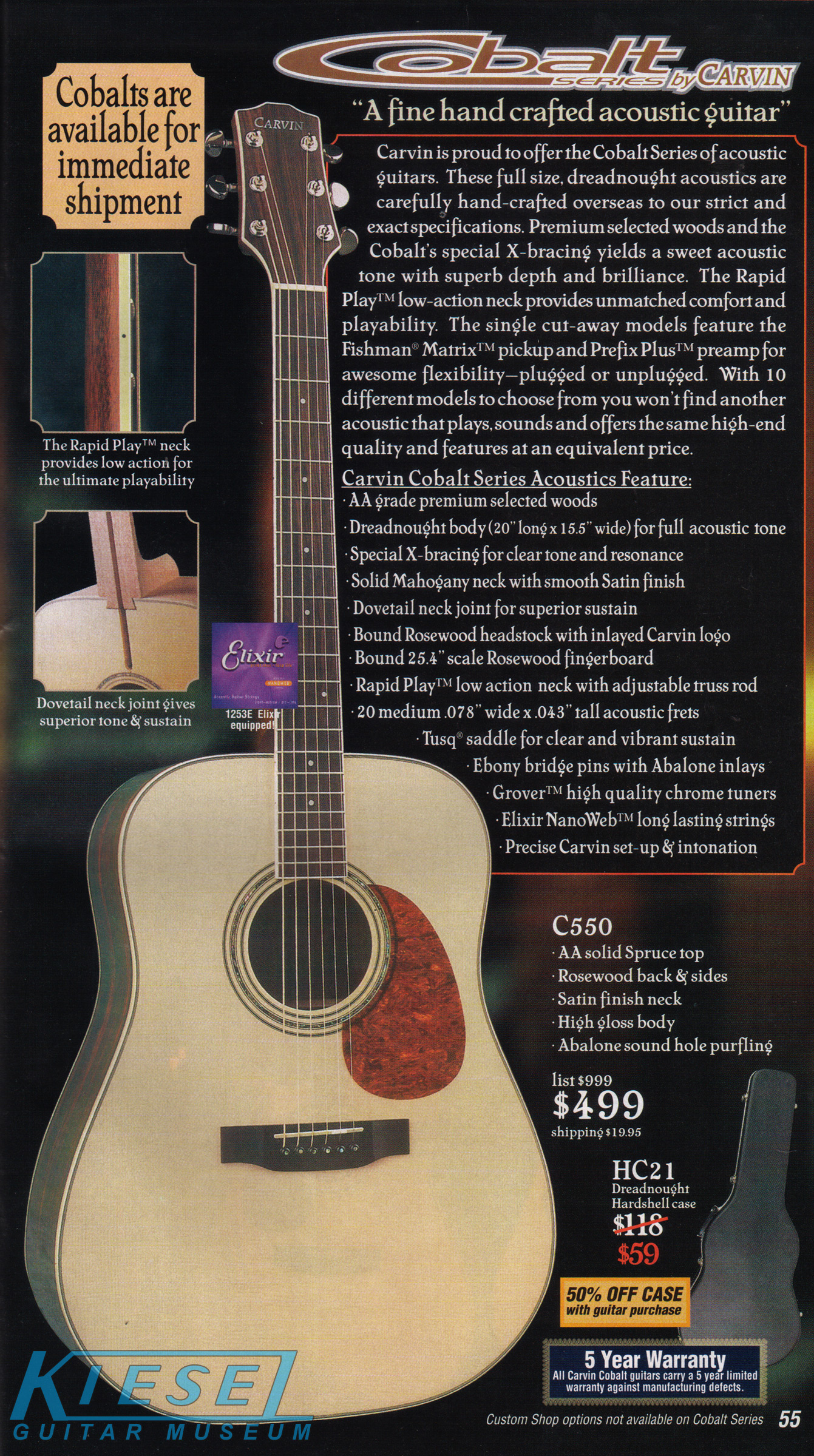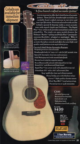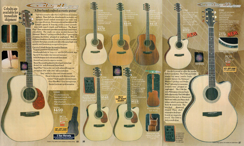 The import line of Cobalt acoustic guitars were still strong sellers, so much so that two new models were added for 2002: the Cobalt C780