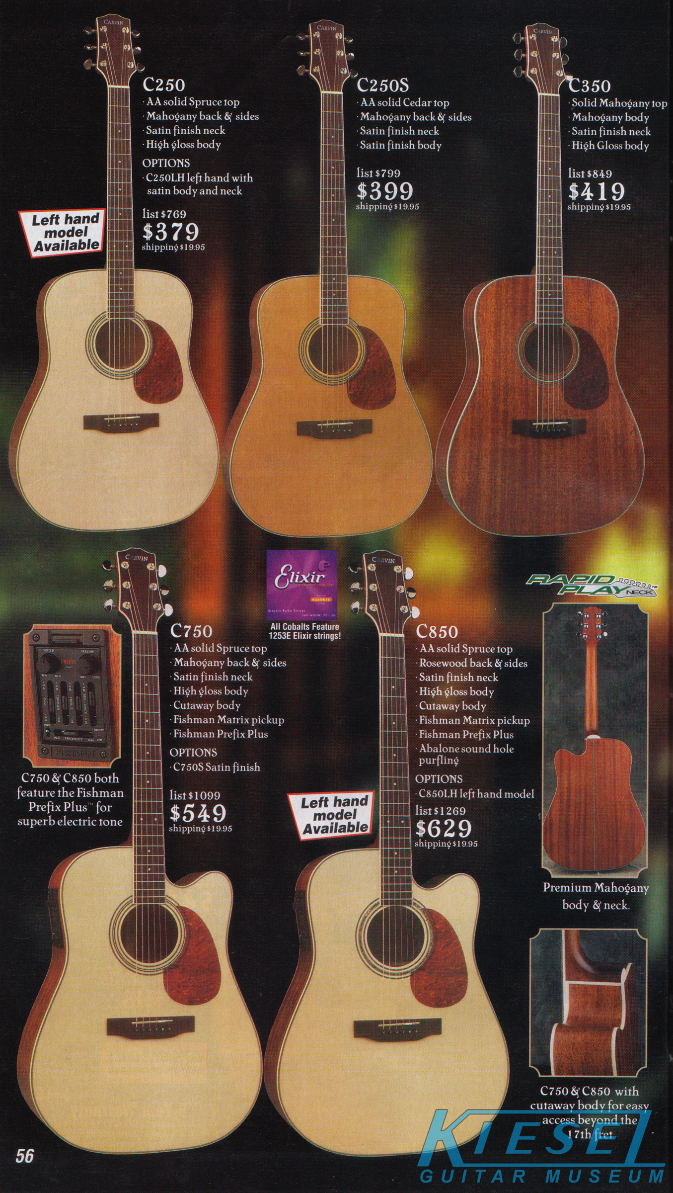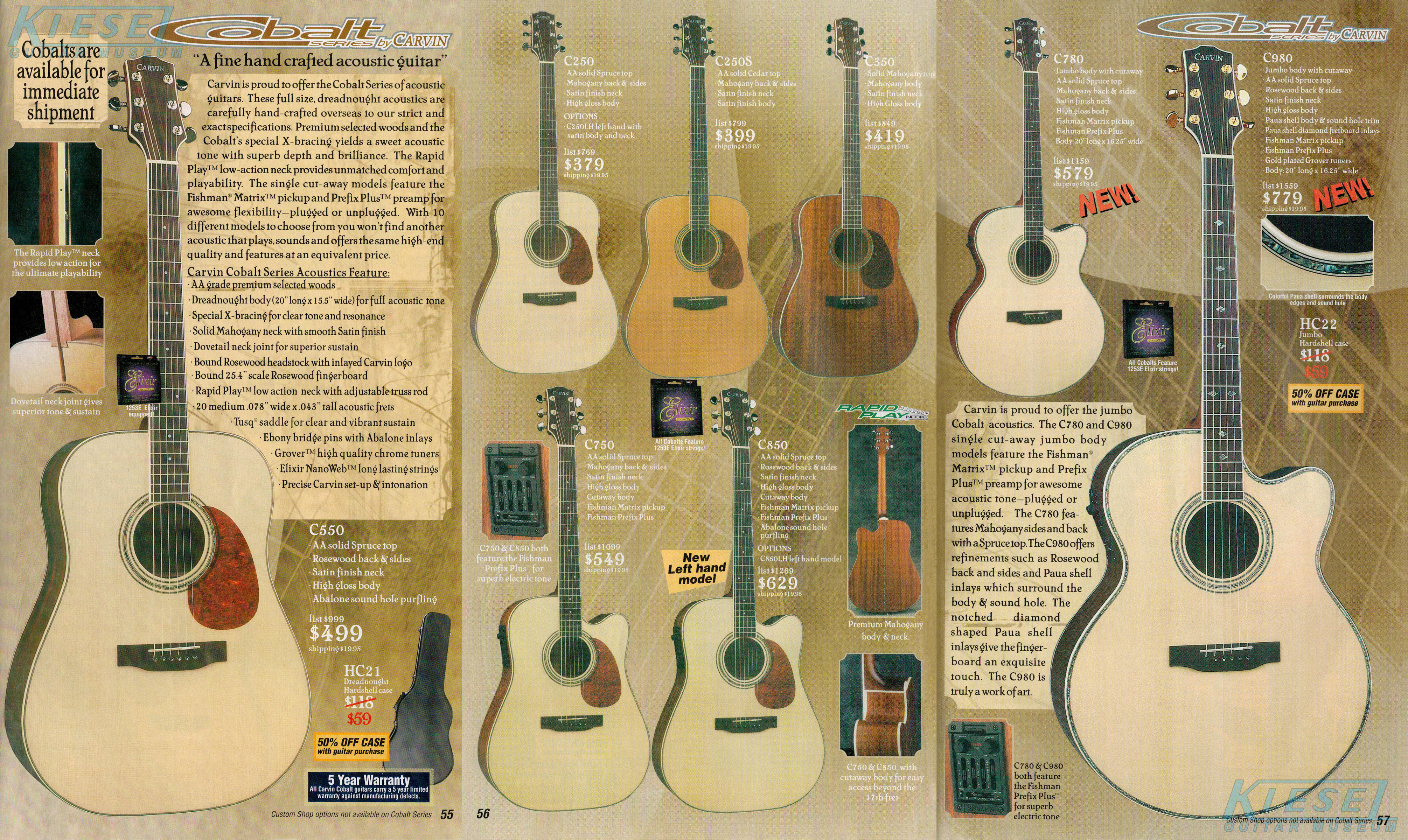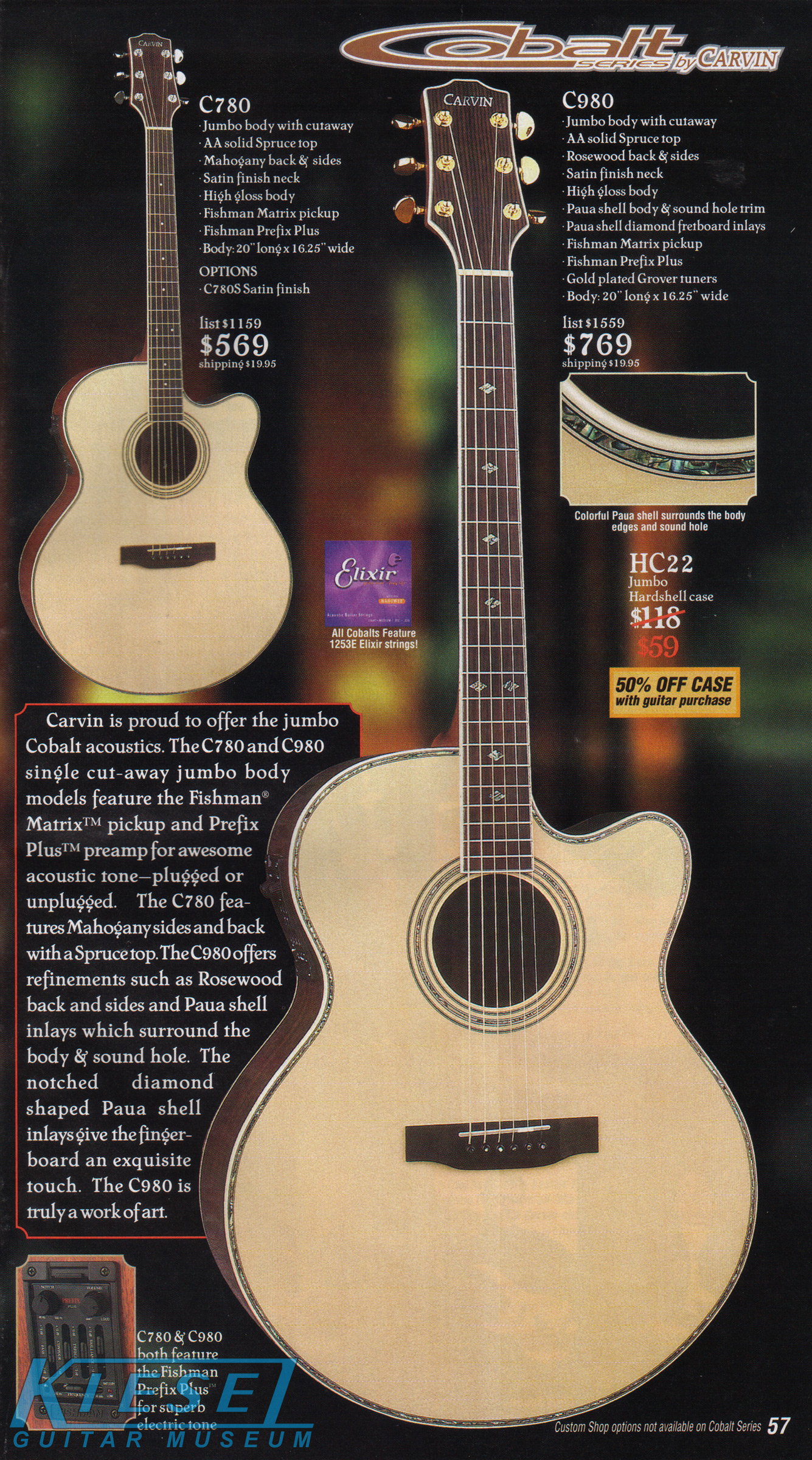 and Paua shell diamond fingerboard inlays, sound hole purfling and body trim. The C780 sold for $569, and the C980 sold for $769. The other
