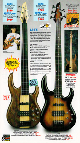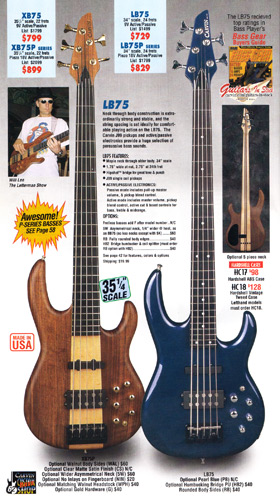 The new XB75 (below) was a 5-string, extended scale (35 1/4", versus 34" on the LB series), 22 fret bass, with all the features and available