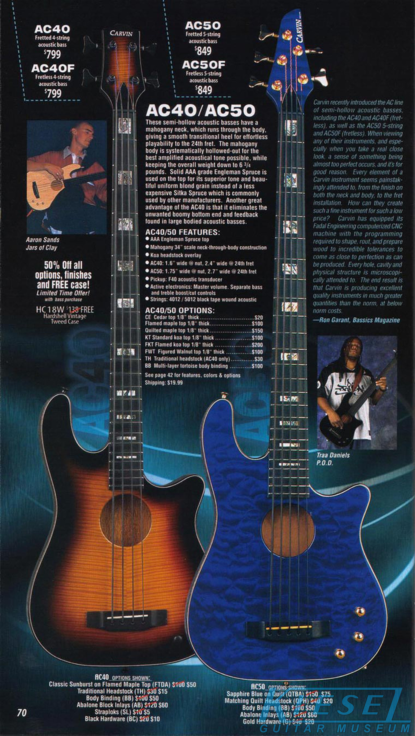 The AC40 and AC50 were also unchanged for 2003, and continued to offer bassists a high quality acoustic model with all the features and options of a