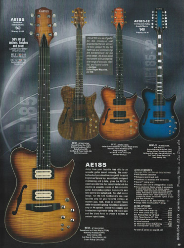 The AE185 and it's 12-string counterpart, the AE185-12, were unchanged for 2003. The AE185 increased in price to $869, while the 12-string version