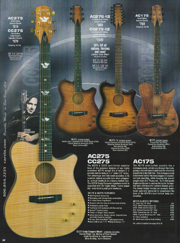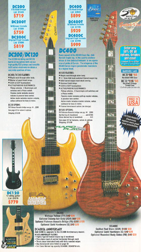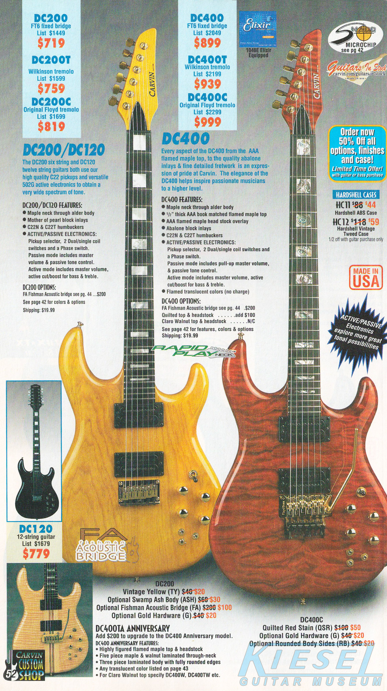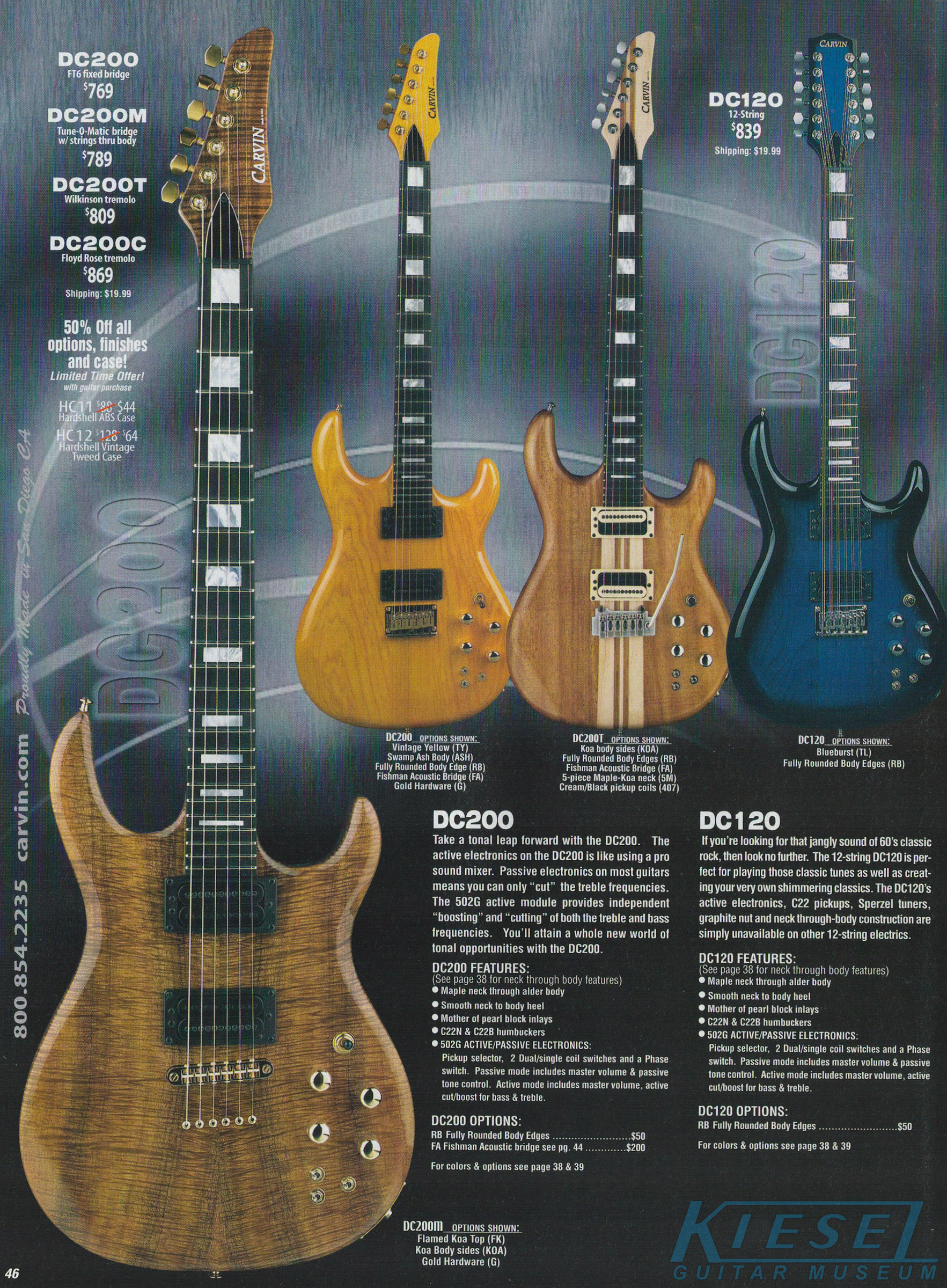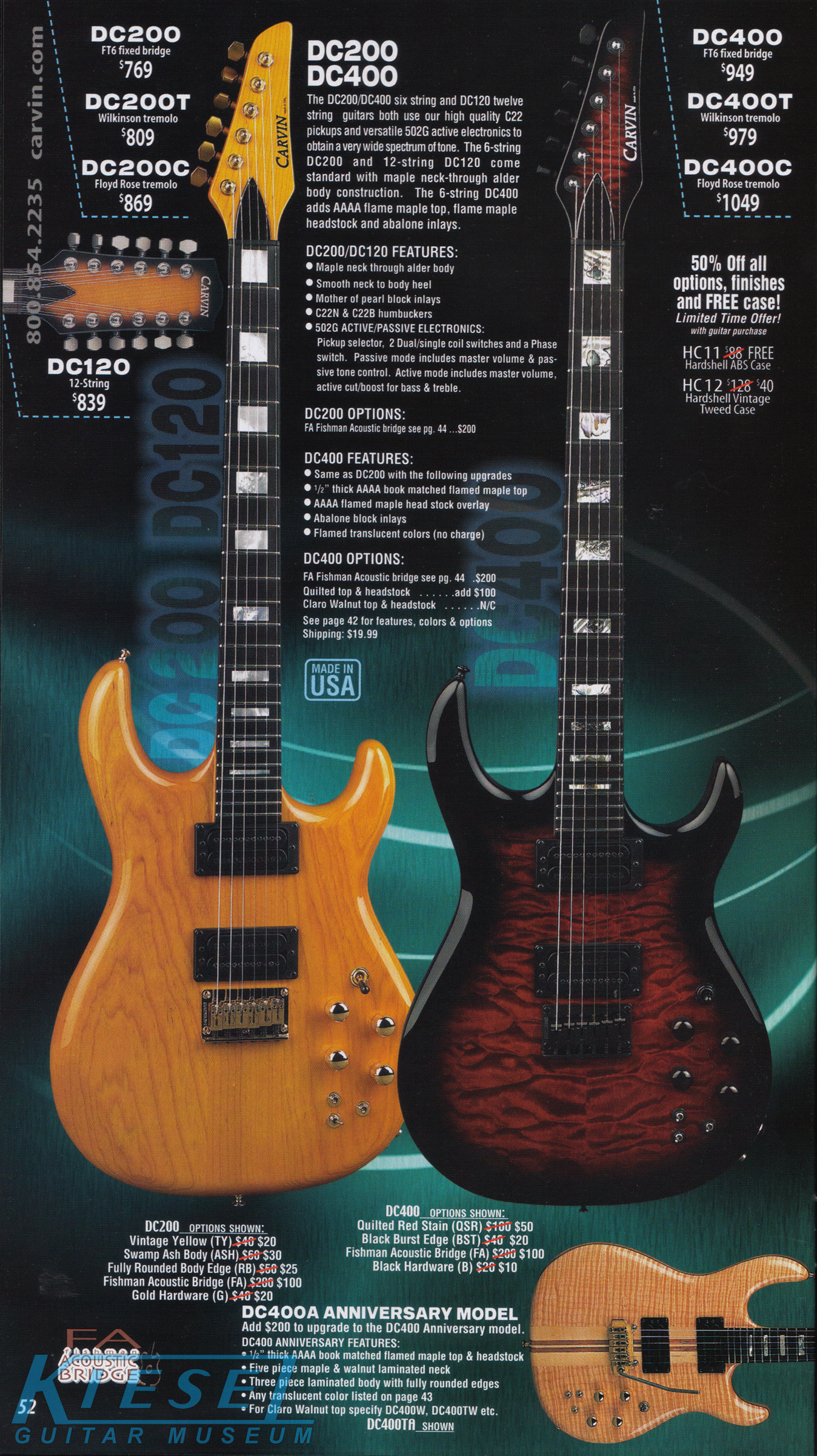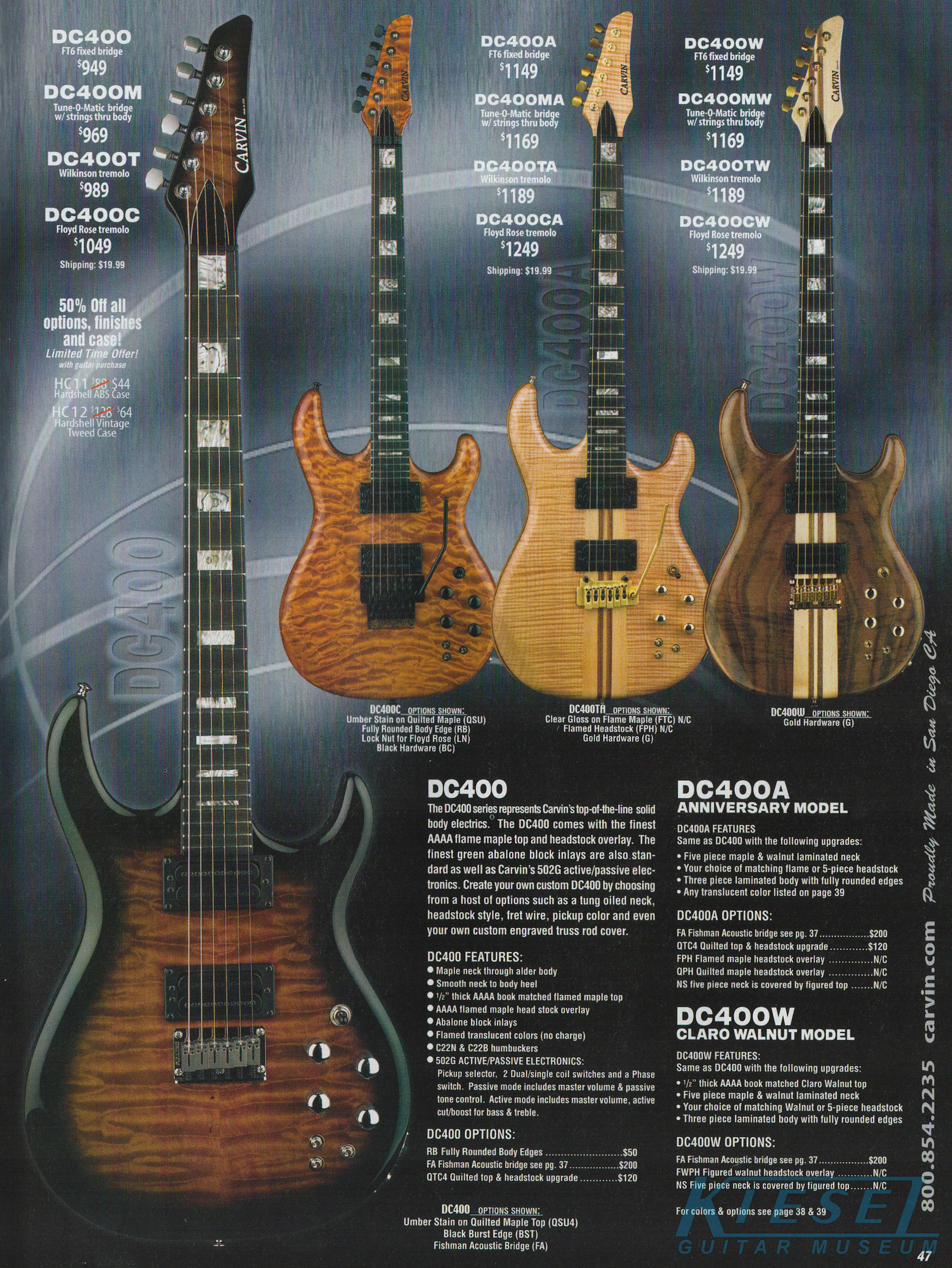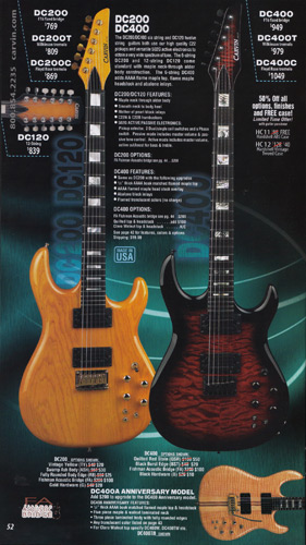 catalog that came out at the end of 2003, this changed, and both models were shown alongside the standard DC400. Up to this point, the DC400W had never been pictured in any Carvin