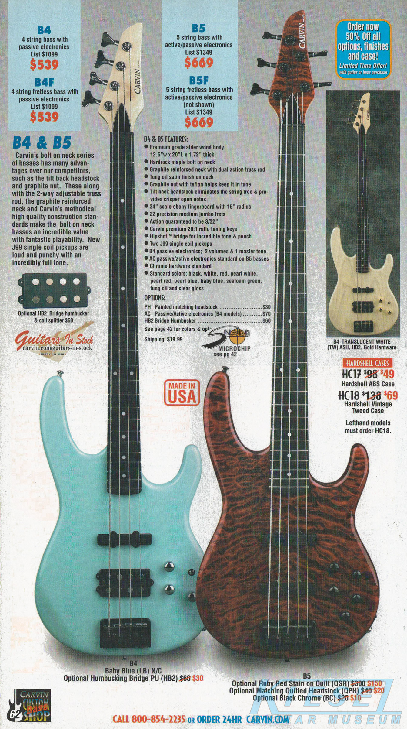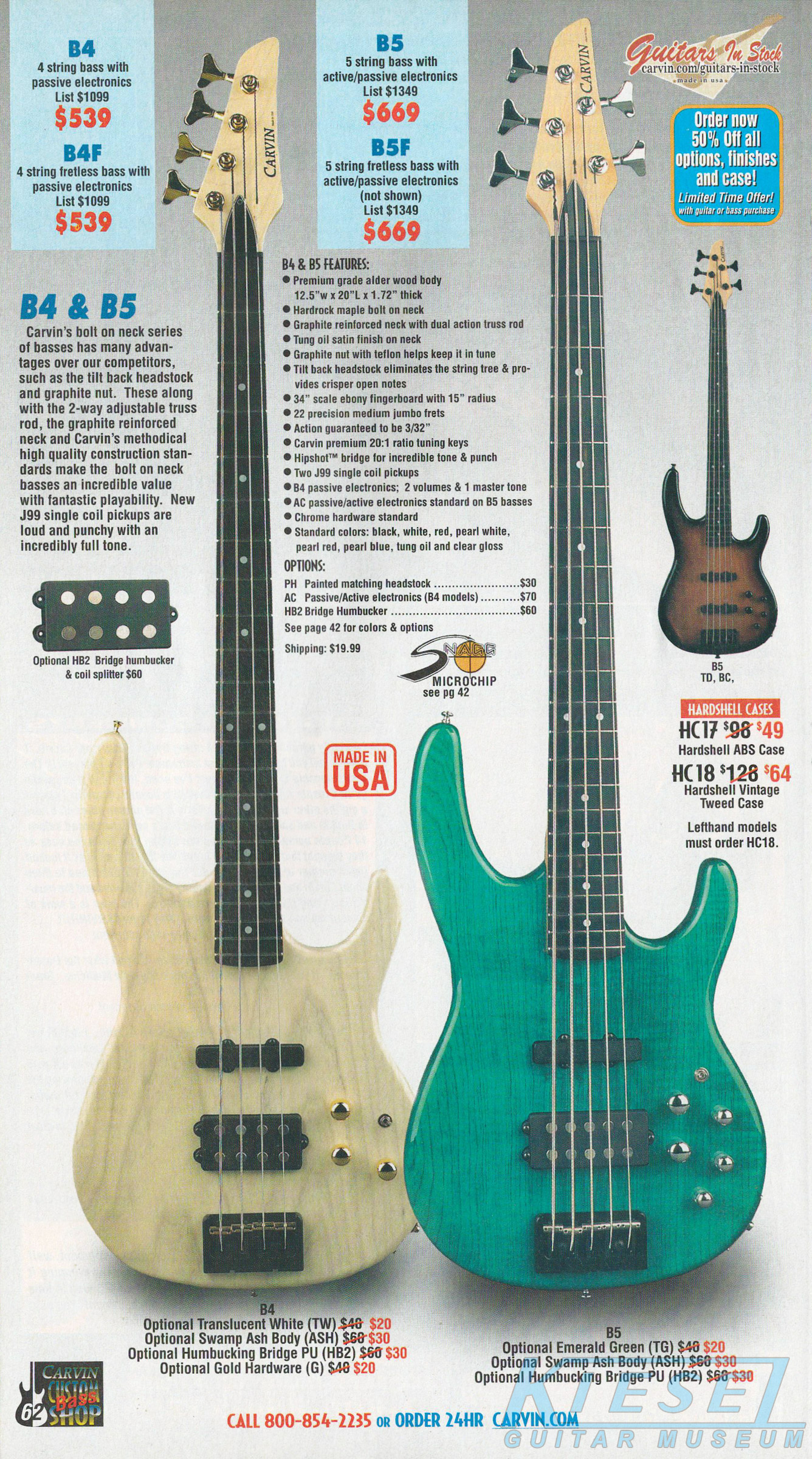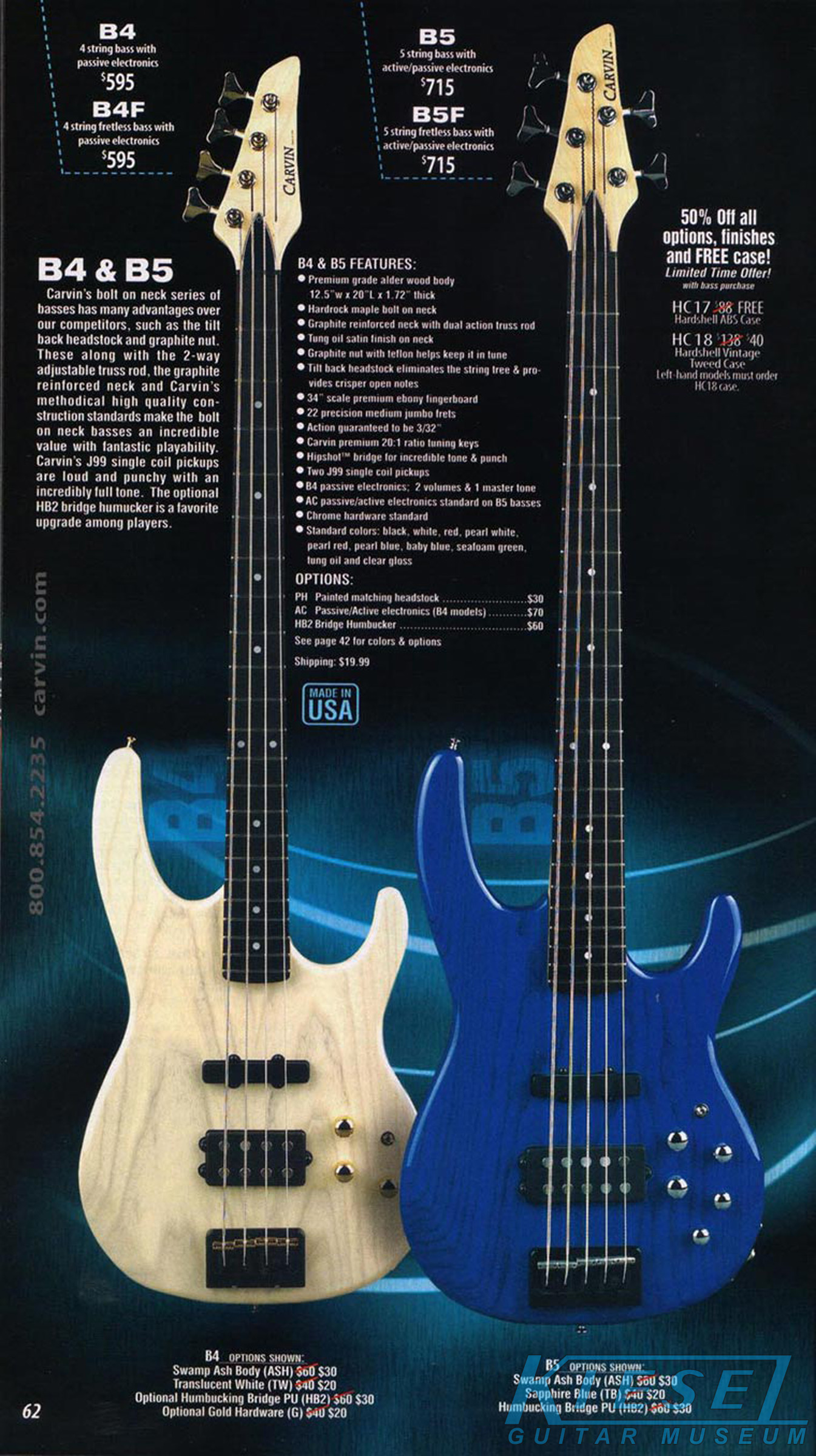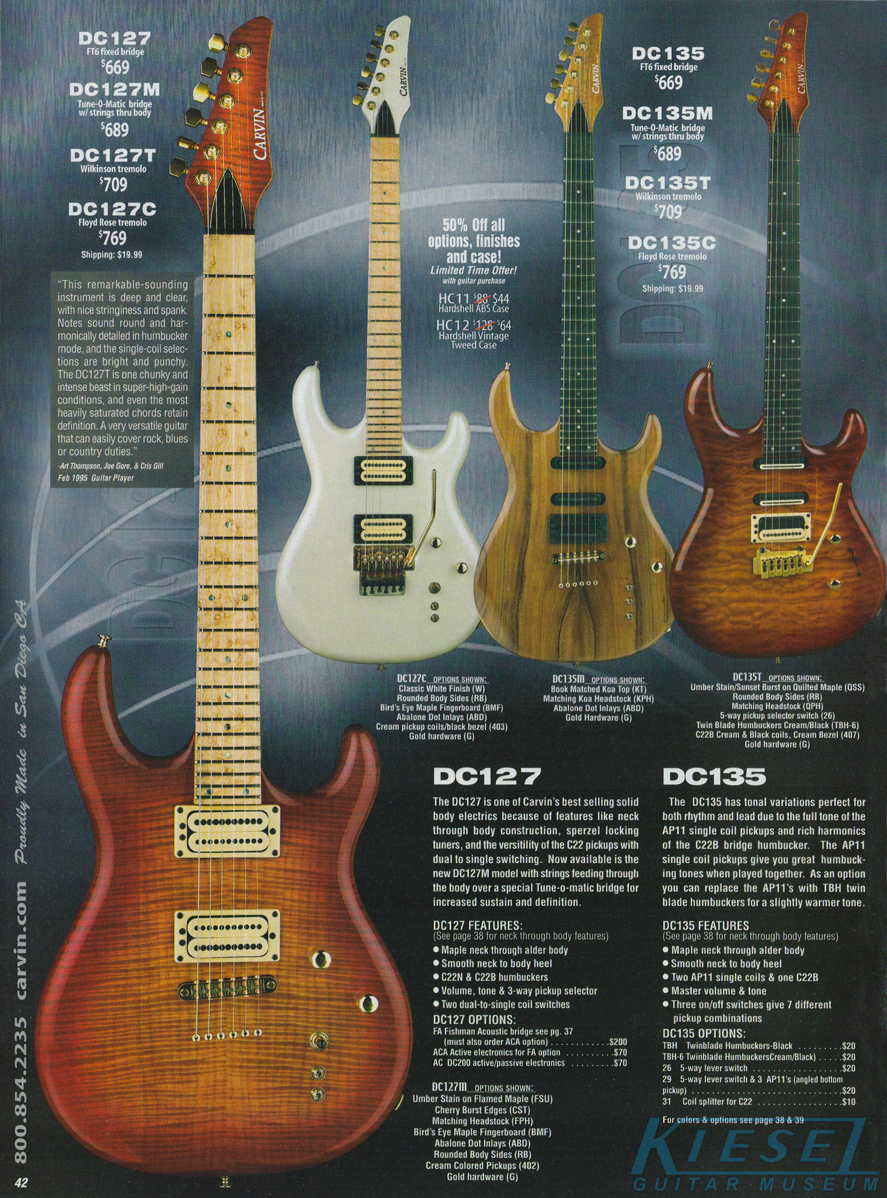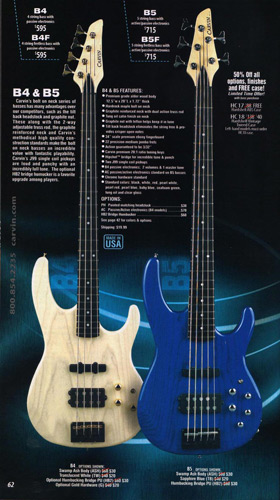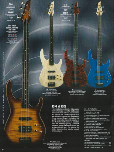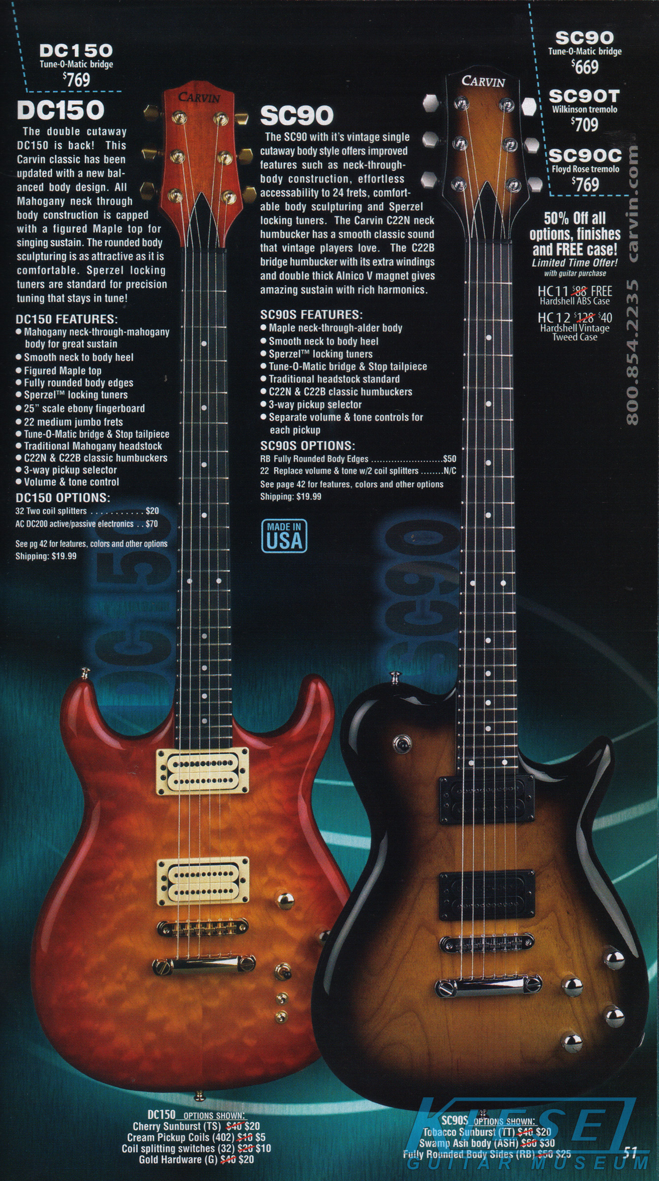 catalog that came out at the end of 2003, this changed, and both models were shown alongside the standard DC400. Up to this point, the DC400W had never been pictured in any Carvin