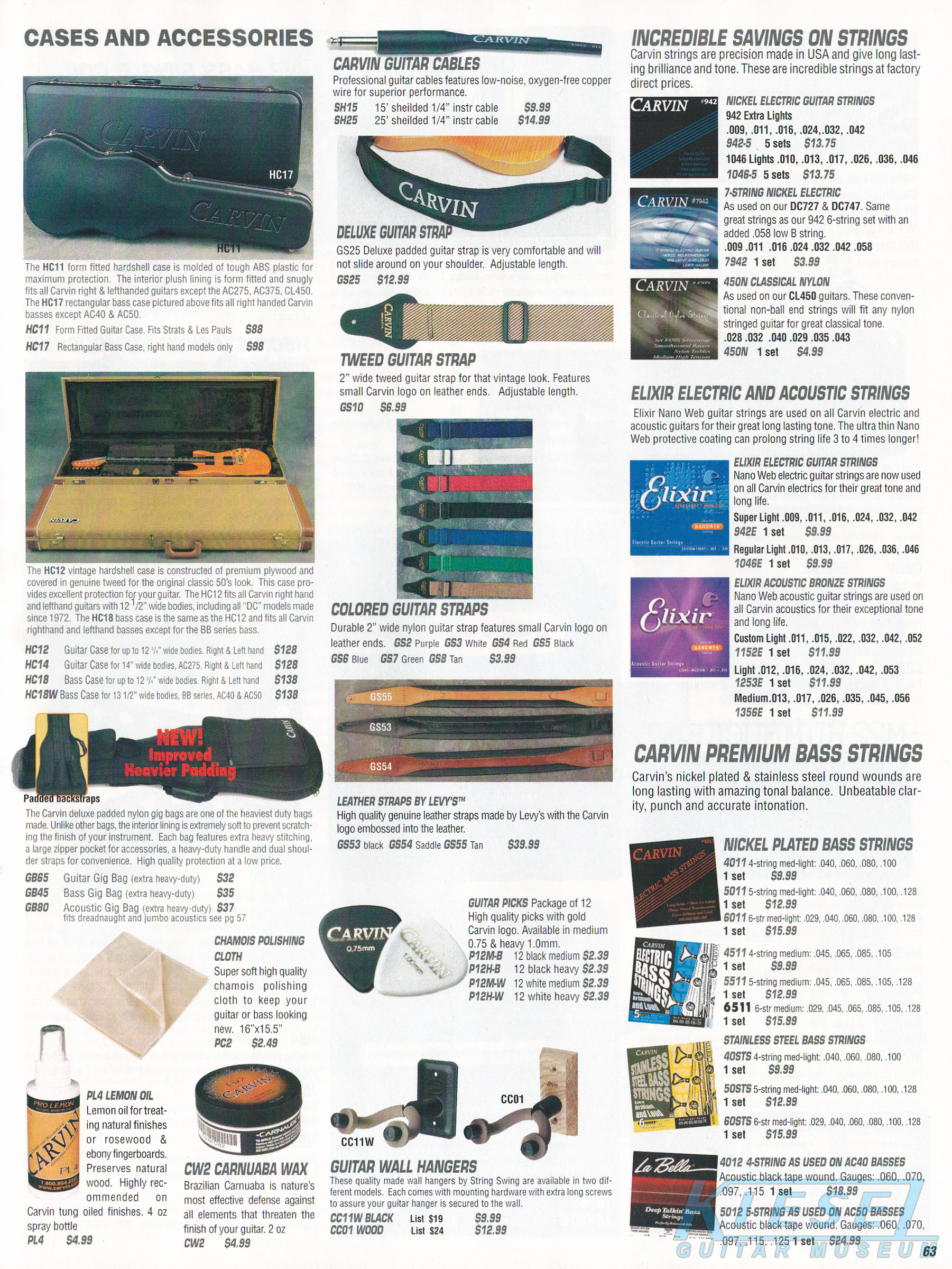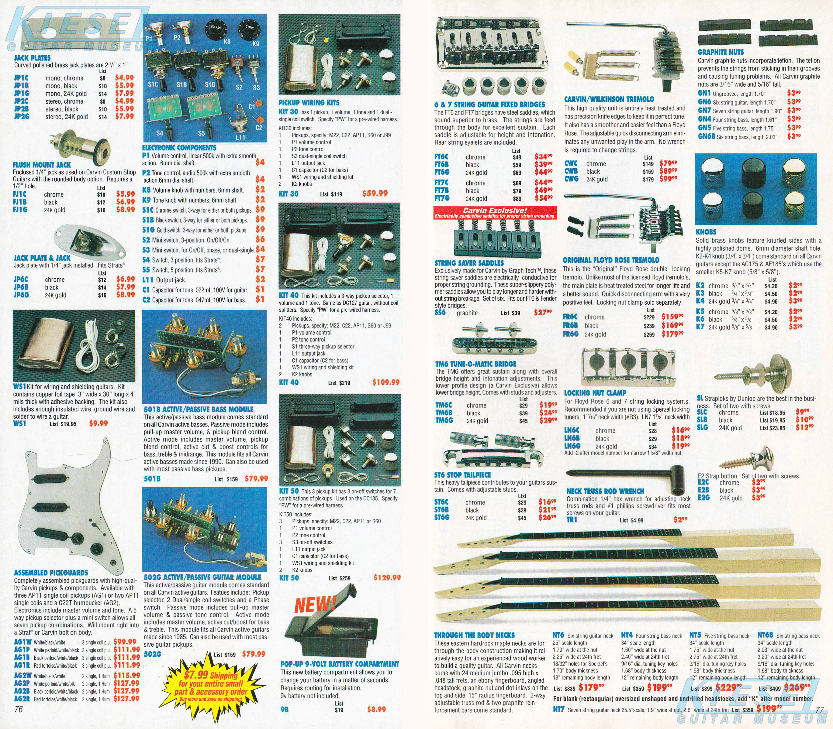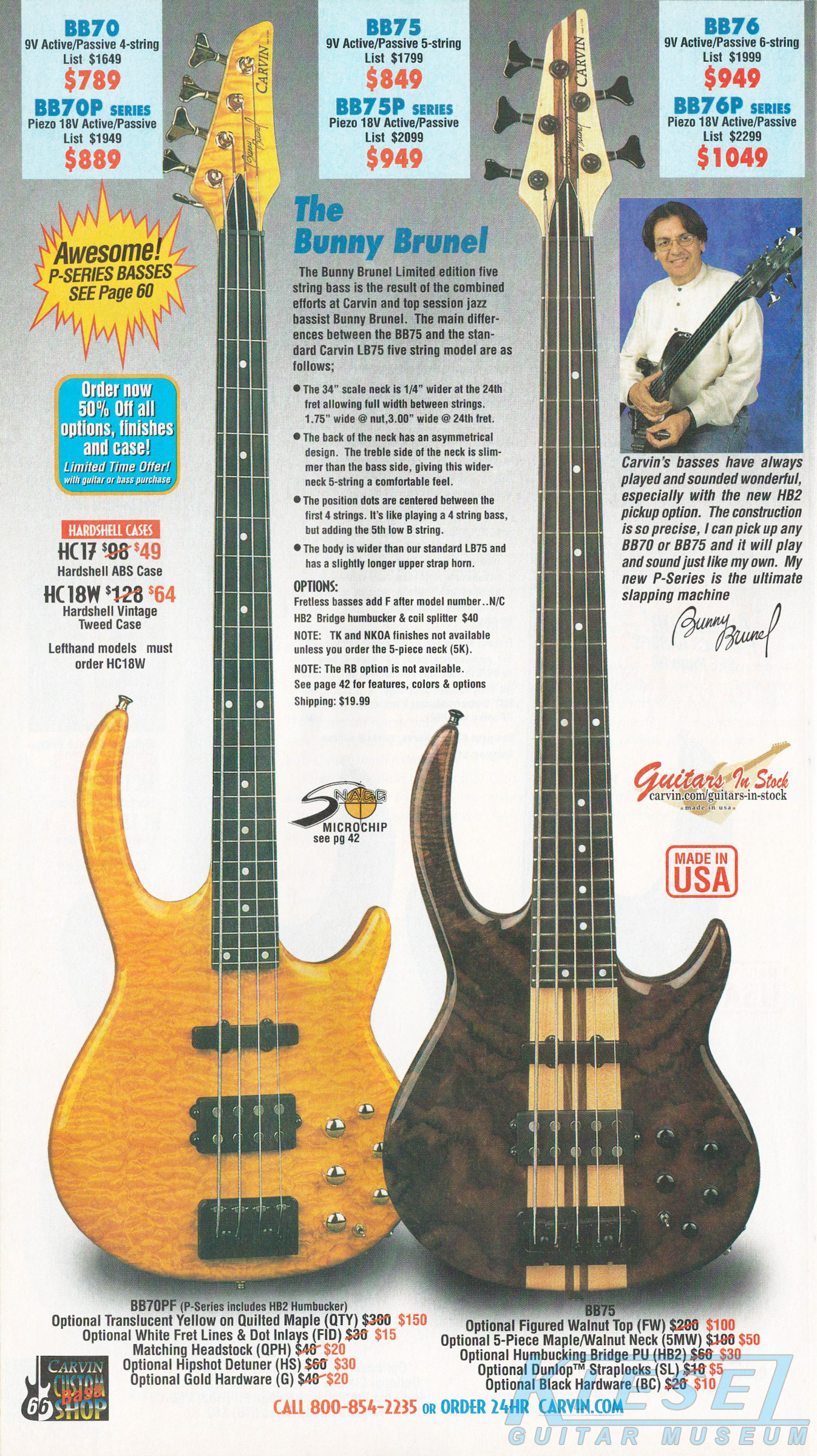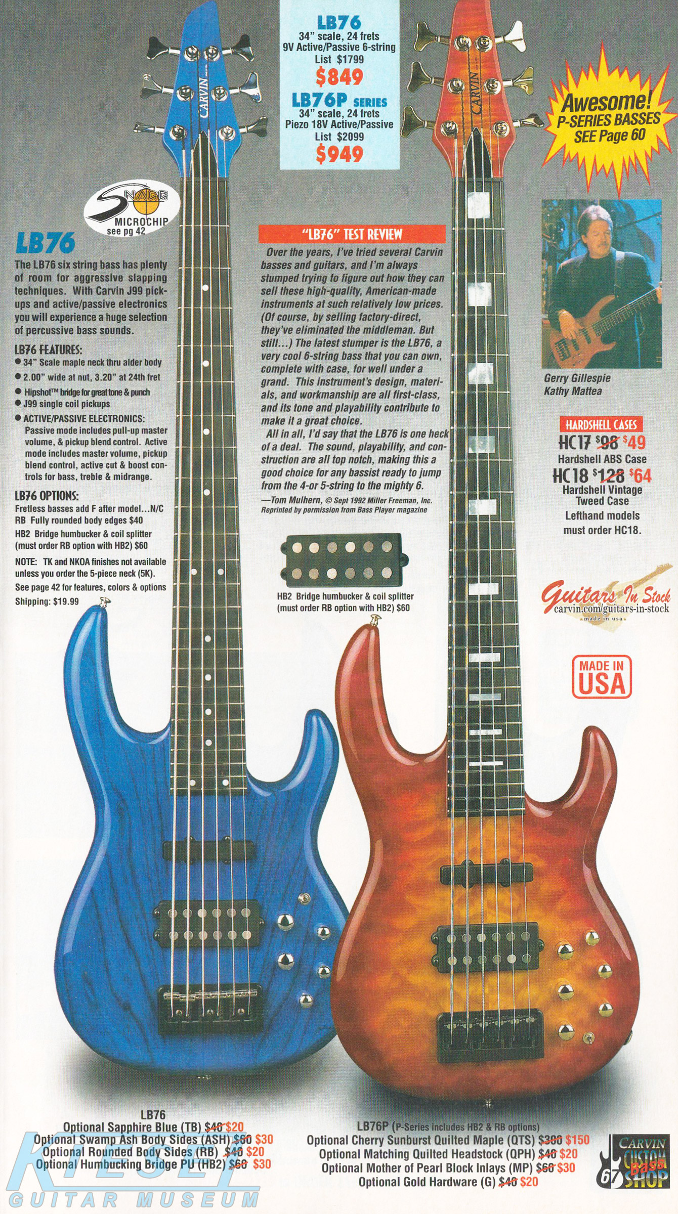 Carvin's LB70, LB75 and LB76 continued to be available in the Claro Walnut Series (W Series), and had no changes from 2002. The catalog inset showed