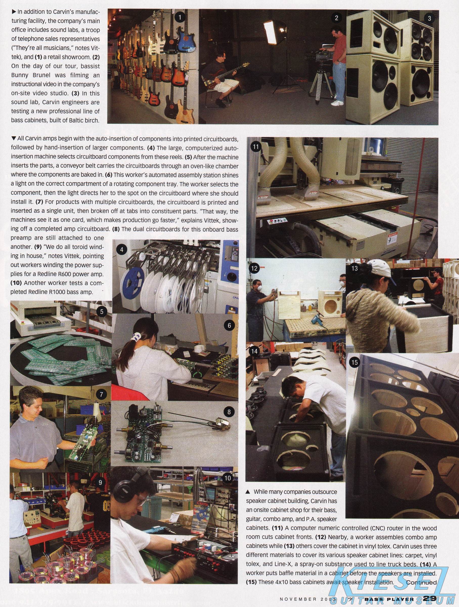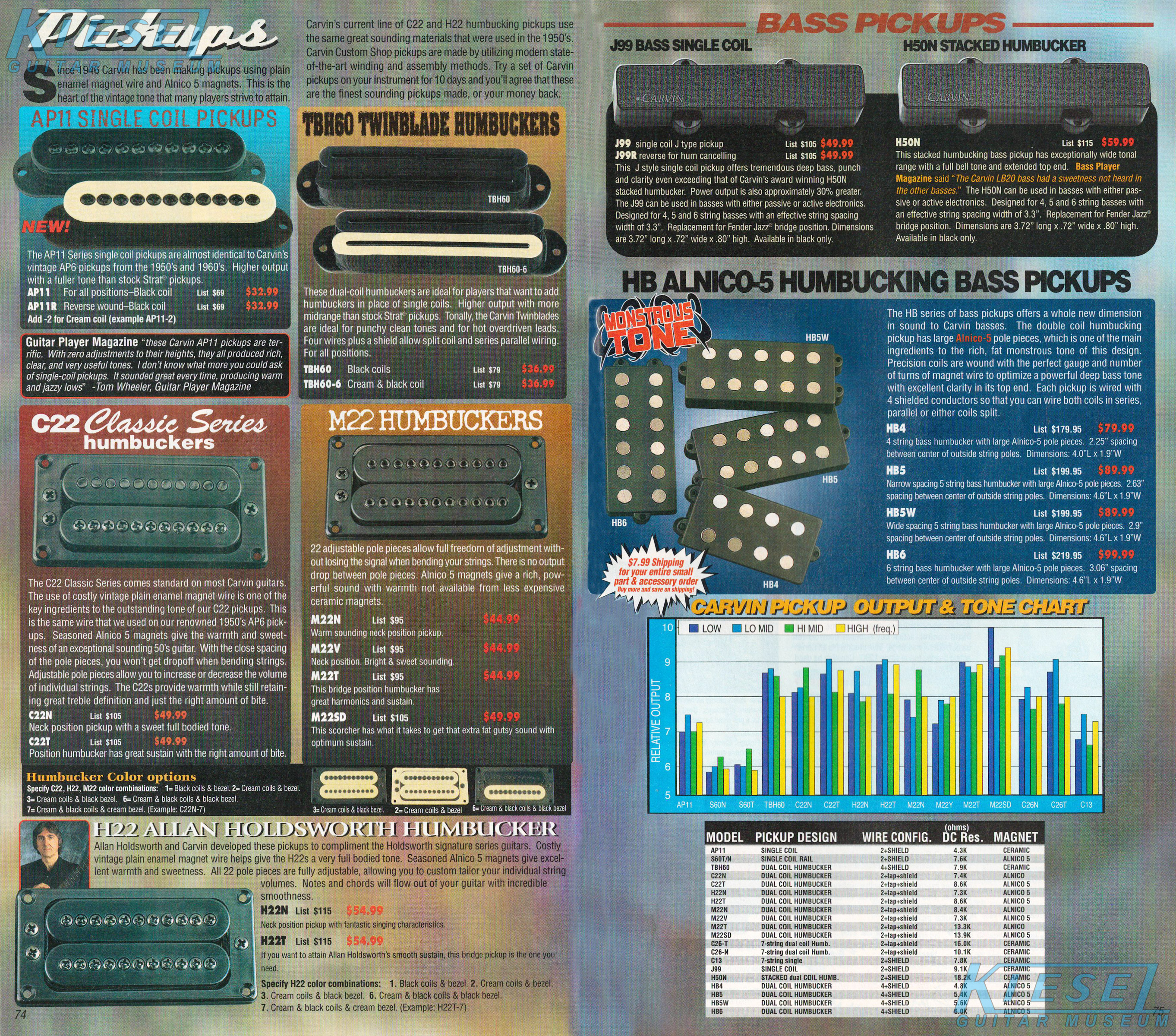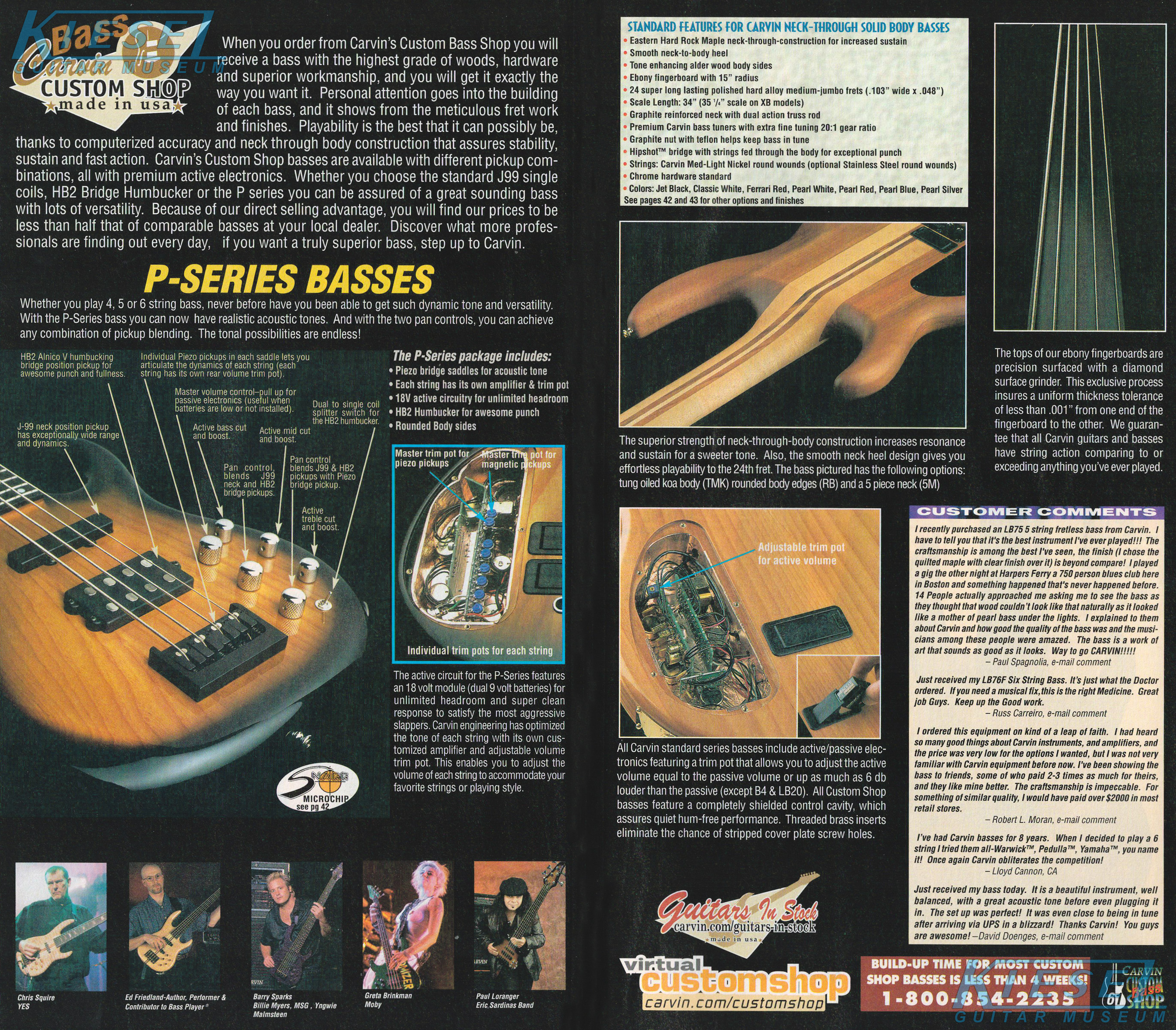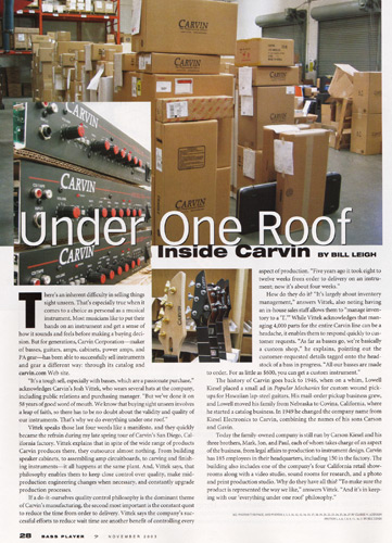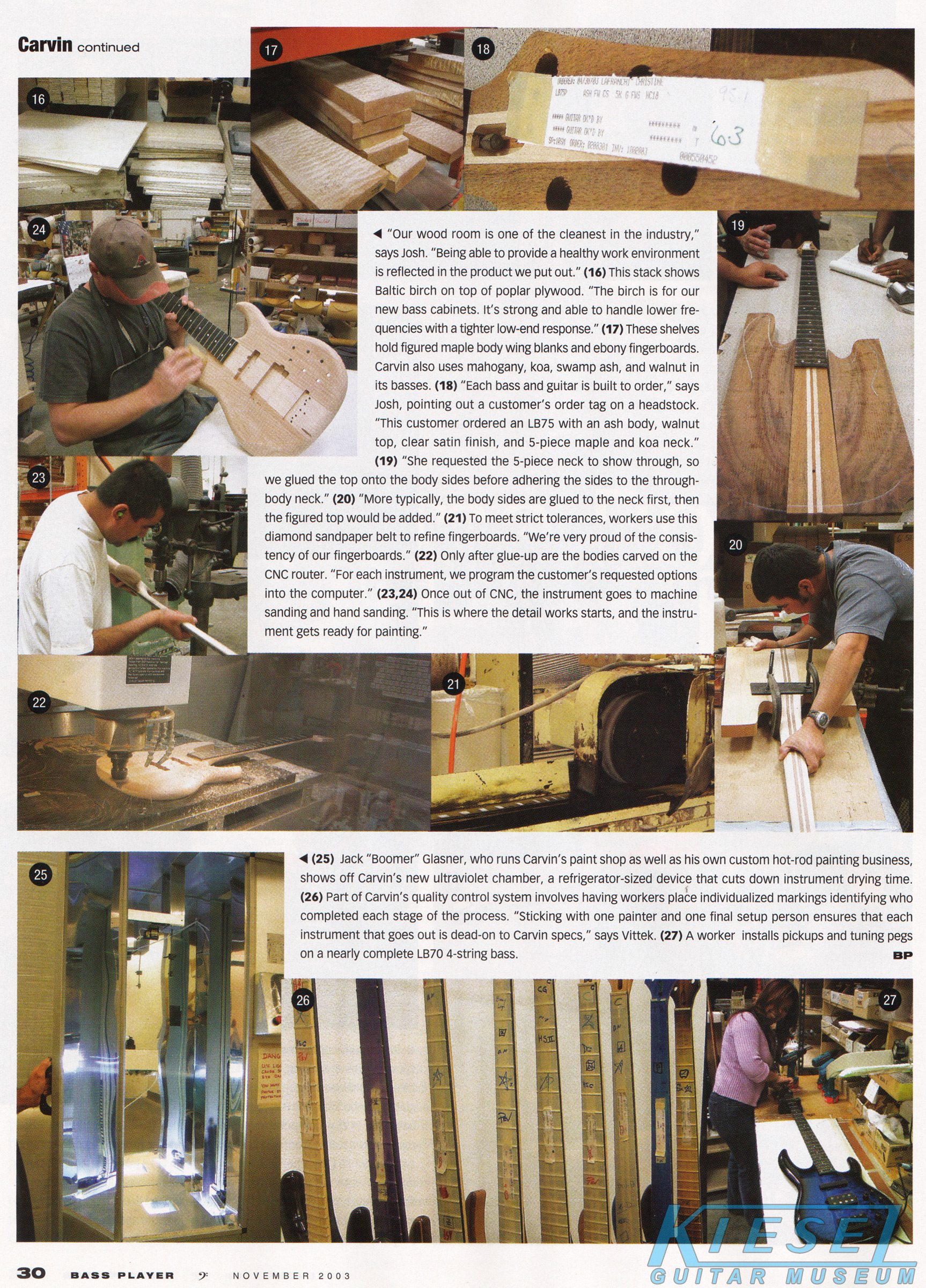 Carvin's LB70, LB75 and LB76 continued to be available in the Claro Walnut Series (W Series), and had no changes from 2002. The catalog inset showed