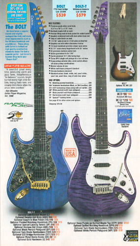 New for 2003, and only shown in the Winter catalog was the Bolt Plus (also known as the Bolt+). This new instrument combined the shape of