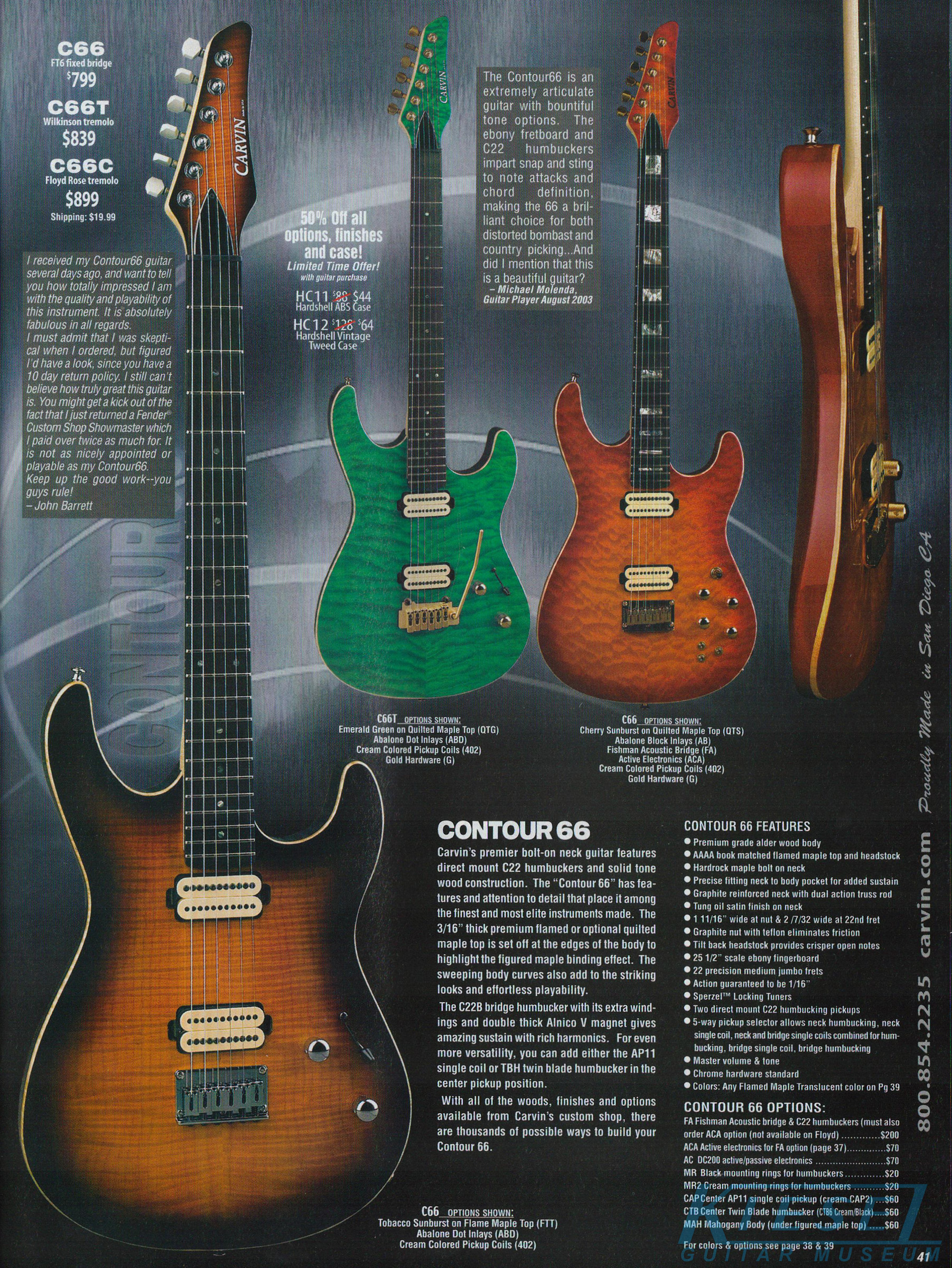 All new for 2003 was the Contour 66, also known as the C66. This 22-fret bolt neck guitar had an alder body with maple neck, and