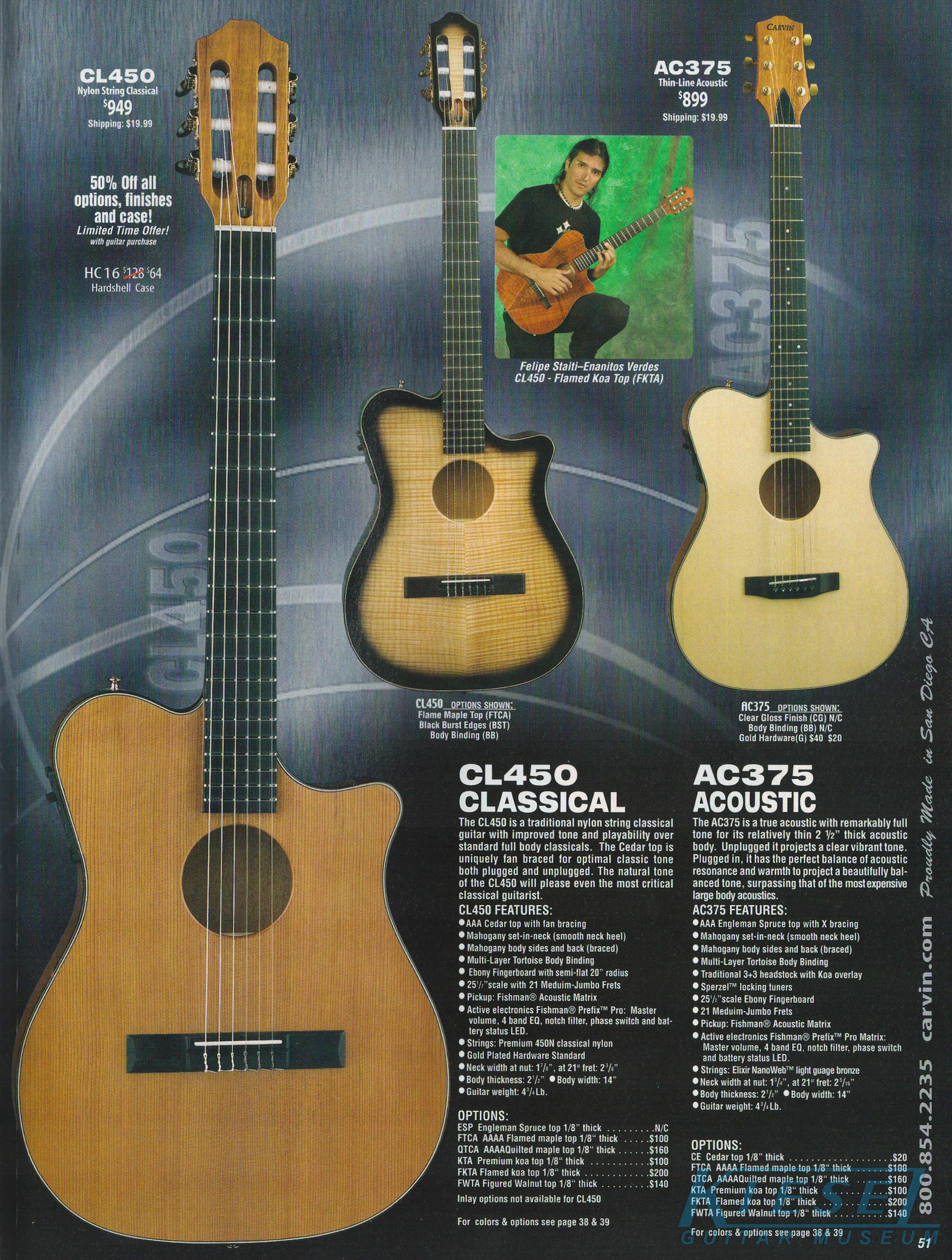 The AC375 and the CL450 classical were unchanged. The AC375 increased in price to $899, and the CL450 increased to $949. The catalog photo showed