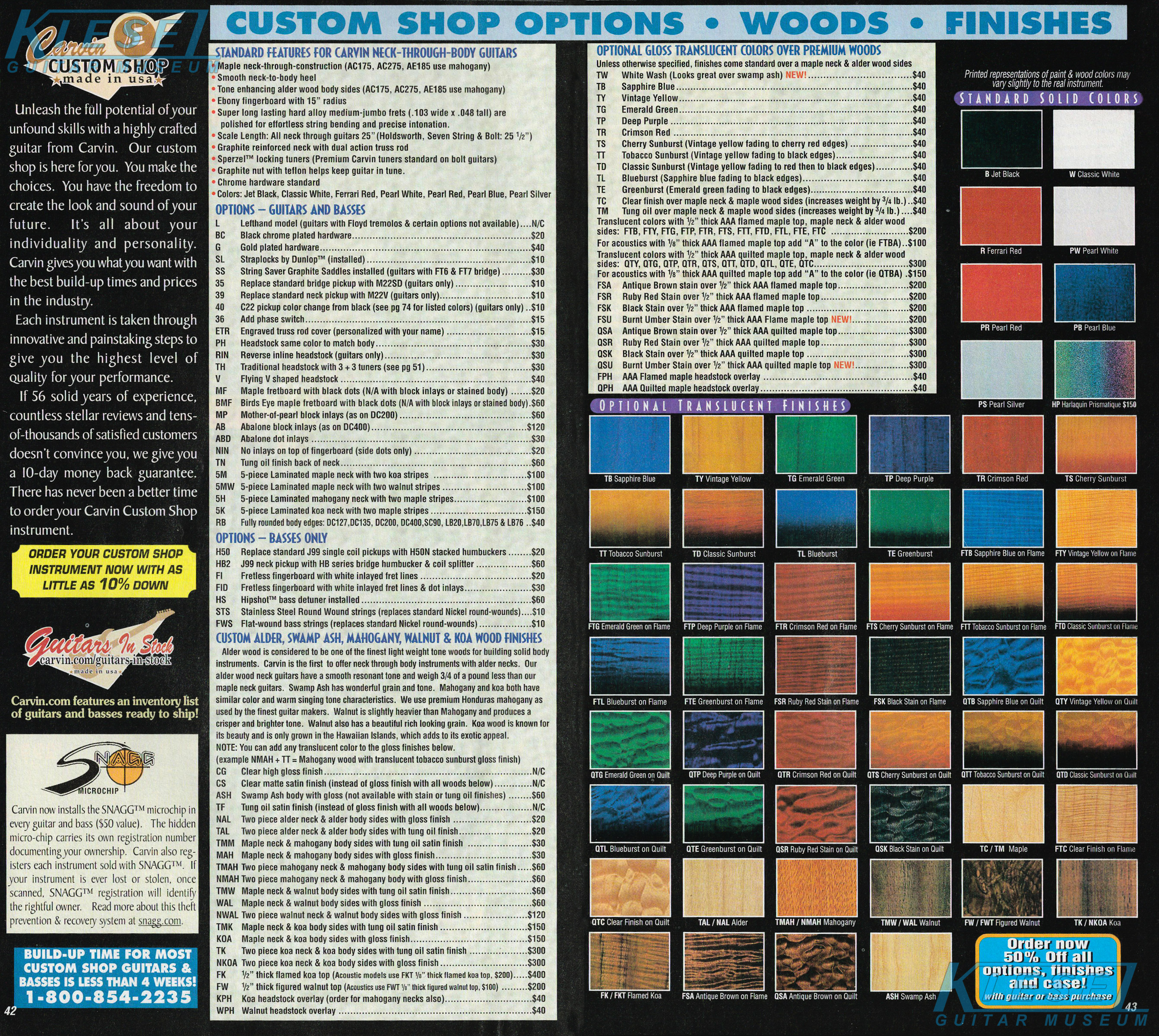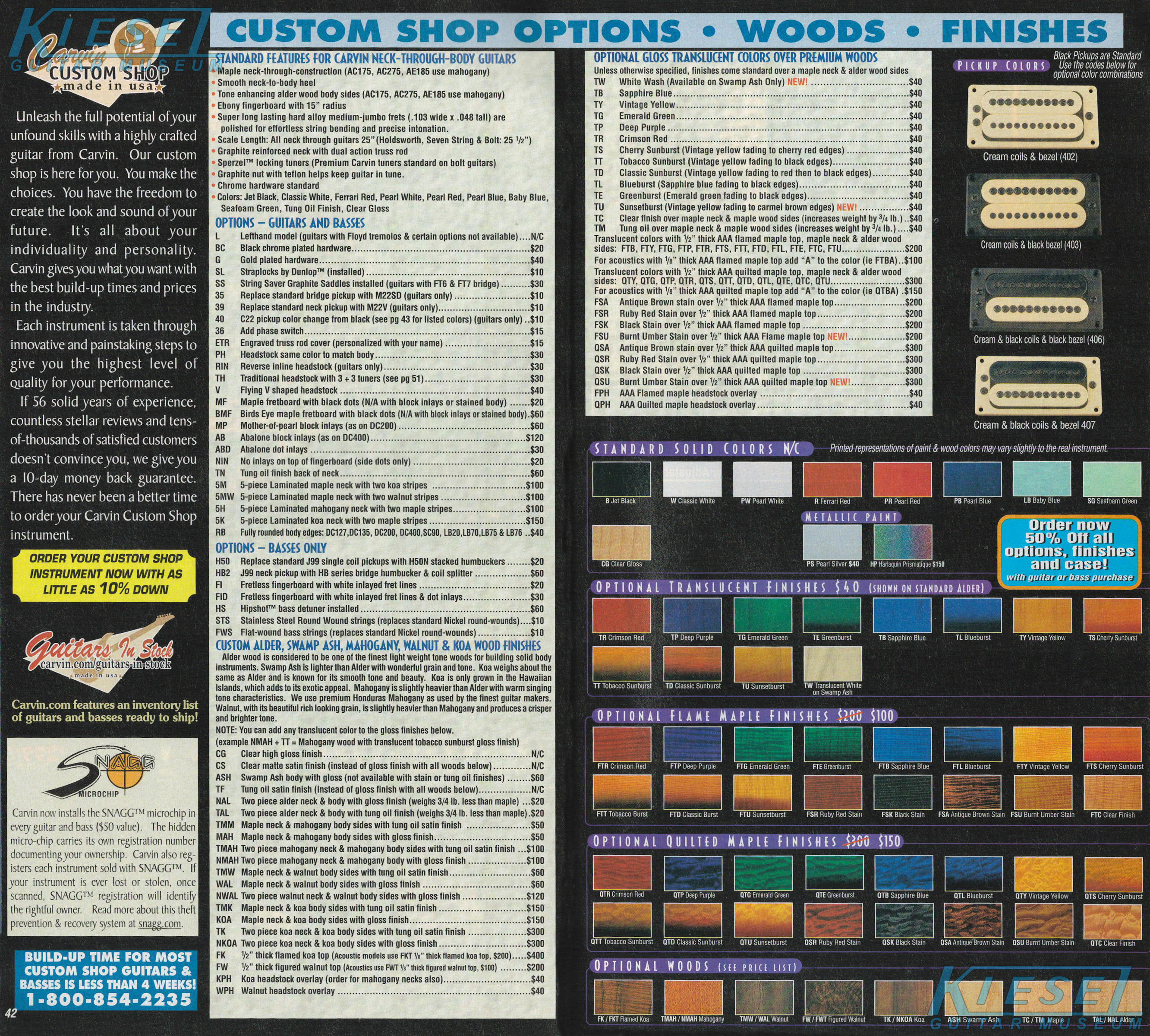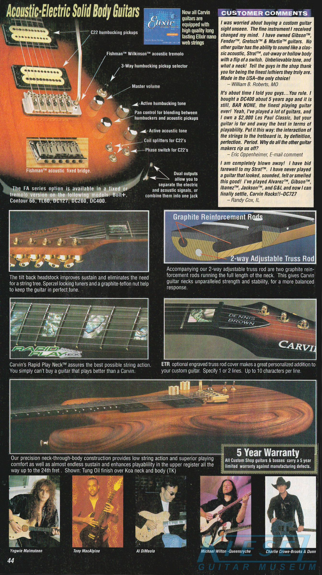 catalog, and the the DC400A was only treated to a small inset photo on another DC model page. These models represented the finest Carvin had ever offered as a standard production
