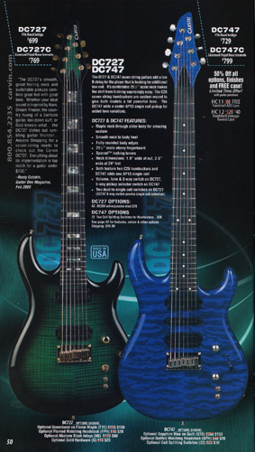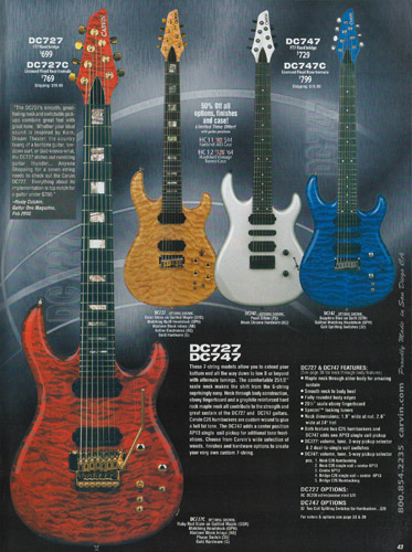 increased to $699, while the licensed Floyd Rose version was $769. The DC747 increased to $729, with the licensed Floyd Rose version was $799. The catalog photo