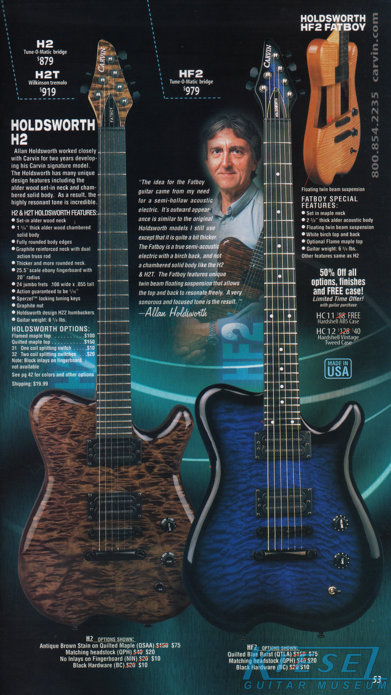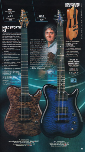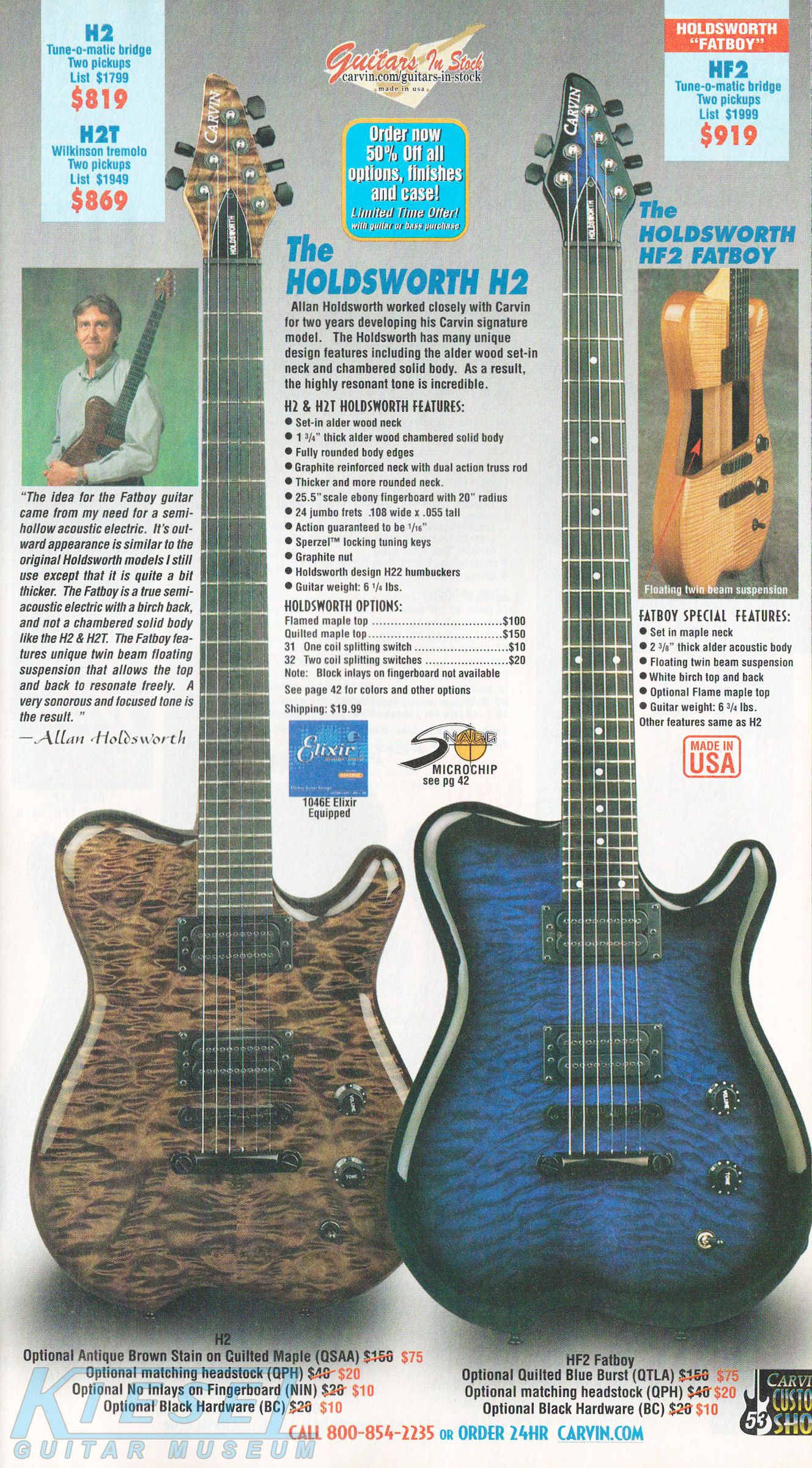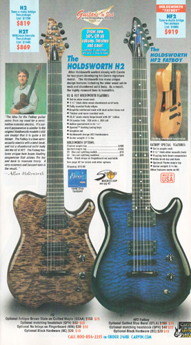 The Allan Holdsworth Signature H2 and HF2 Fatboy were unchanged. The price on the H2 rose to $879 (or $919 with Wilkinson tremolo) and the HF2