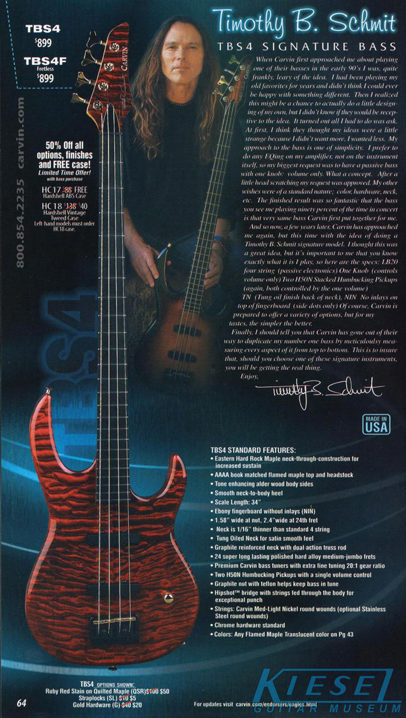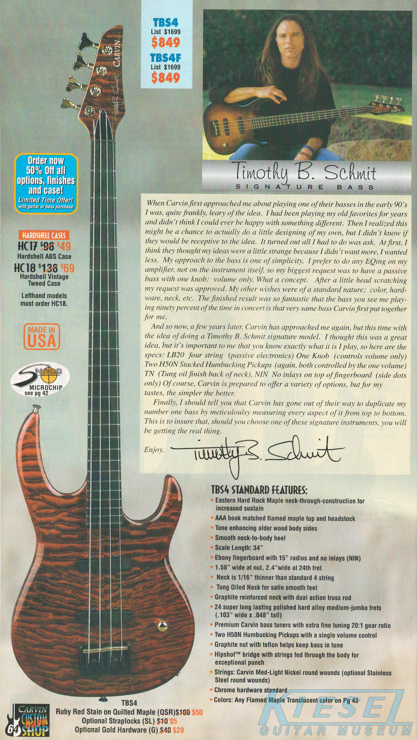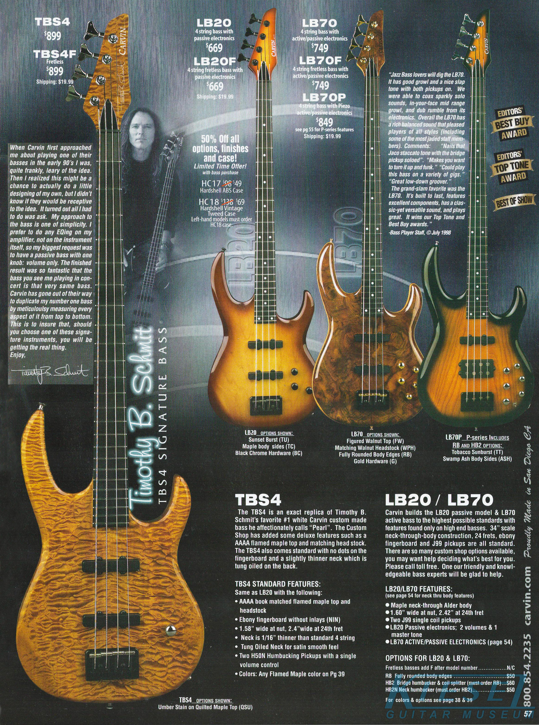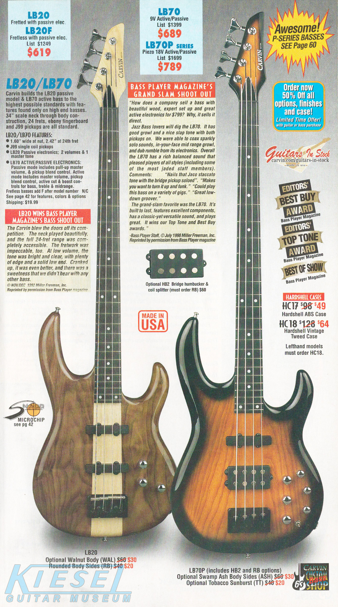 conjunction with long-time Carvin endorser and Eagles bassist Timothy B. Schmit, this model is essentially a stripped down LB20, featuring H50N