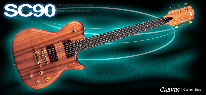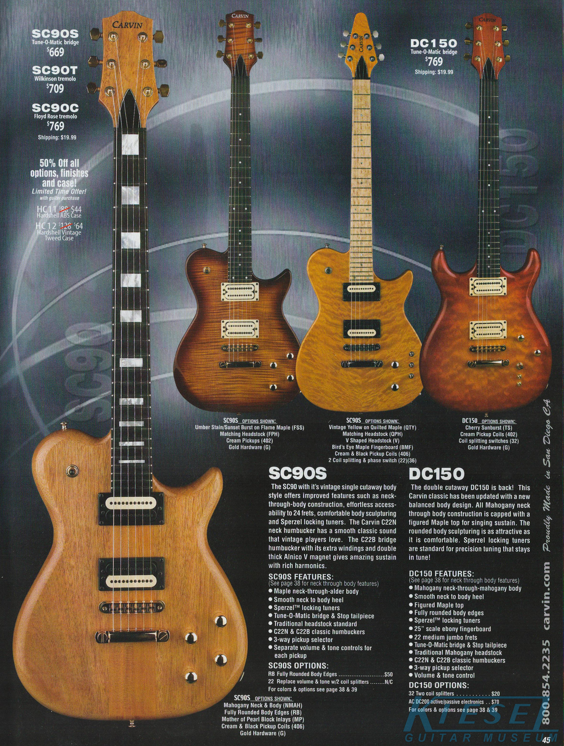Winter catalog showed the DC150 in Cherry Sunburst on quilted maple with cream pickup coils, coil splitters and gold hardware. The SC90 was shown in Tobacco Sunburst