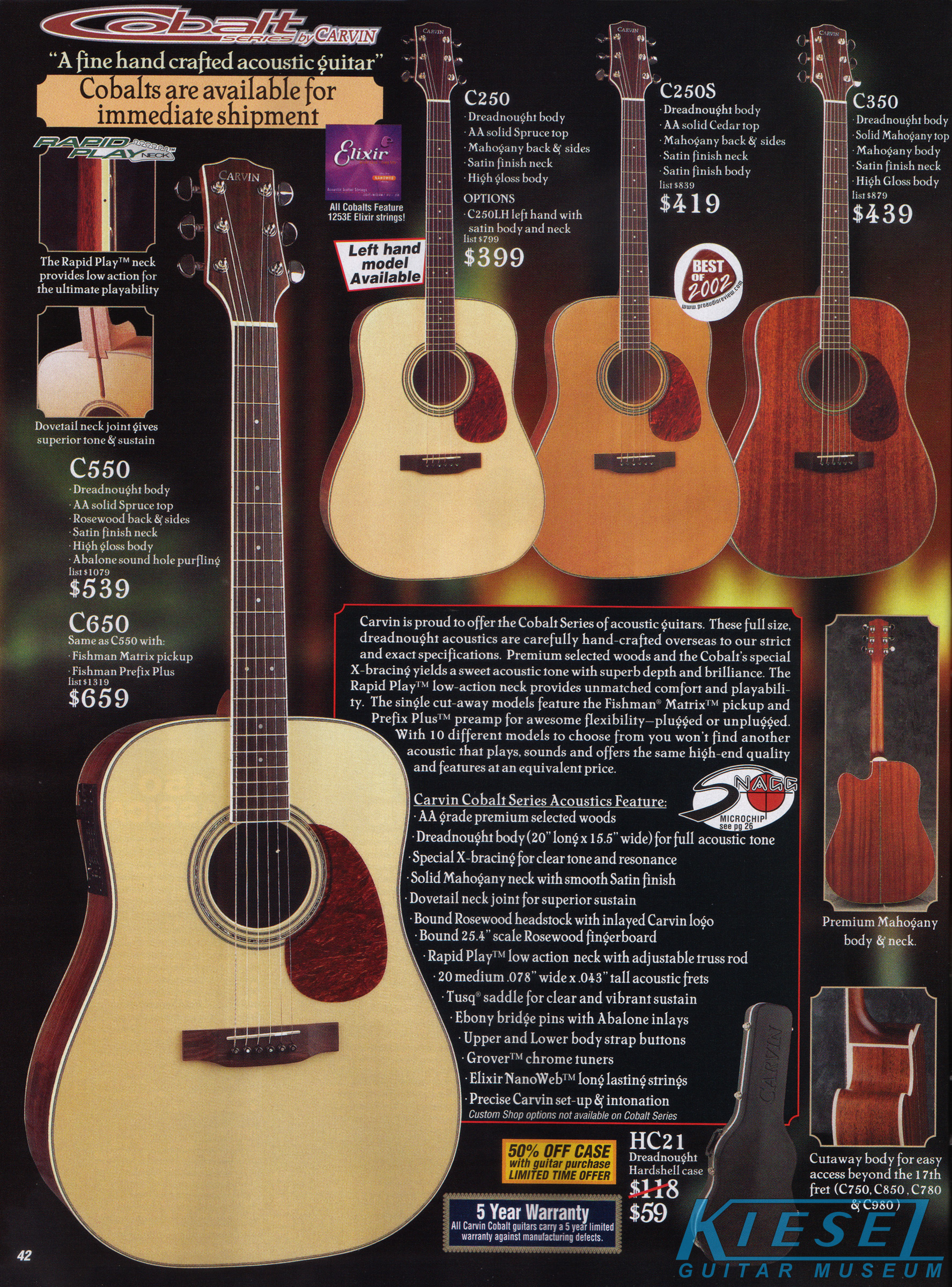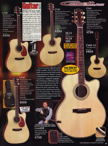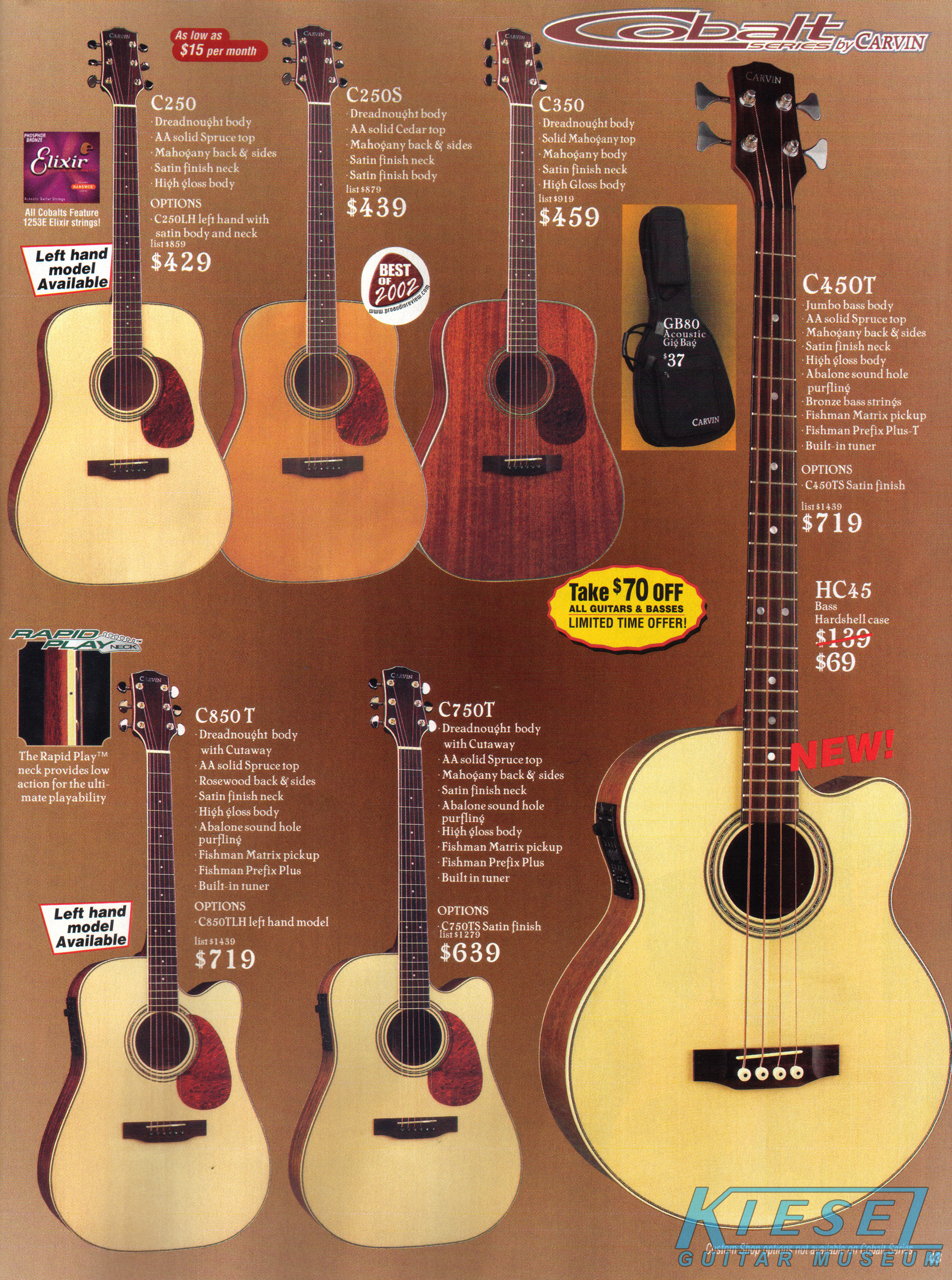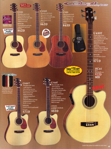 Carvin's Cobalt acoustic guitars were unchanged, and had the same prices and catalog photos as in 2004.