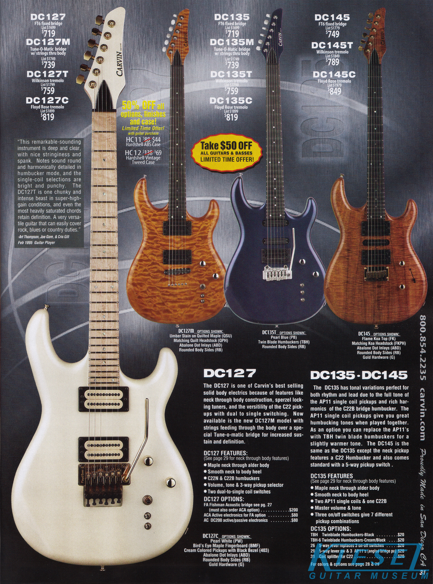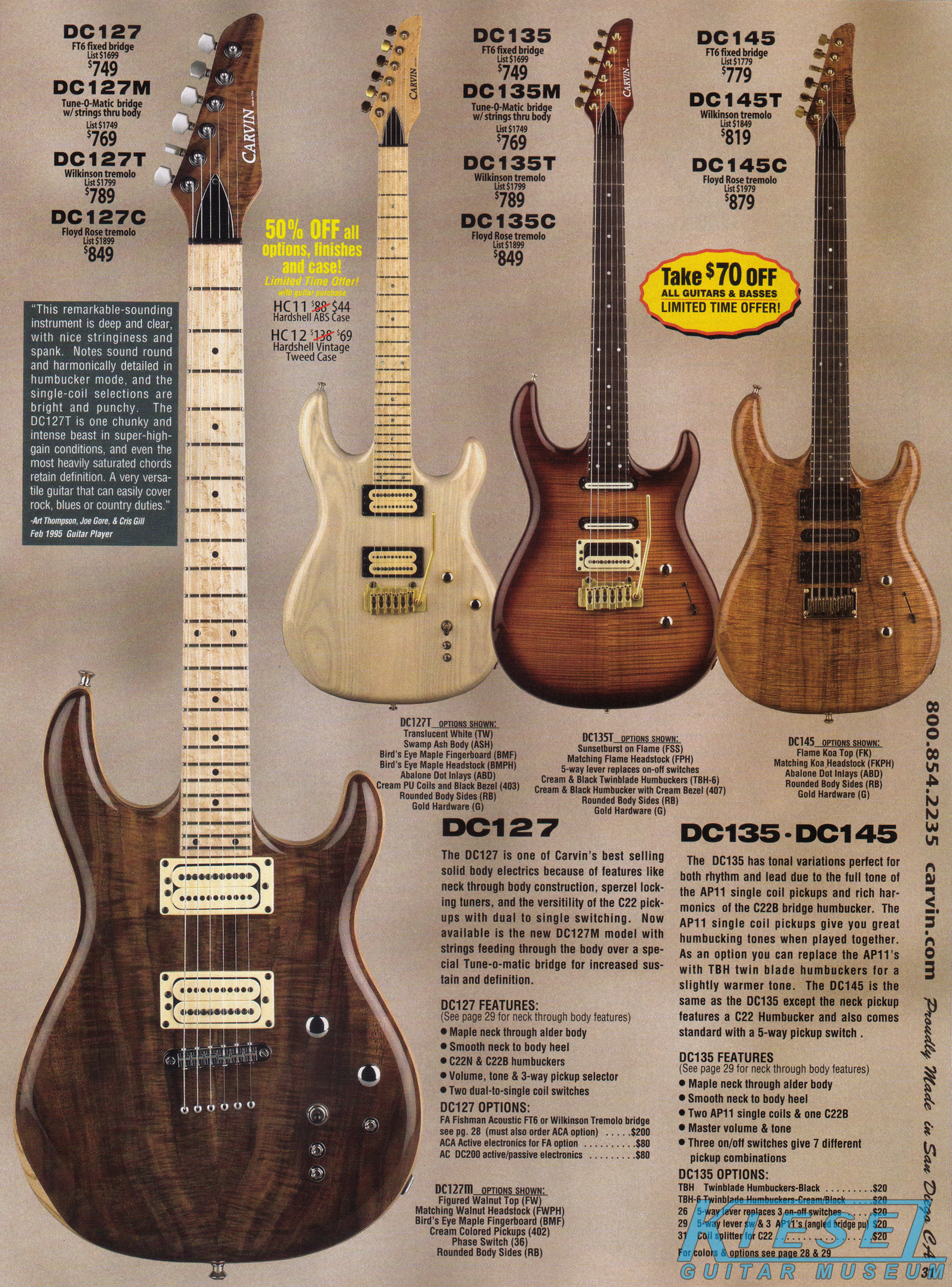 from 1989-1992. The catalog showed a DC127C in Pearl White with rounded body sides, Birdseye maple fingerboard, abalone dot inlays and gold