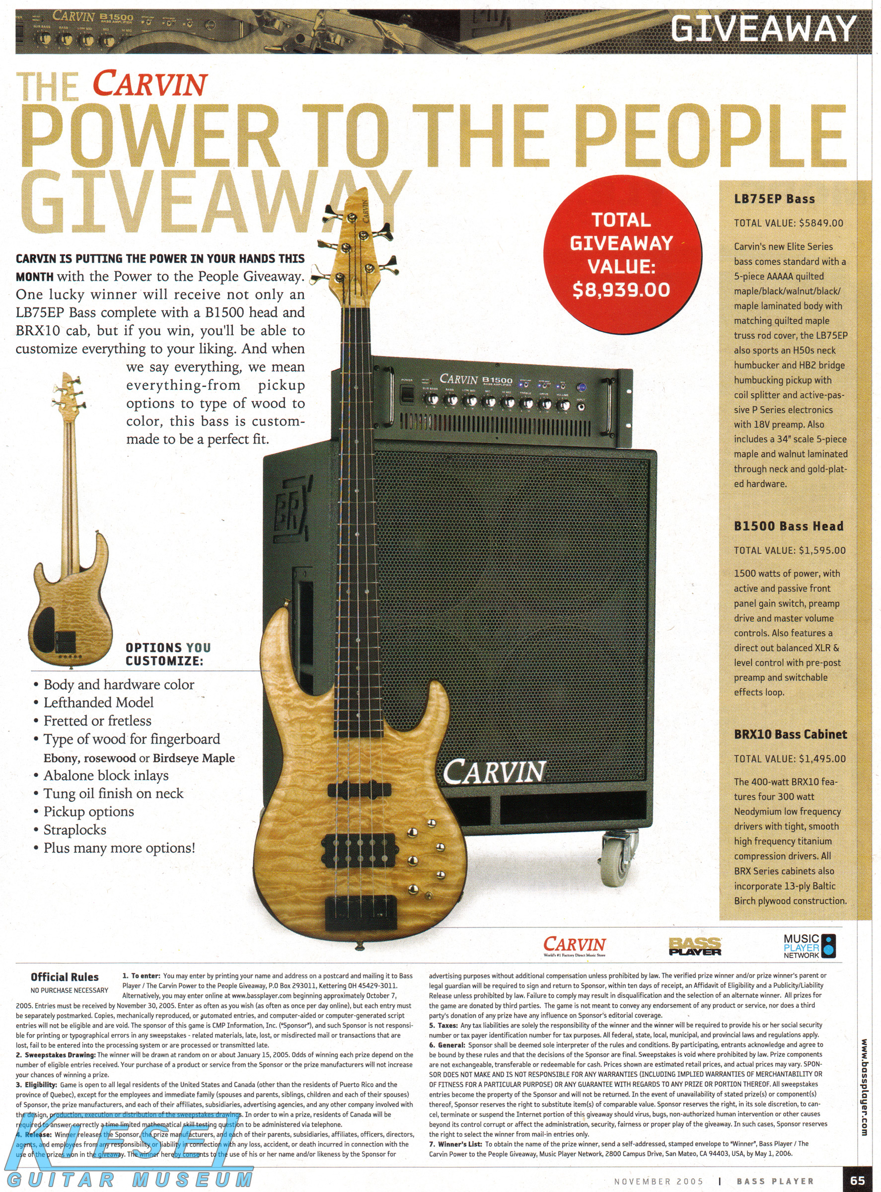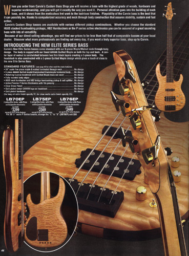 Near the end of 2005, bassists were treated to Carvin's most exotic bass ever (up to that point), the Elite Series. Like the Anniversary Series, this was a