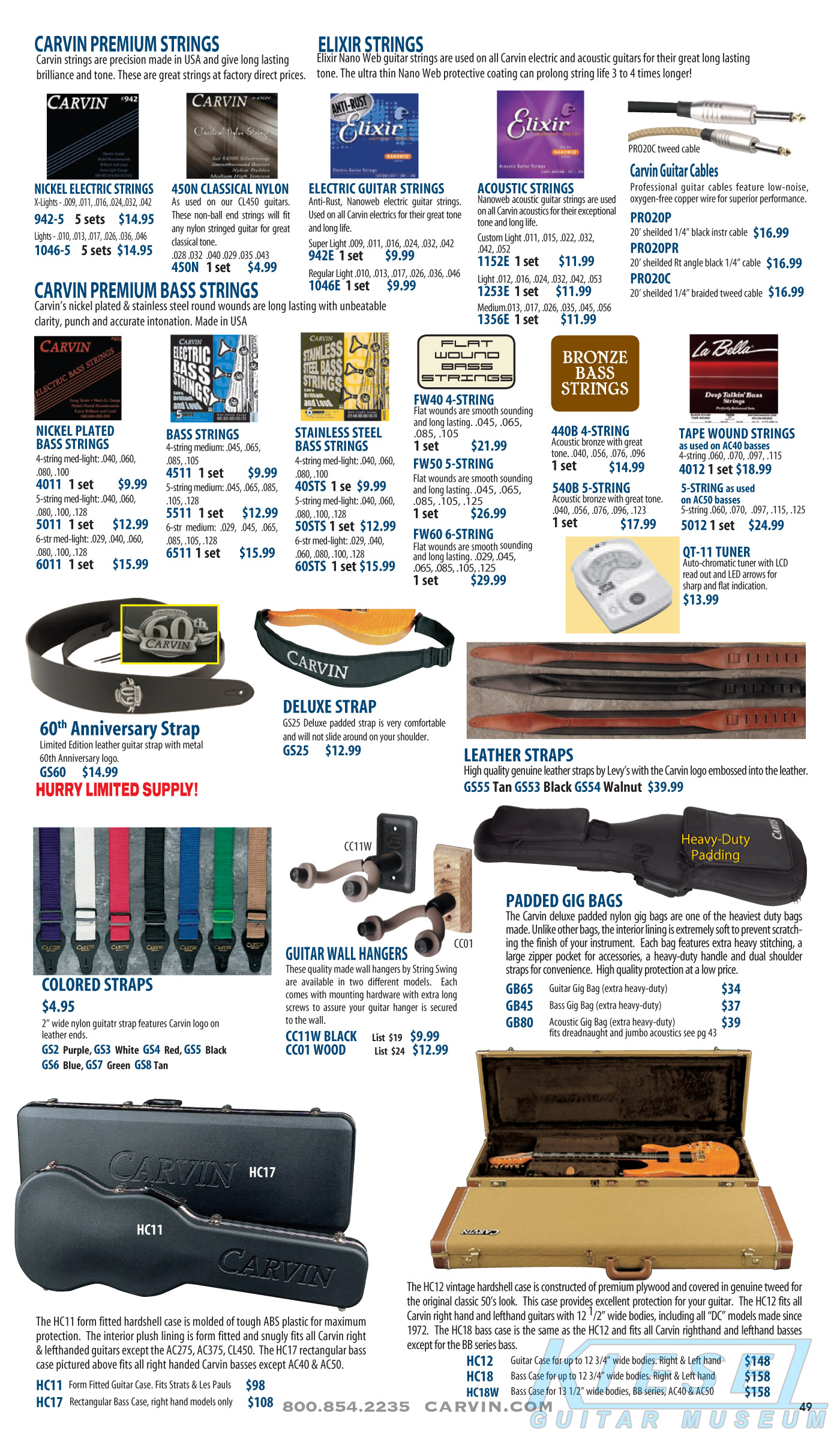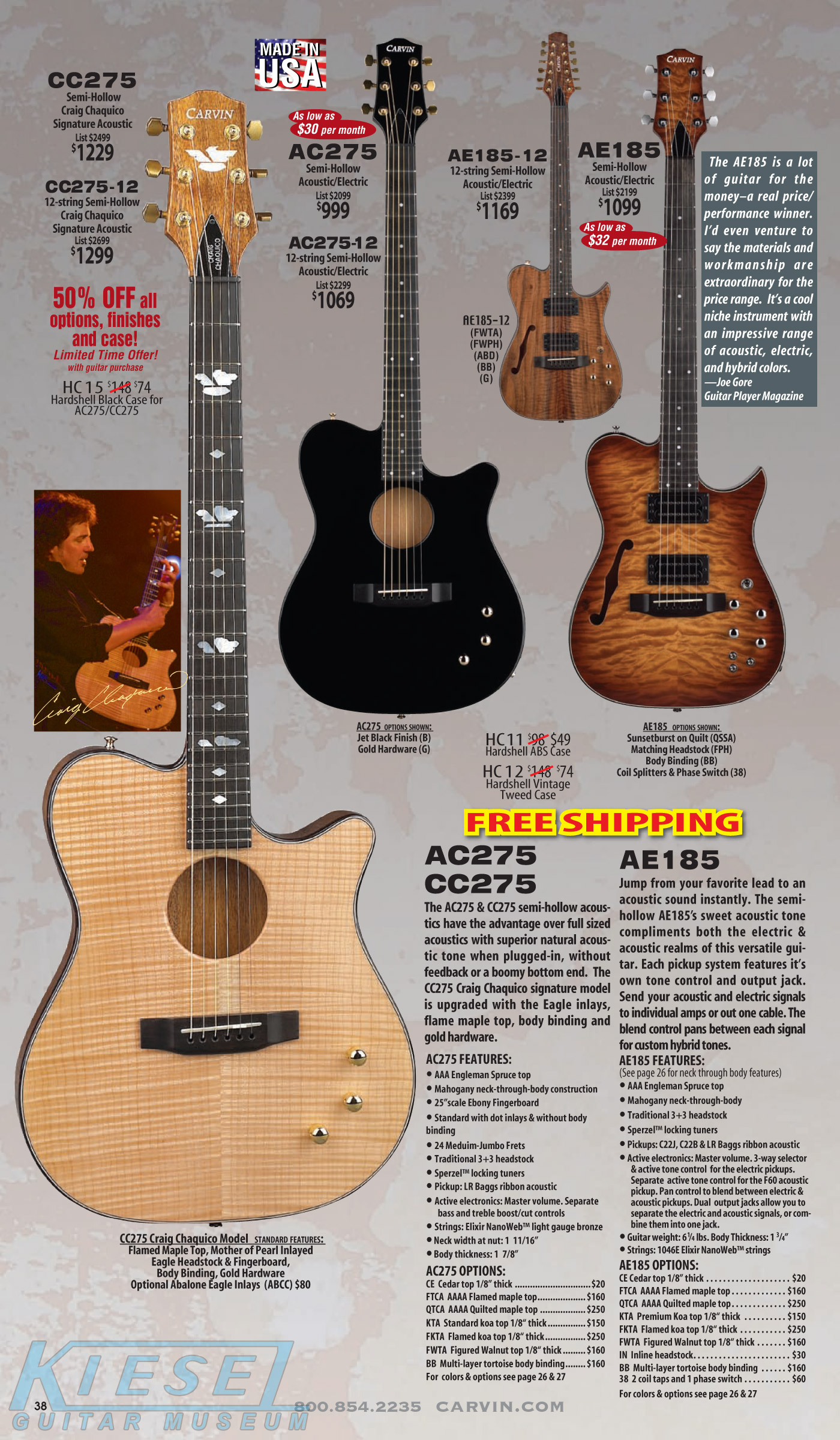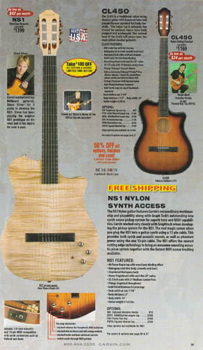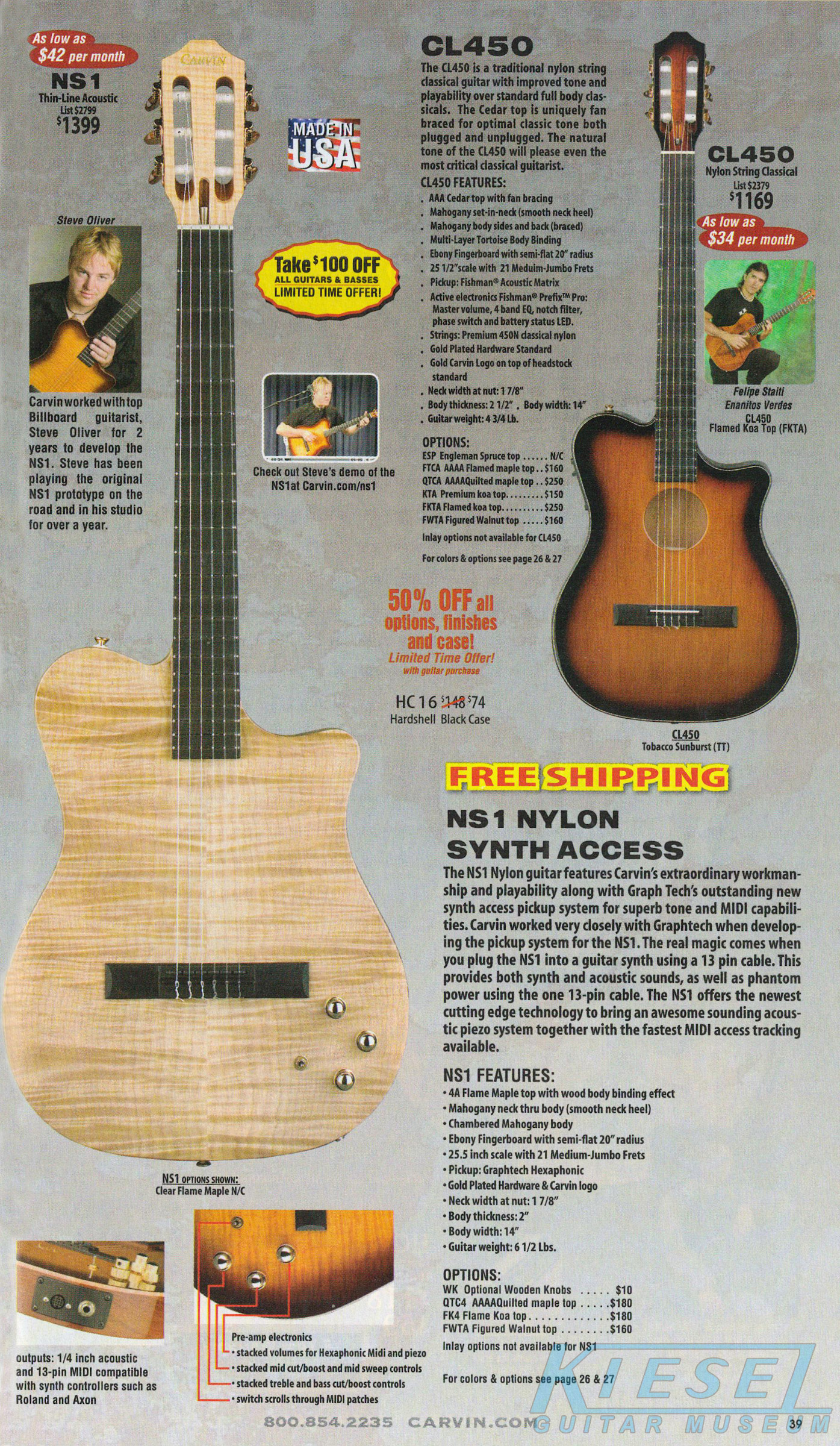 Because catalog space was needed for the new NS1 and V220/Ultra V reissues, Carvin's acoustic/electric models were condensed to a single page. All the models from 2006 were still offered, but only some were shown in the catalog. Other than the new 12-string headstock on the AE185-12 and AC275-12, there were no changes to the lineup.