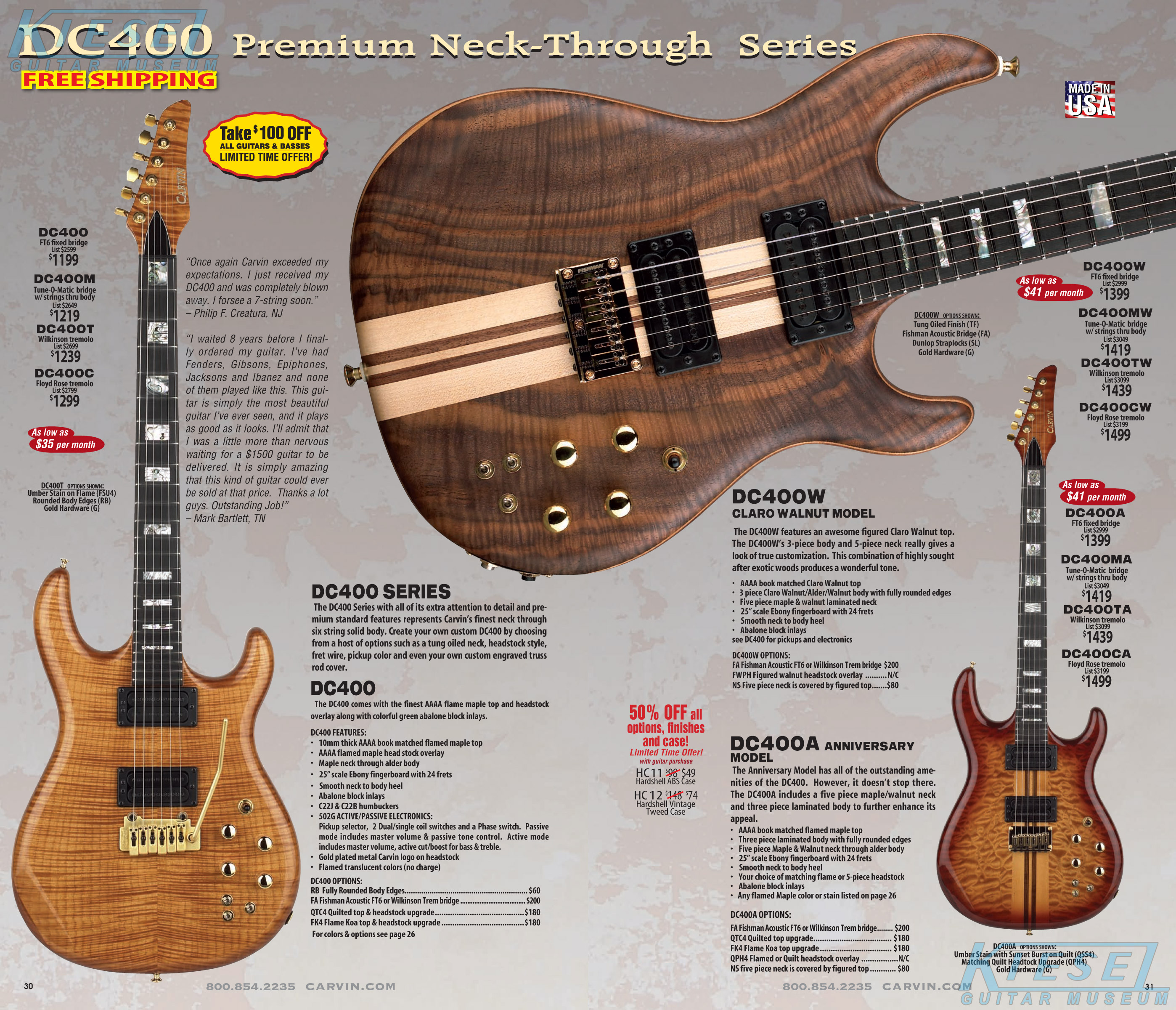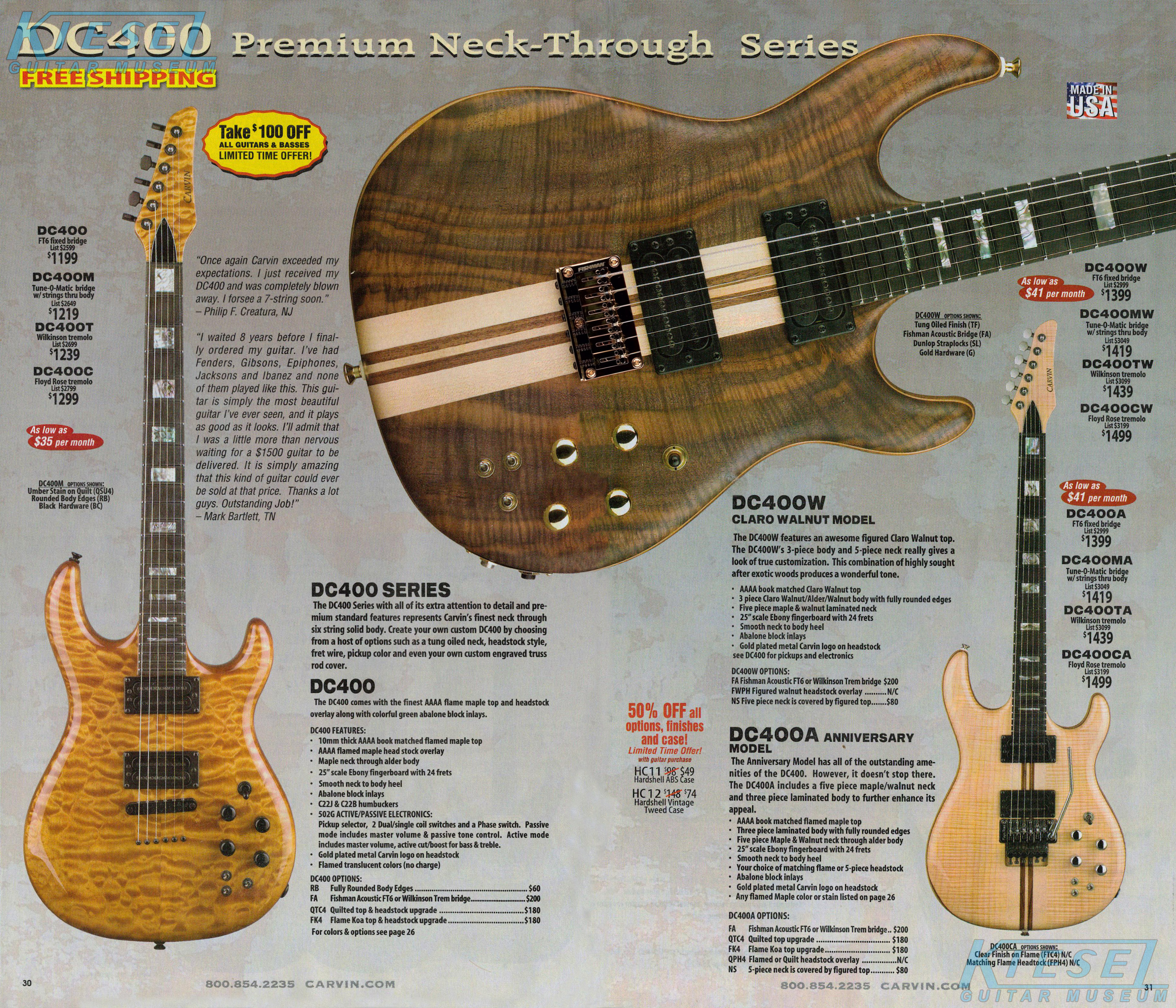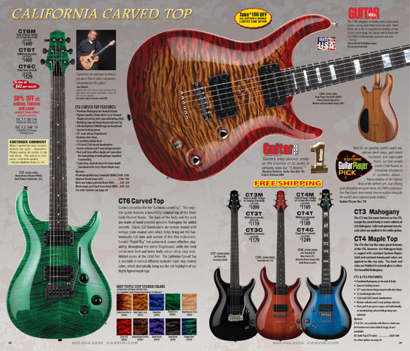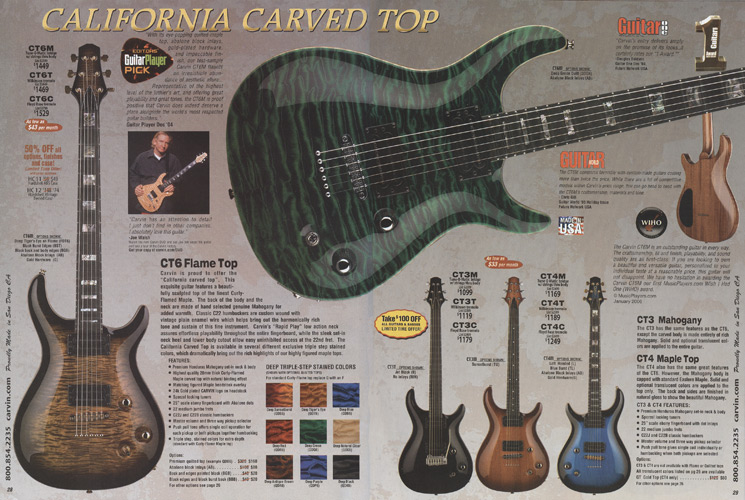 The California Carved Top series continued to enjoy huge success, becoming one of Carvin's most popular models. There were no significant changes to the CT models, other than the new options that were being offered.