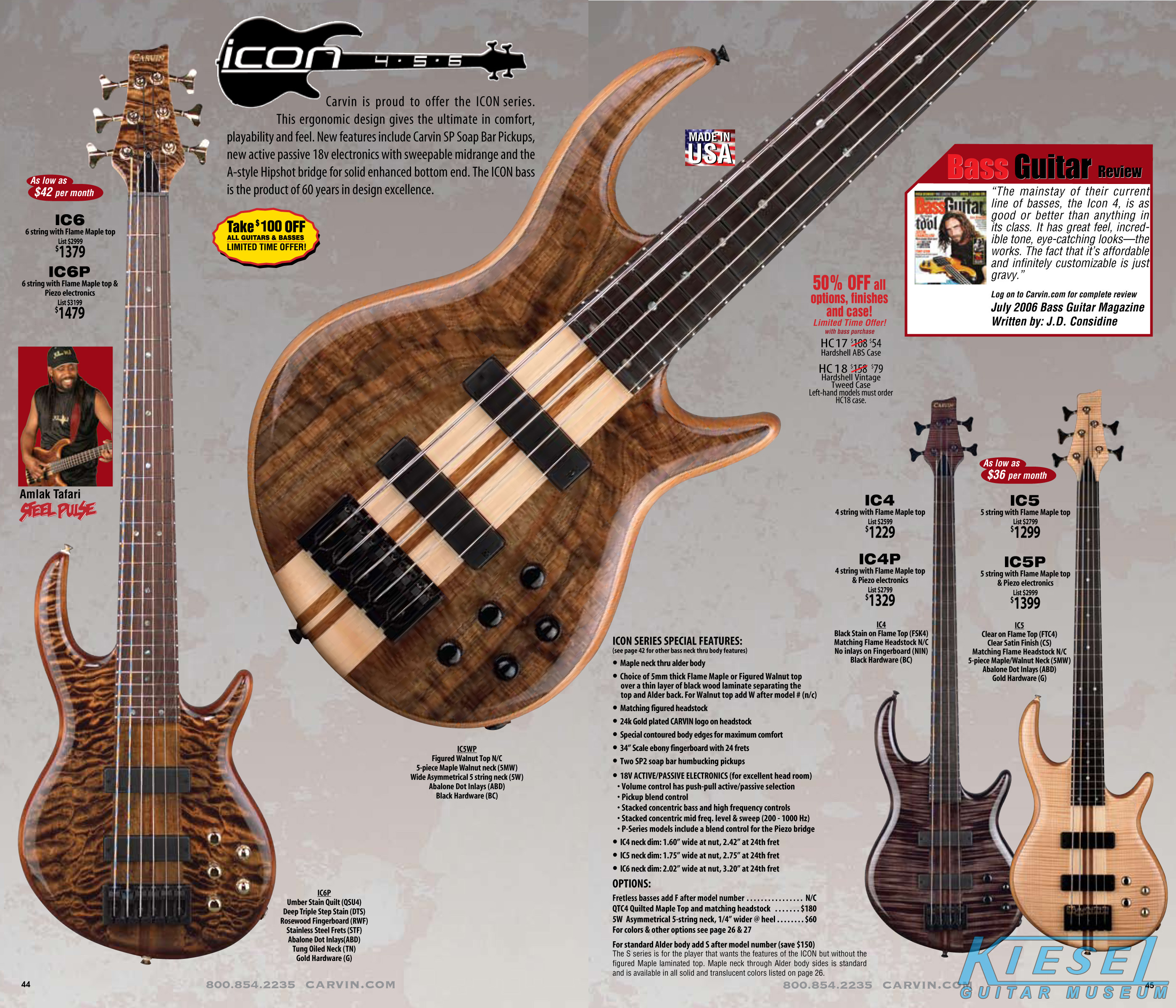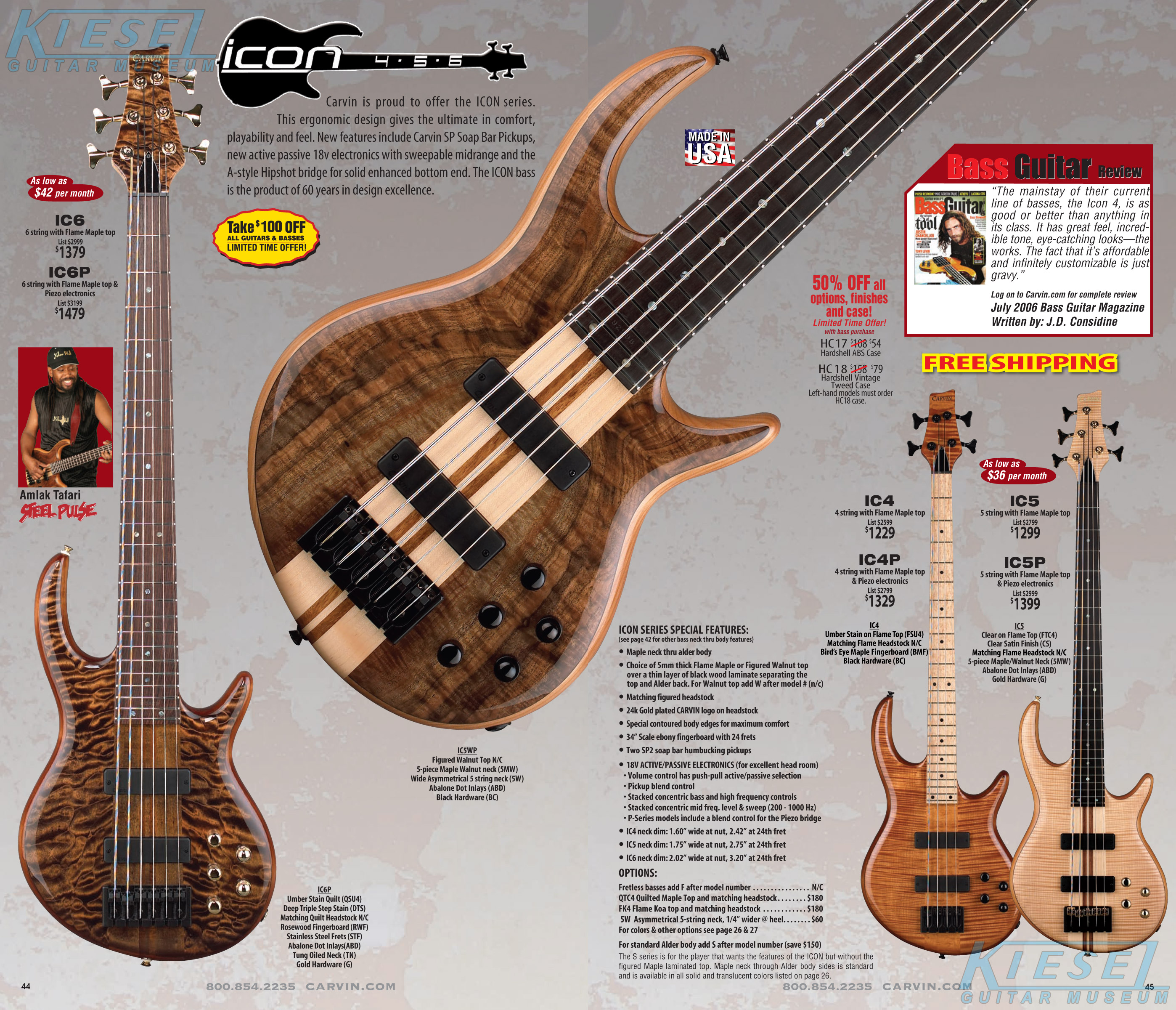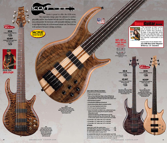 Icon models immediately became Carvin's flagship basses, and were featured heavily in magazine ads and other promotional materials. The Icon basses were arguably