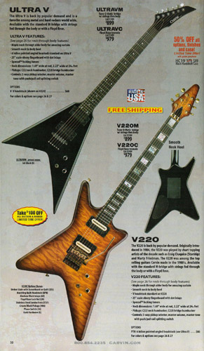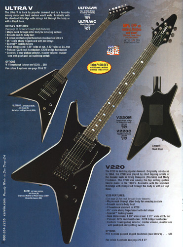 maple neck, V headstock, M Series bridge and C22 pickups. The only other bridge that was offered was the Floyd Rose tremolo. Base price on the V220 with M bridge was $899.