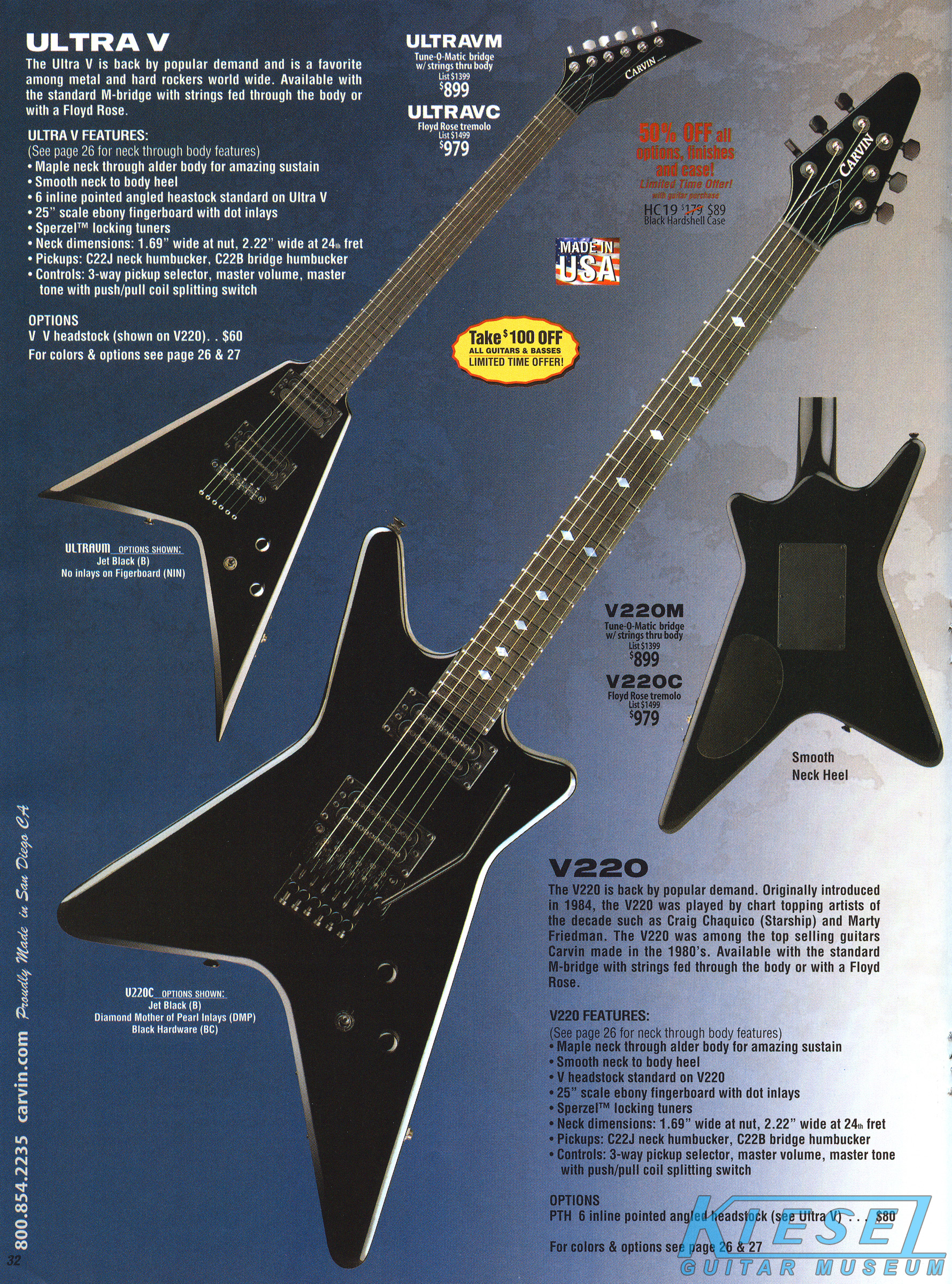 reissue V220, except that the pointed inline headstock, similar to the 90-91 headstock, was standard. Like the V220, the M Series bridge was