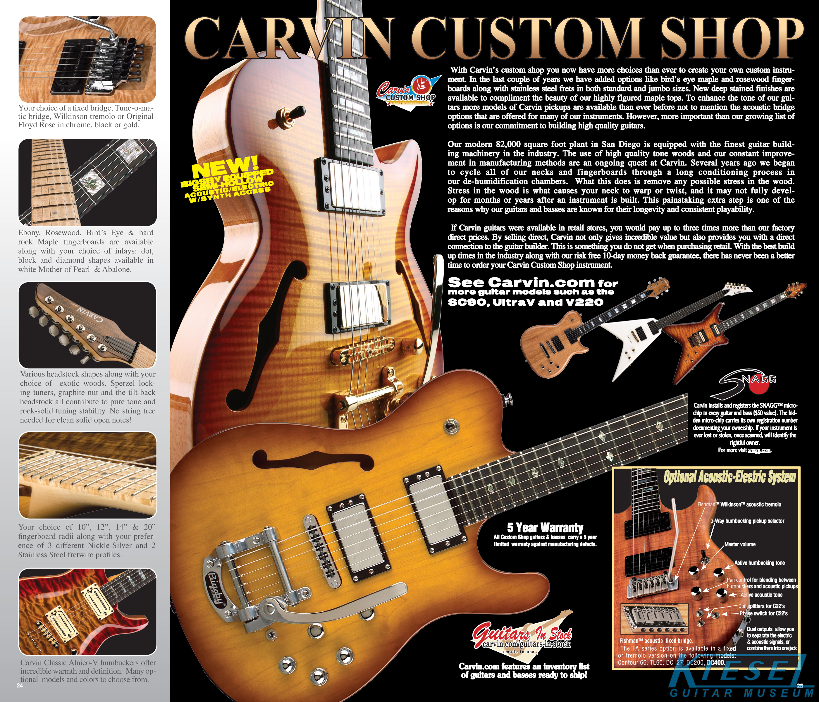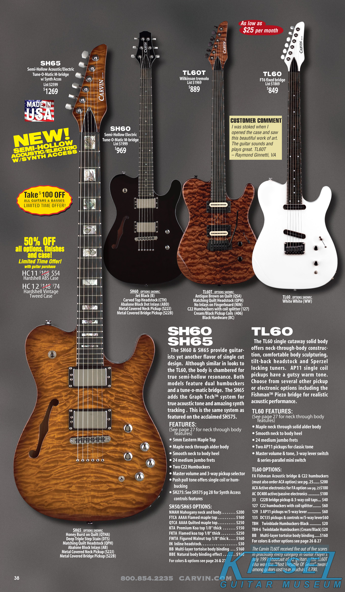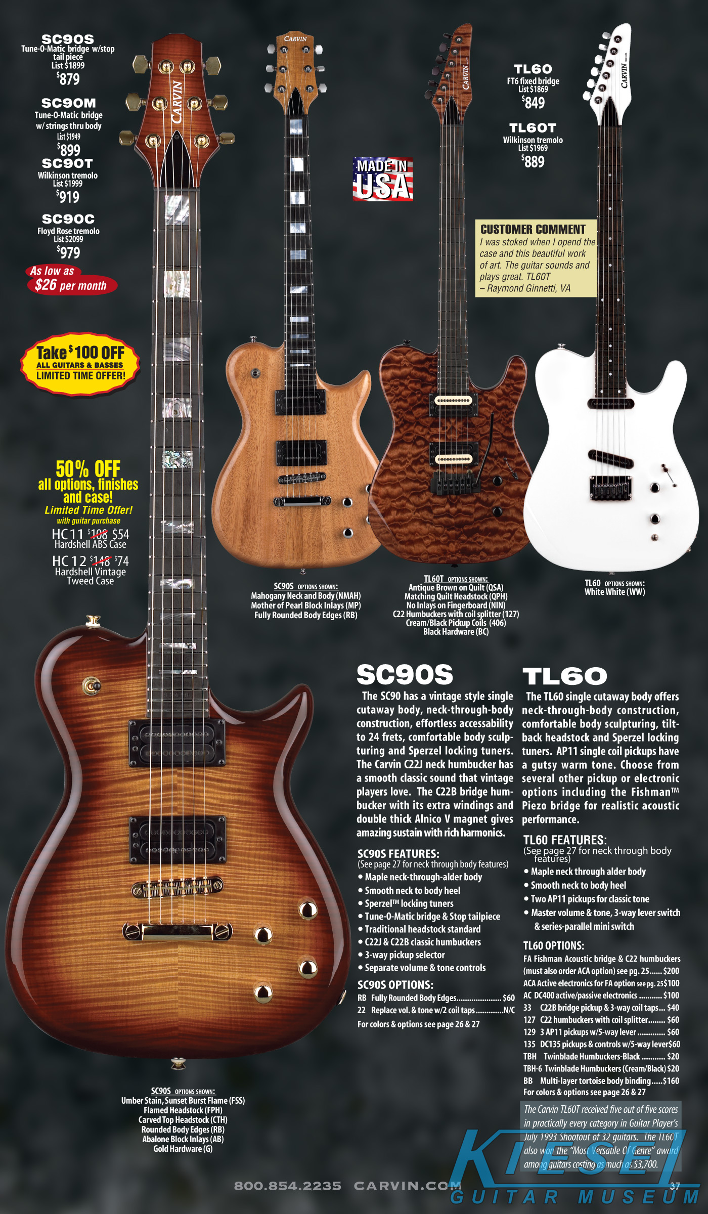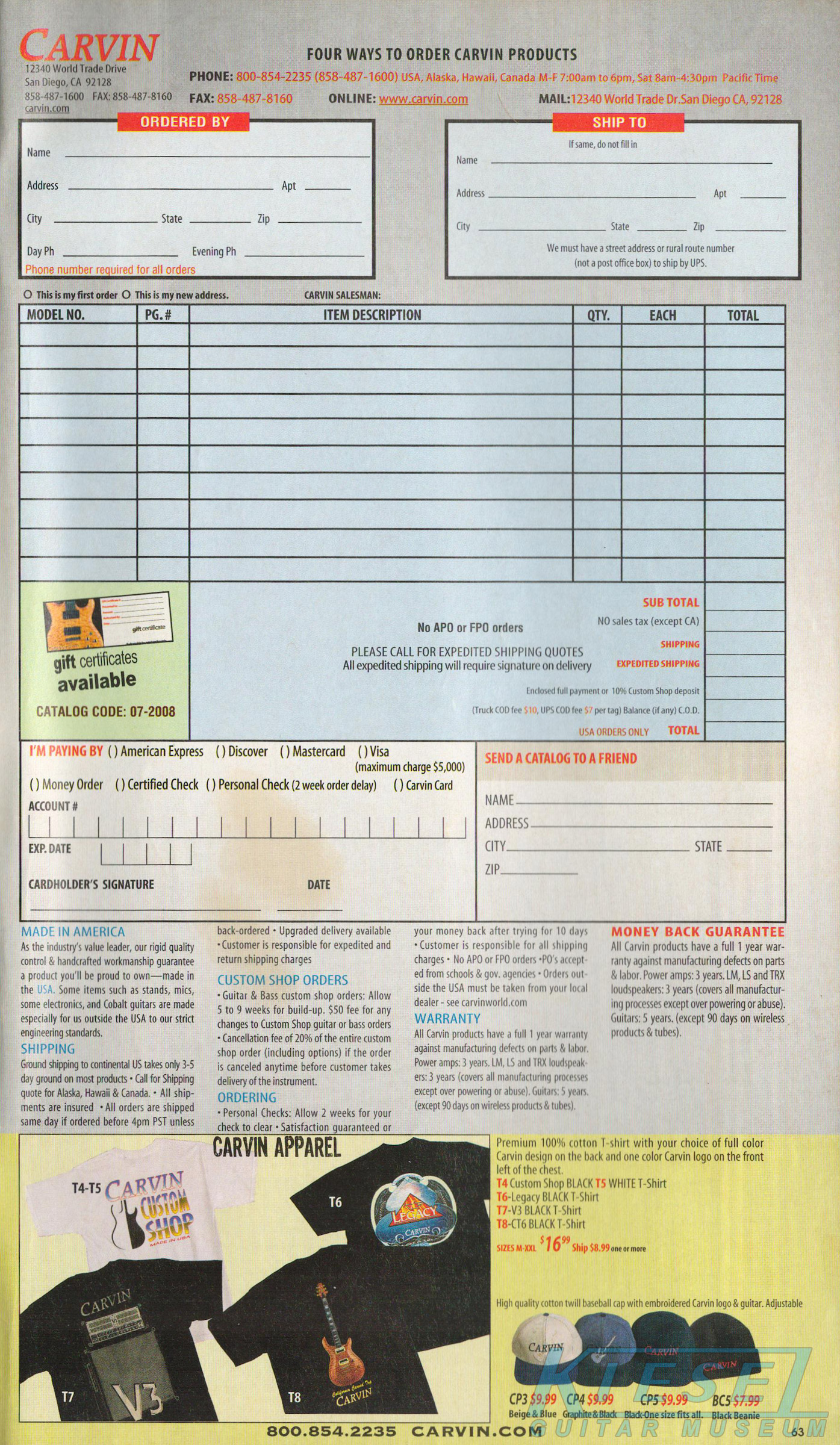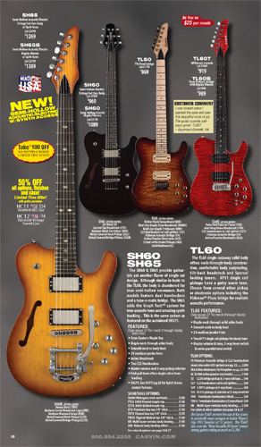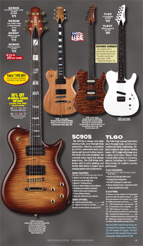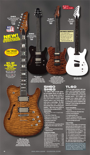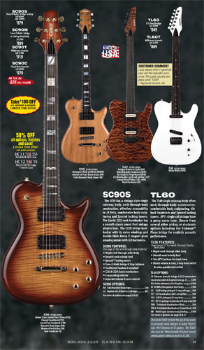 The SC90 and TL60 continued to be somewhat popular, but were being eclipsed by all of Carvin's new offerings. Despite their waning populatity, these models would be around for many more years. There were no significant changes to either model for the 2008 model year. The SC90 would only apprea in two catalogs, and the TL60 would move onto the new SH60 page mid-year.
